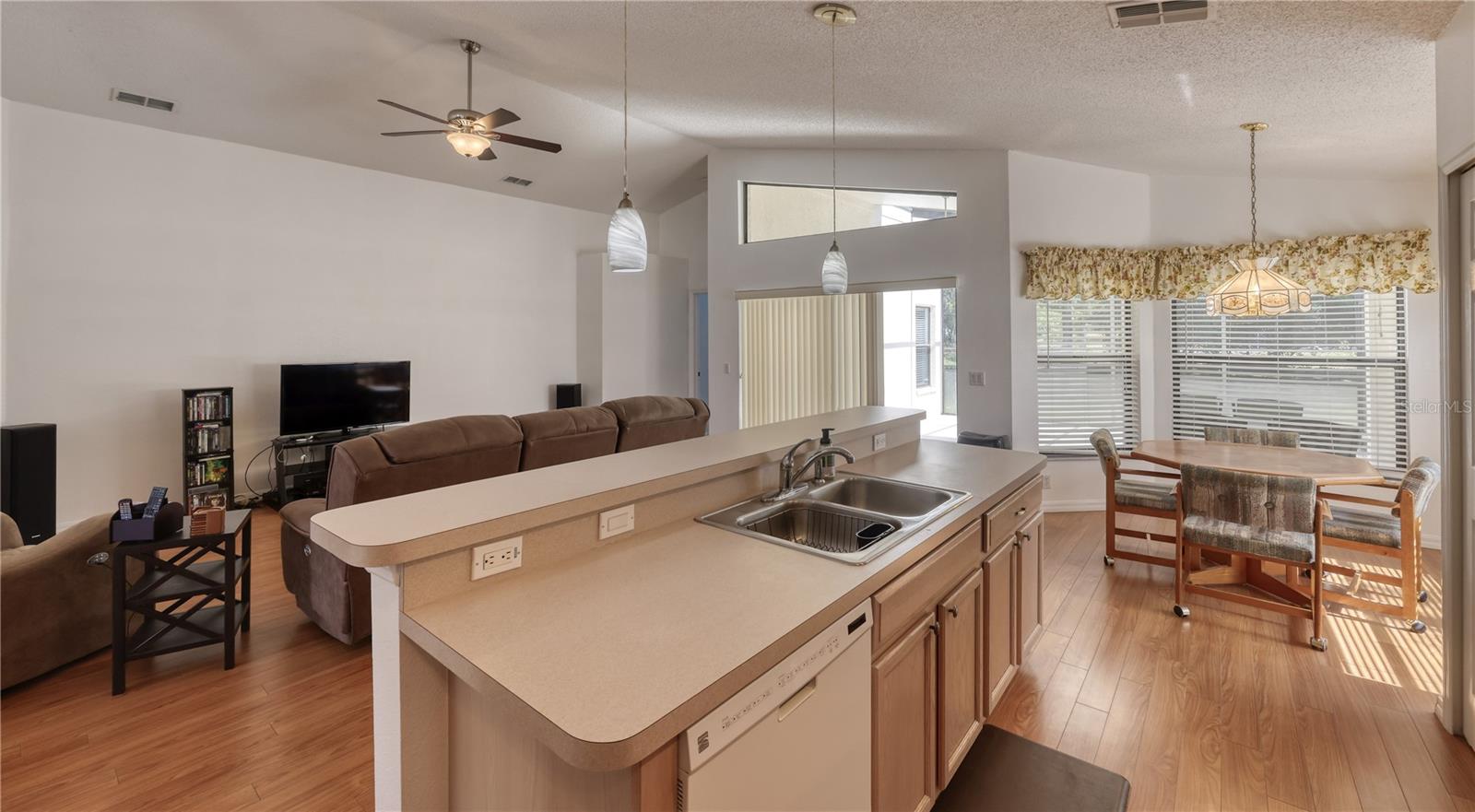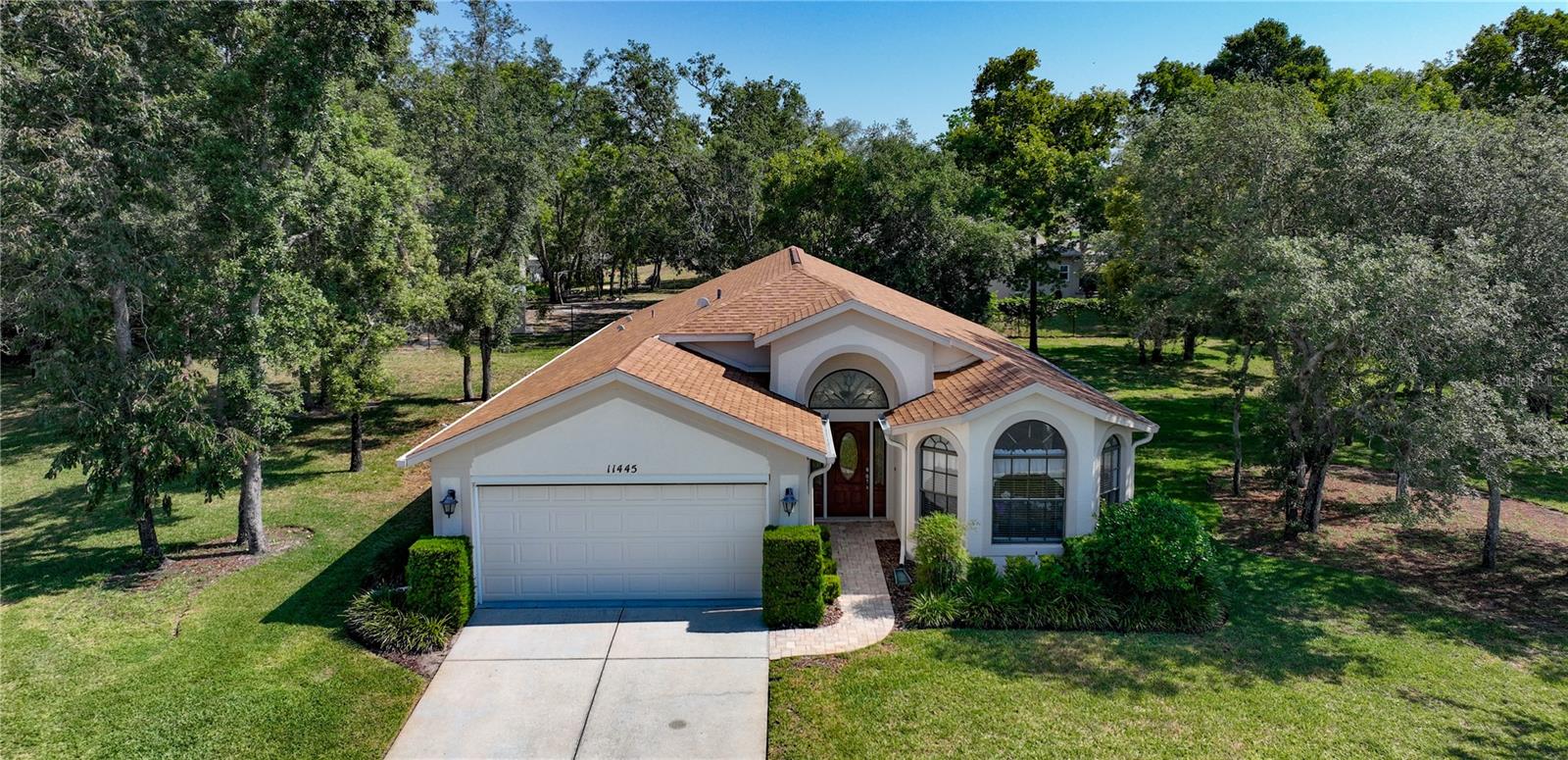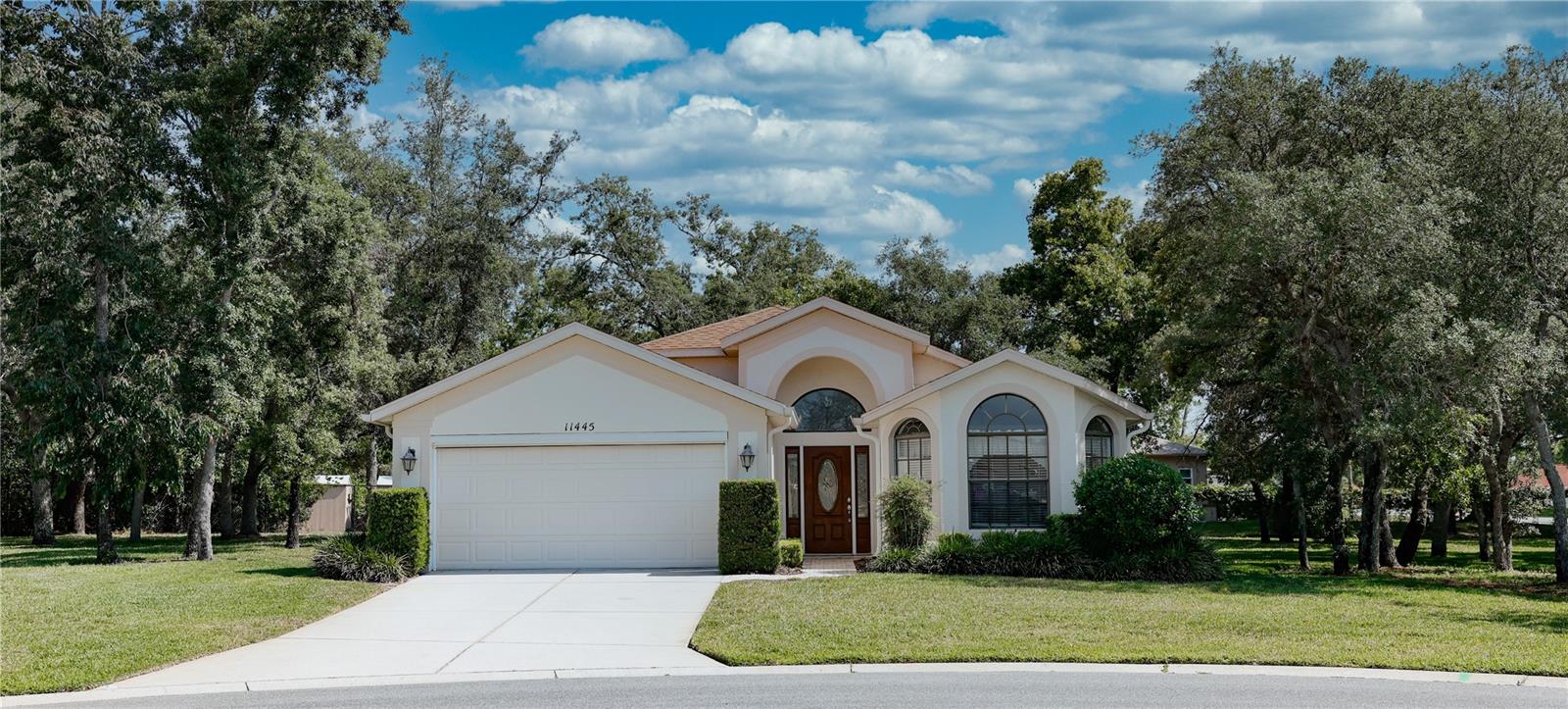 This beautiful home is not in a flood zone nor is it an evacuation area. As you drive into this 55 and older community you 'll be greeted by a very personable gate keeper in which the gate is manned 24 hours a day. Once you are through the main entrance you'll feel this sense of calm fall over you due to the serene surroundings and the pristine common grounds and individual's properties. It gets even better as you come up to this home as it sits on a cul-de-sac and has an oversized lot. Don't fret about the maintenance of the property as it is included in your maintenance fees along with the painting of your exterior of the house. The painting is scheduled every ten years. As you walk through the front door you can't help but admire the flooring and high ceilings. The flooring is continuous throughout the Family Room, Dining Room, Kitchen, Living Room and Breakfast Nook. The primary bedroom is large enough to accommodate any size bed and the amount of windows makes it bright and shiny. As you go in the primary bathroom you'll find a garden tub, a walk in shower and dual sinks. The two additional bedrooms are spacious enough to make any guests feel right at home. Relax on the back lanai that is partially covered from inclement weather but also screened for those beautiful Florida days and nights. You'll feel like you are the only one in the community as the property is so large you can barely see any neighbors. This also pertains to all the north side windows and glass doors. When you walk through the Laundry Room to go to the two car garage, you can't help but notice the cabinetry which includes a built in cabinet that holds the laundry sink. Last but not least the picturesque clubhouse boasts a restaurant, bar, pool, tennis courts, pickleball courts, billiard room, library, bocce ball courts, fitness center and function halls. Welcome home.