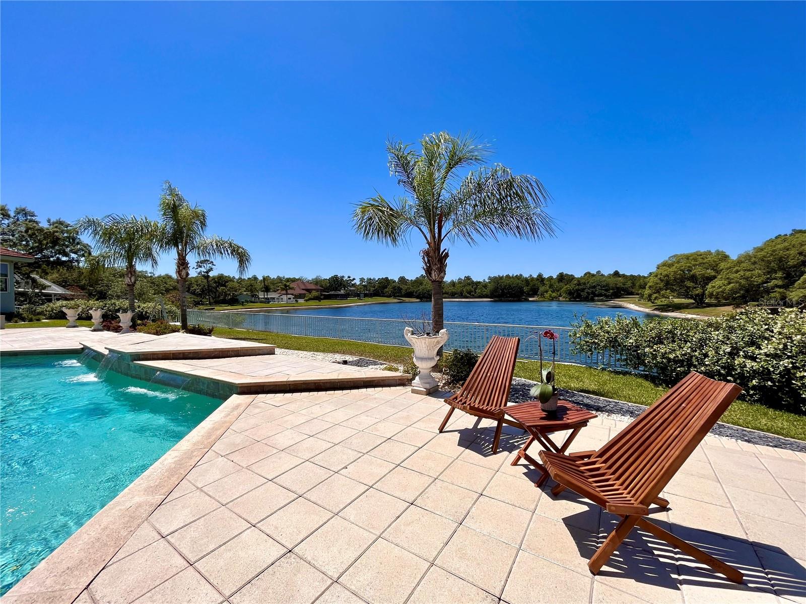 Welcome to this stunning lakefront estate on nearly an acre of professionally landscaped grounds. The estate sits on a private spring-fed lake that backs up to a state preserve and is just three miles from the Gulf of Mexico. This custom-built masterpiece invokes the sophistication of an updated smart-home. You are welcomed through the double glass front doors by a stunning infinity lake view and fourteen-foot coffered ceilings which continue throughout the palatial interior. Marble flooring, marble walls, and quartz counters are just a few of the meticulous details. This home is the epidemy of a smart-home with a top-of-the-line Control4 home automation system. With a touch of your finger from your cell phone you can control the lights, motorized shades, whole house surround sound, TV’s, front door intercom/camera, AC thermostats, smart door locks, and exterior security cameras from anywhere in the world with an internet connection. This immaculate SINGLE-story retreat includes 5 bedrooms, each with their very own en-suite bathroom and walk-in closet. There is a great room, family room, sitting room/library, formal dining room, a home office with custom cabinets, a meditation room, and your very own exercise room. The master bedroom is for the most discerning of owners. It has a stunning view of the spring-fed lake, double trey ceilings, a mini bar with refrigerator, hardwood floors, a chandelier, as well as his and hers walk-in closets. The master bath has marble floors, soft close drawers, a freestanding soaker tub and a walk-in frameless glass shower with rain head plus multiple heads. Other distinctive features in the home include; Motorized shades. Cove lighting (various colors to suit your mood) in the family room. Faux painted walls. Imported chandeliers. Four ecobee smart thermostats making it four-zone energy efficient. In the kitchen there is a sensor touch main sink, a second prep sink, a Sub-Zero refrigerator and an Insta-hot faucet. There are two gas fireplaces, both remote controlled. And there is a Tesla charging station in the garage. There are actually TWO two-car garages big enough for four cars, plus extra space for a golf cart or other toys. Outside offers privacy and luxury with a diamond shaped pool that overlooks amazing sunsets on the private lake, a lanai with outside sink, outside surround sound, extensive landscape lighting, mature fruit trees, and over 1500 square feet of raised patio space. Located in the exclusive 24/7 guard-gated community of Lake in the Woods, which has tennis courts, pickle ball court, playground, and two lakes where canoes are allowed. Wild life abounds in this serene community; Turkey flocks, deer, ducks, egrets, sand hill cranes, ospreys, golden eagles, humming birds, and hawks. The community is conveniently located just 7 minutes to Weeki Wachee Springs State Park for kayaking and paddle boarding. 10 minutes to Hernando Beach for boating and deep sea fishing. 15 minutes to Pine Island Beach for swimming and sunsets. 45 minutes to the Tampa International Airport, and less than 60 minutes to St. Pete Beach, which was named the number one beach in America.