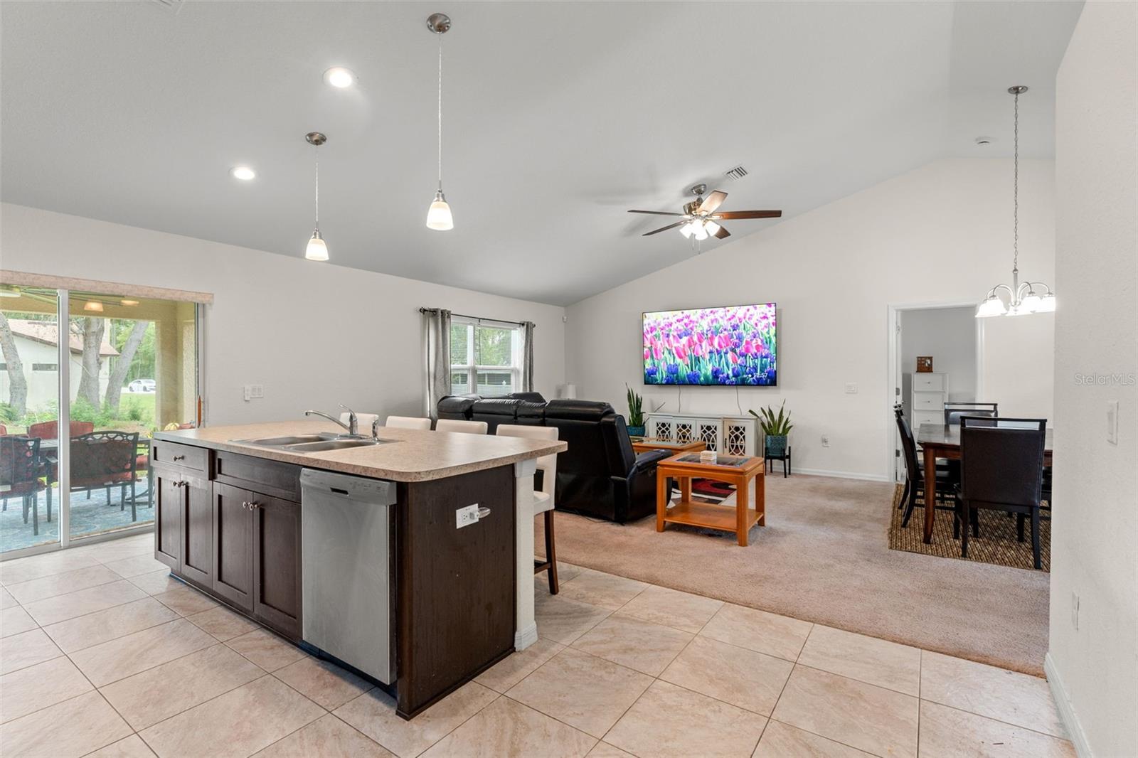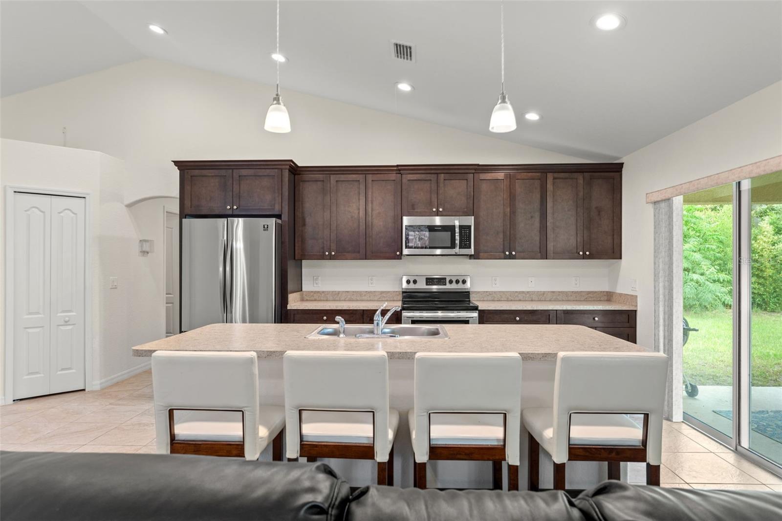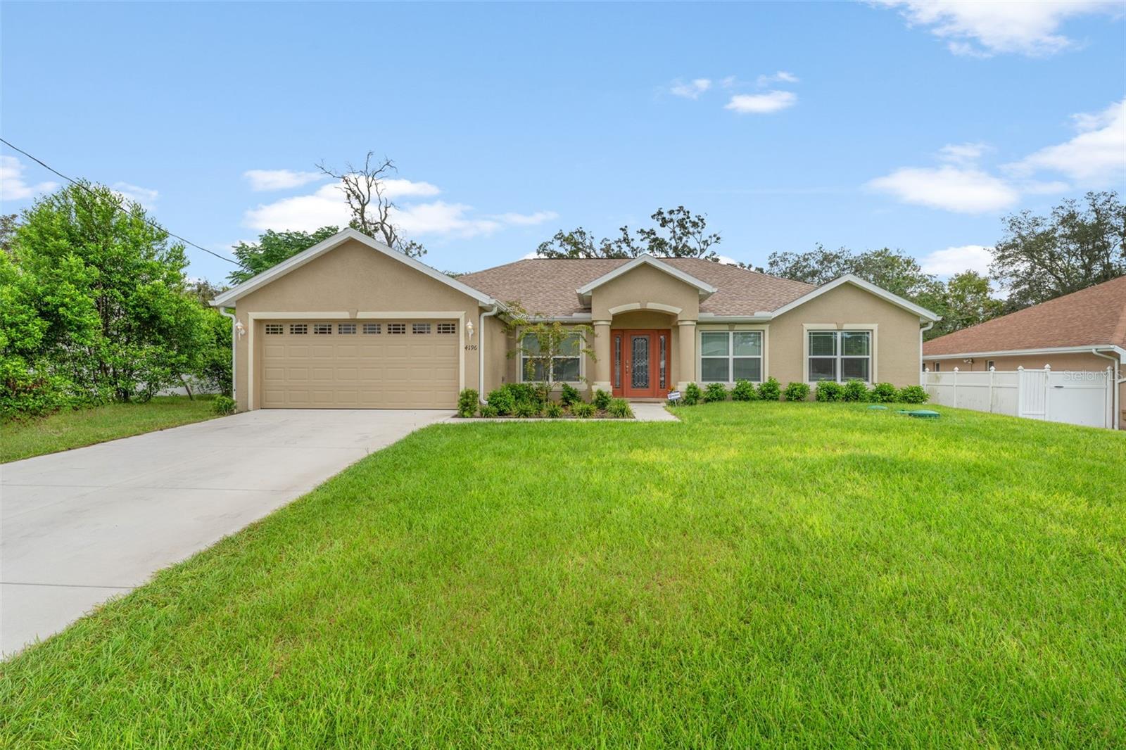 NEARLY BRAND NEW HOME BUILT IN 2023! Welcome to this charming 4-bedroom, 2-bathroom home in the heart of Spring Hill, FL! With 1,955 square feet of living space and 2,576 total square feet, this home offers both comfort and style. As you approach, you'll notice the neatly landscaped front yard and be greeted by a stunning decorative glass door entry. The front living room boasts beautiful tile flooring, while the spacious kitchen features dark wood cabinets, stainless steel appliances, and a large kitchen island with a sink and breakfast bar, perfect for casual dining. The open floor plan flows into the carpeted family room, ideal for relaxation and entertainment. All bedrooms are carpeted for added warmth and comfort, and the inside laundry room comes with a utility tub for added convenience. Sliding glass doors from the kitchen lead to a cozy back patio, perfect for outdoor gatherings or simply enjoying the Florida weather. Best of all, this home comes with NO HOA and NO CDD fees, giving you the freedom to enjoy your property without restrictions. Located near the scenic Weeki Wachee Springs, Homosassa, and Crystal River, outdoor enthusiasts will love the abundance of natural beauty and recreational opportunities. Plus, you're just a short drive away from the vibrant Tampa Bay area, with easy access to major highways, airports, and the best that city living has to offer. Don't miss out on this fantastic opportunity to own a beautiful home in a prime location!