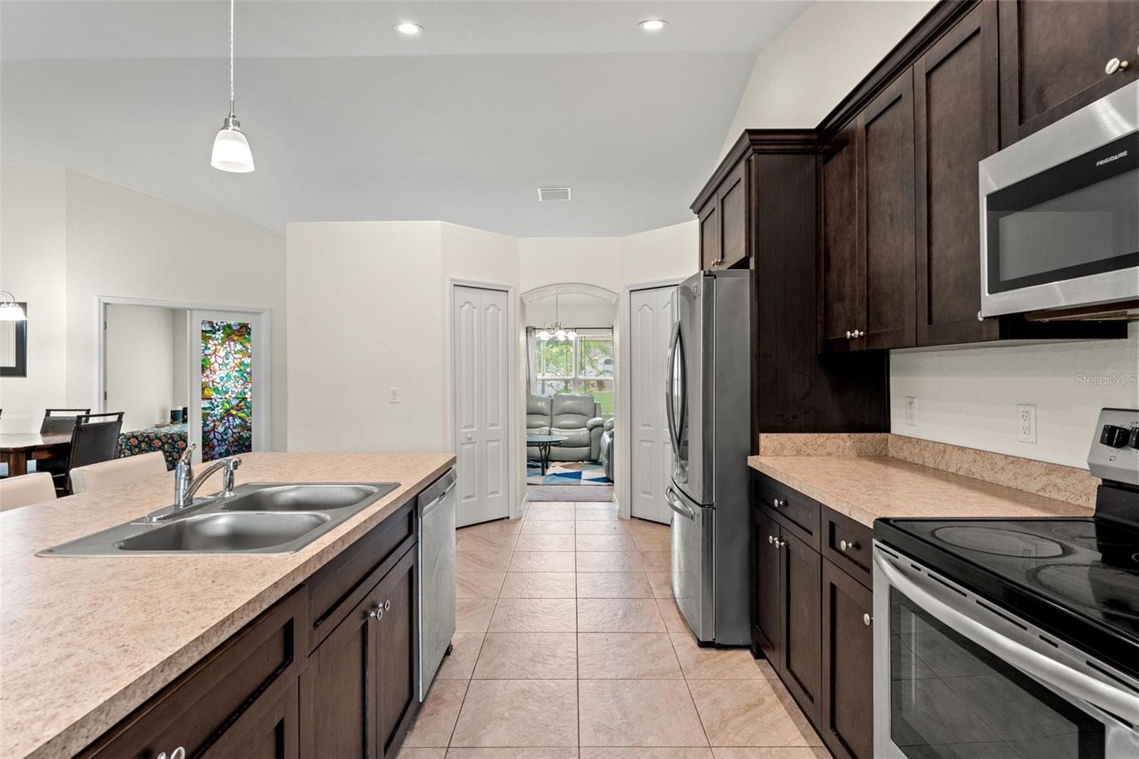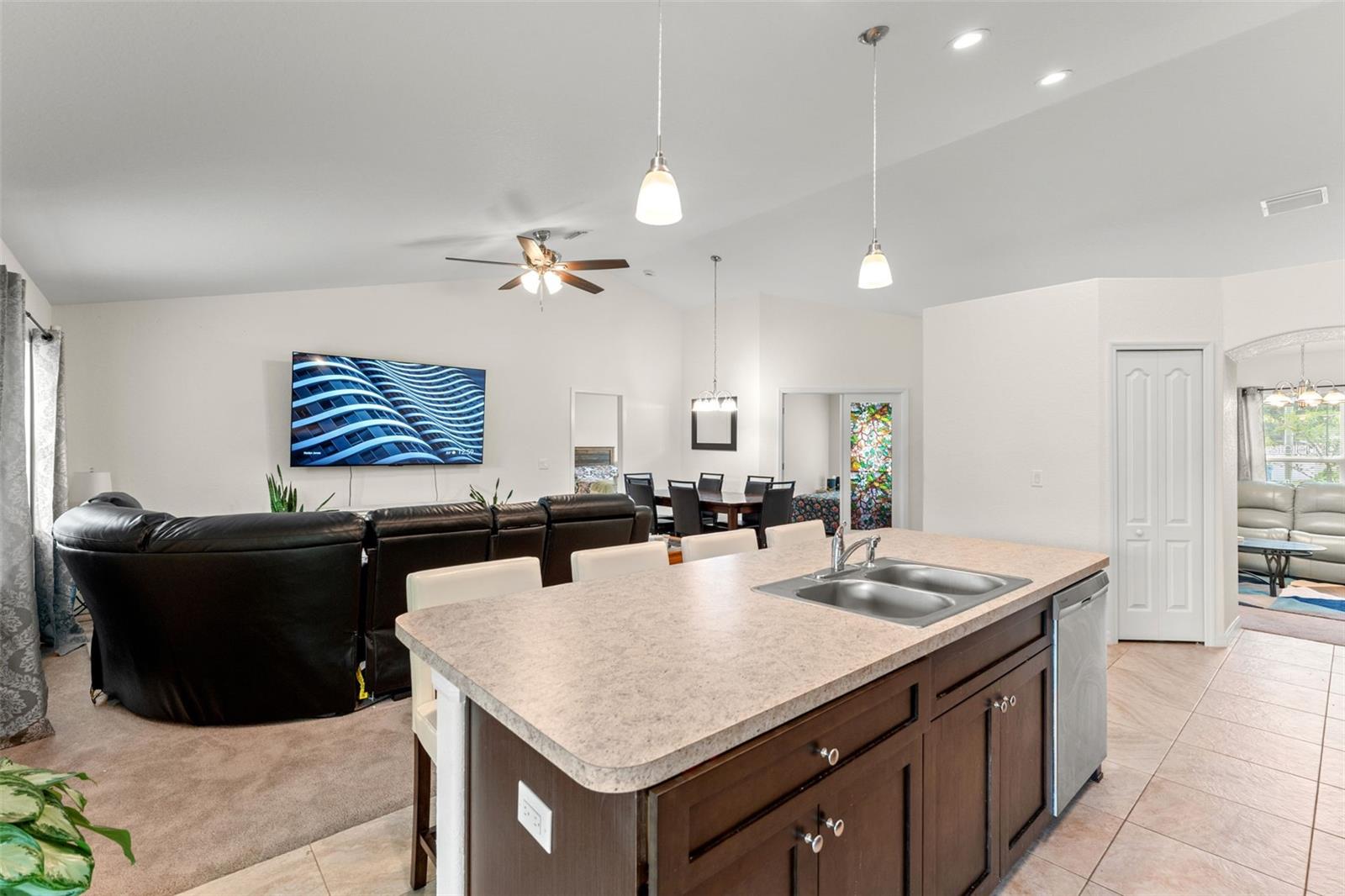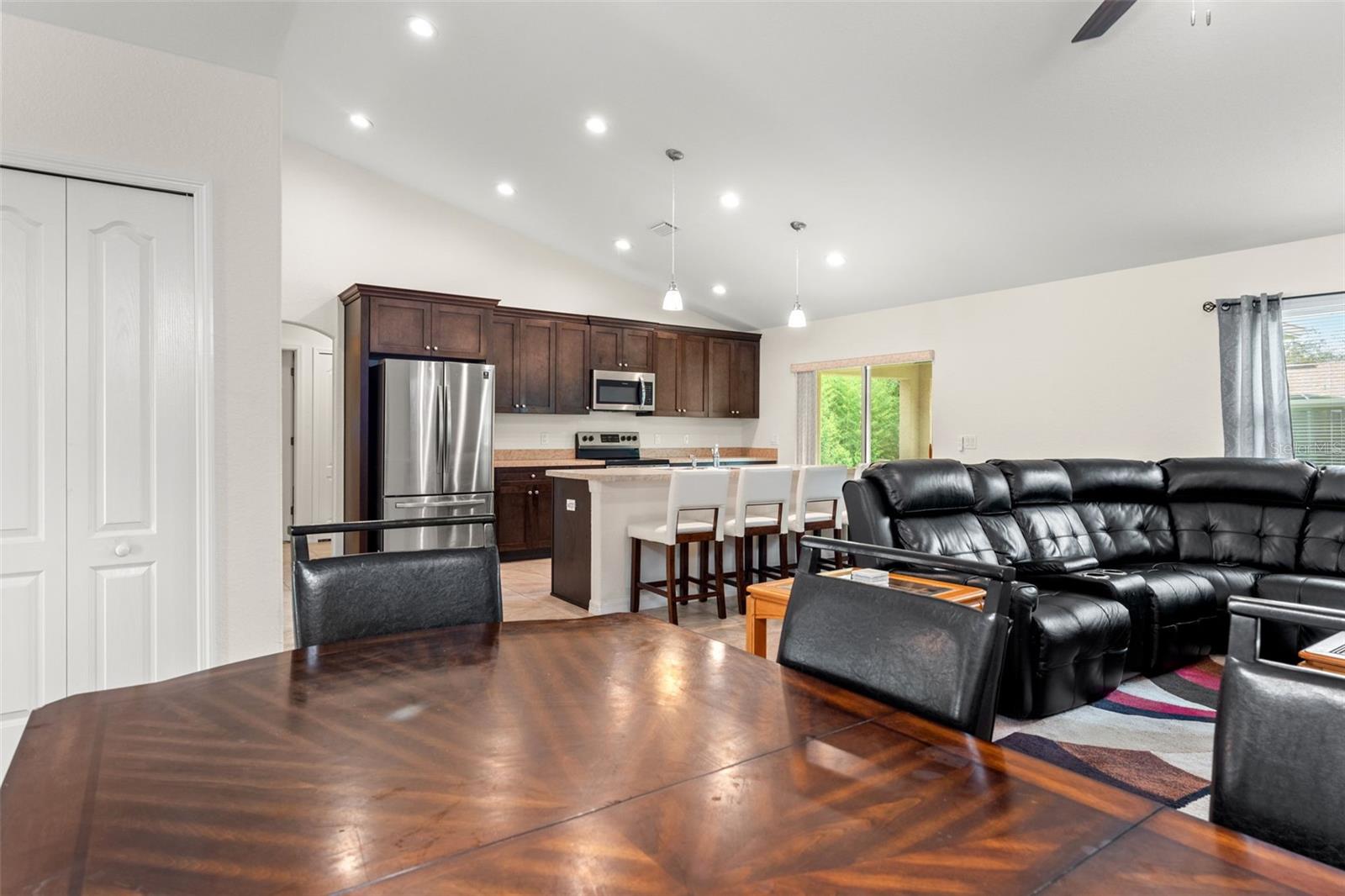 NEARLY BRAND NEW HOME BUILT IN 2023! Welcome to this charming 4-bedroom, 2-bathroom home in the heart of Spring Hill, FL! With 1,955 square feet of living space and 2,576 total square feet, this home offers both comfort and style. As you approach, you'll notice the neatly landscaped front yard and be greeted by a stunning decorative glass door entry. The front living room boasts beautiful tile flooring, while the spacious kitchen features dark wood cabinets, stainless steel appliances, and a large kitchen island with a sink and breakfast bar, perfect for casual dining. The open floor plan flows into the carpeted family room, ideal for relaxation and entertainment. All bedrooms are carpeted for added warmth and comfort, and the inside laundry room comes with a utility tub for added convenience. Sliding glass doors from the kitchen lead to a cozy back patio, perfect for outdoor gatherings or simply enjoying the Florida weather. Best of all, this home comes with NO HOA and NO CDD fees, giving you the freedom to enjoy your property without restrictions. Located near the scenic Weeki Wachee Springs, Homosassa, and Crystal River, outdoor enthusiasts will love the abundance of natural beauty and recreational opportunities. Plus, you're just a short drive away from the vibrant Tampa Bay area, with easy access to major highways, airports, and the best that city living has to offer. Don't miss out on this fantastic opportunity to own a beautiful home in a prime location!