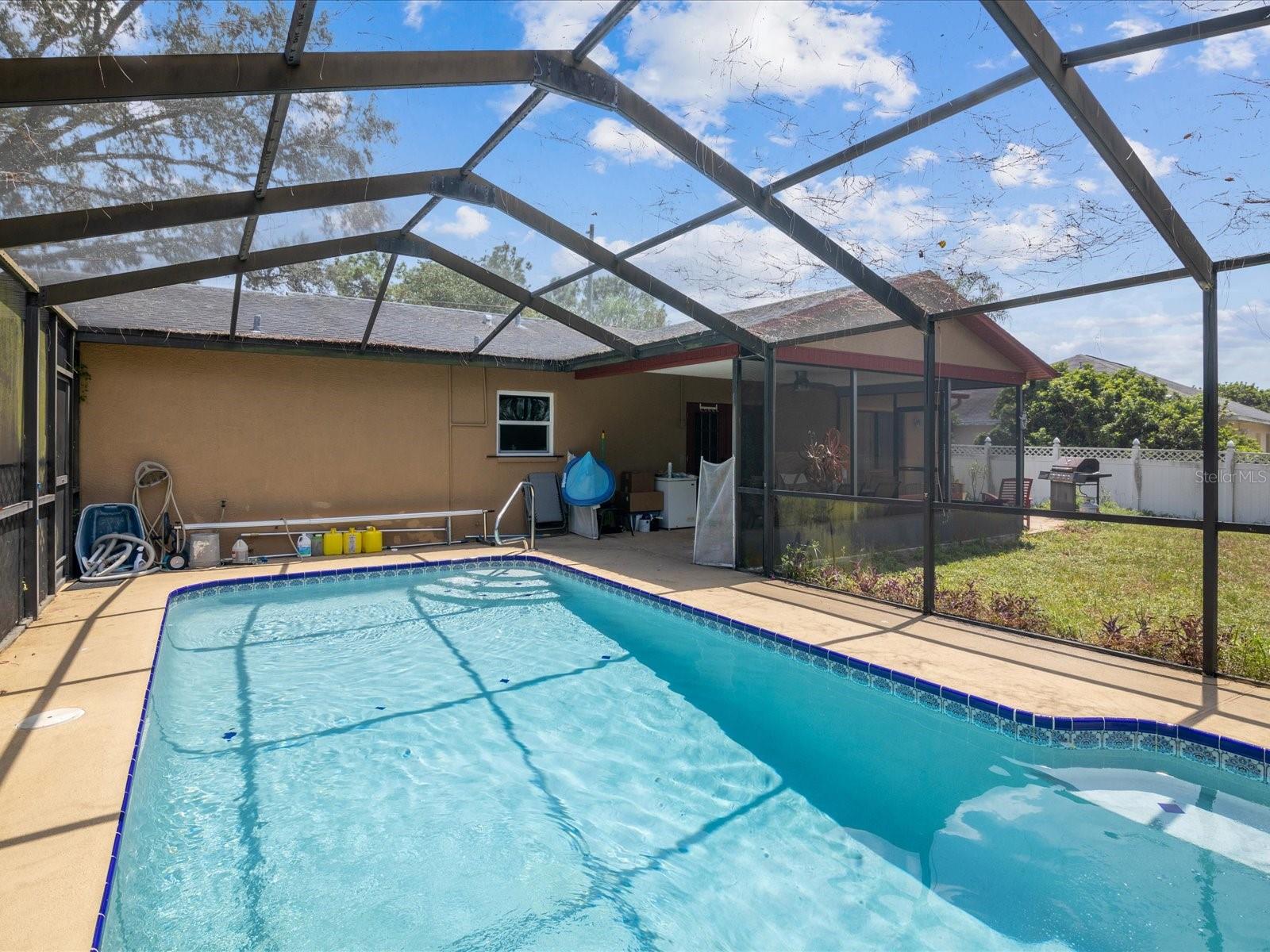 Take a look at this fantastic Spring Hill home! Featuring 3 bedrooms, 2 bathrooms, and 1,459 sq. ft. of living space, this property includes a sparkling POOL and a spacious backyard. The kitchen offers ample storage with wooden cabinets, a pantry, and all-new stainless steel appliances. A convenient walk-in laundry area is attached to the kitchen. Ceramic tile flooring flows through the main living areas, while the main bedroom features cozy carpet and private backyard access through a sliding door. An adjoining small room can be customized as an office or a large walk-in closet. The two additional bedrooms have waterproof laminate flooring and large, impact-resistant Level 2 windows. Step through the French doors to enjoy the enclosed patio and recently resurfaced inground pool, perfect for sunny Florida days. The backyard offers ample room for gardening, pets, entertainment, and a utility shed for extra storage. Updates include a roof replacement in 2013, a water heater in 2023, an 3 Ton AC in 2024, and an additional split AC unit in 2024. The septic tank was also drained in 2024. Conveniently located in the heart of Spring Hill, this home is just a short drive to all essentials and popular spots like Weeki Wachee Springs for kayaking and water slides, plus Roger’s Park. Don’t miss out—schedule your showing today!