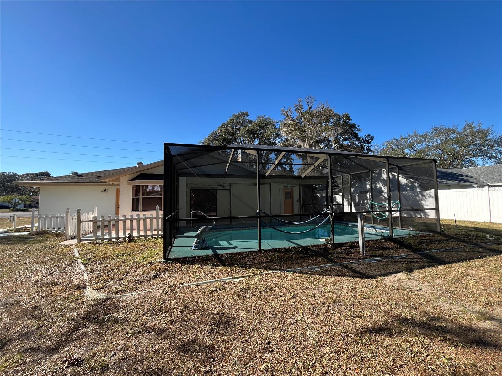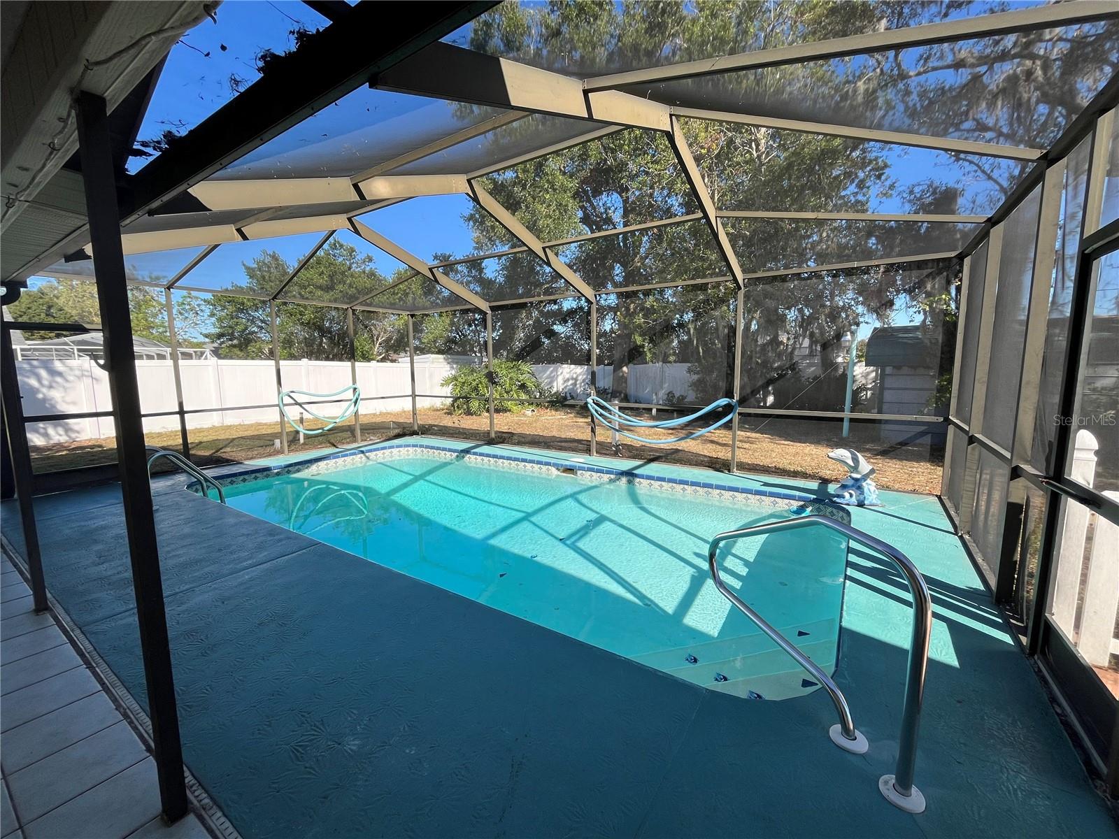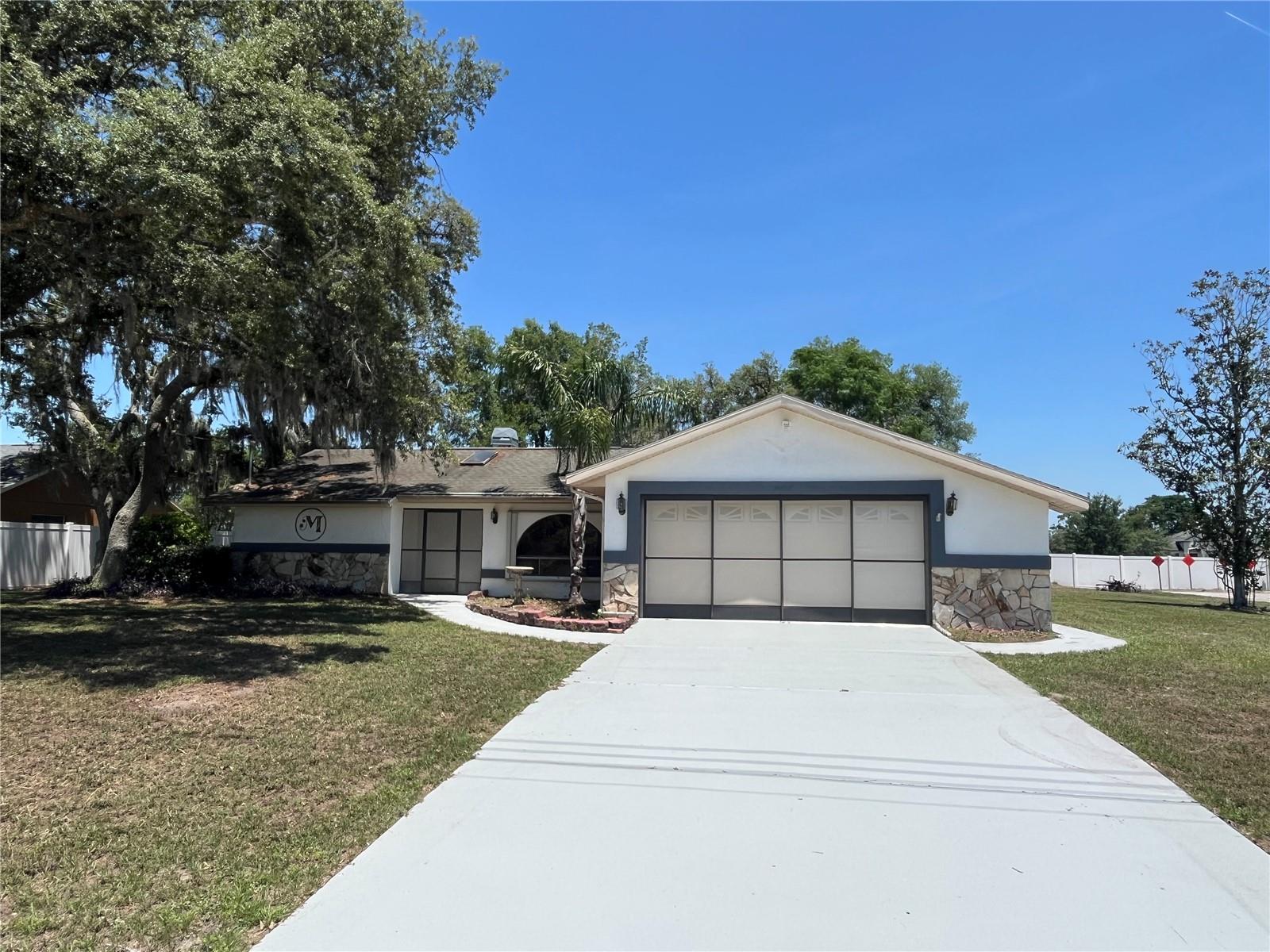 **NEW ROOF installed before closing and you can pick the color! NEW exterior paint in progress! NEW paint on the driveway and sidewalk to the back yard! Come see this SPLIT - 2-bedroom 2 bath home WITH an INGROUND POOL on an OVERSIZED lot in a prime location just off County Line Rd! As you enter you will find an open living room/dining room combo with a cozy fireplace and a big slider that opens to the large SCREENED IN LANAI. Perfect to enjoy the Florida weather and ultimate indoor/outdoor living! The eat-in kitchen also has direct access to the lanai for entertaining family and friends. The primary bedroom has a walk-in closet and ensuite bathroom with access to the sparkling pool. The 2nd bedroom shares the hall bath and also offers pool and backyard access, ensuring that everyone can enjoy the ultimate in outdoor fun. There is an inside laundry room off the kitchen that includes cabinets for additional storage. Hurricane shutters are included! There is also storage in the 2-car garage. The oversized lot could be fenced in for plenty of room for all your fur babies to roam. Out back you'll find a shed for extra storage and a partial concrete driveway to park your RV or trailer. The side street is a dead-end that will never be developed so there is plenty of parking for guests. PRIME LOCATION with easy access to the Suncoast Parkway and County Line Rd for shopping nearby. And just minutes to Weeki Wachee Park. Schedule a tour today and get ready for summer fun by the pool!
