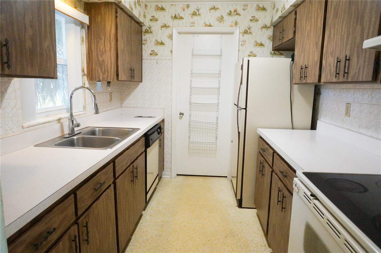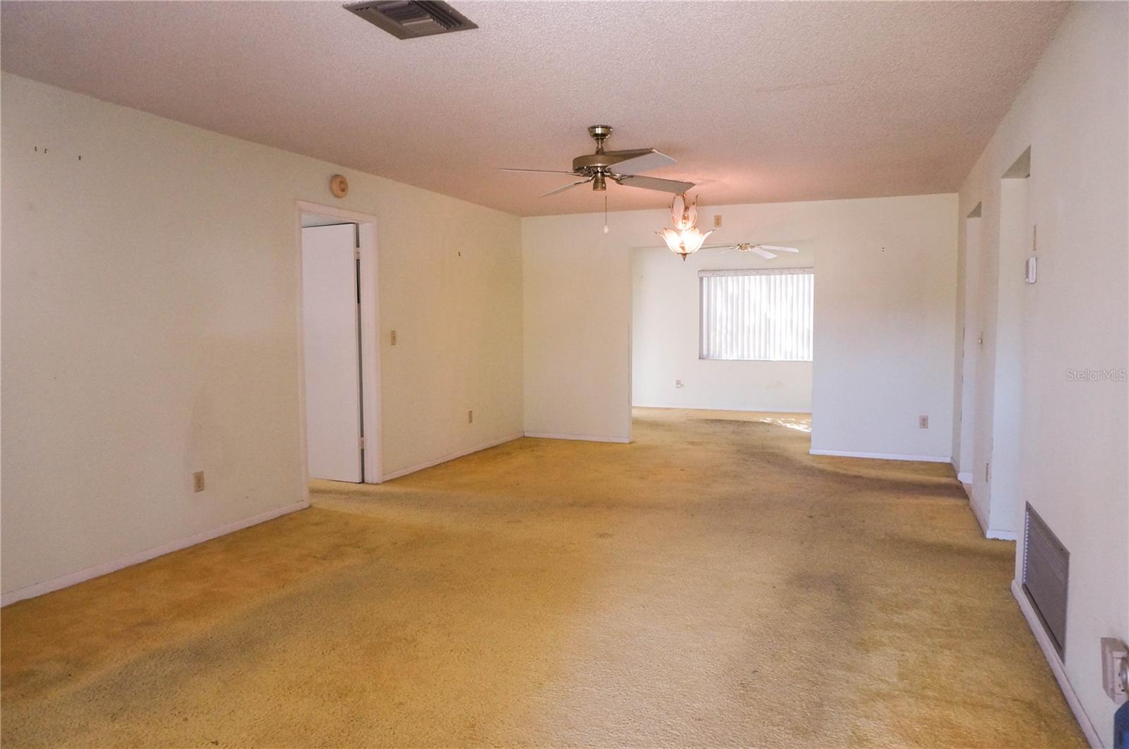 Diamond in the Rough! Estate Sale Home appears to have been well maintained but due for cosmetics: needs new carpet/flooring; fresh paint & a kitchen redo. All appliances stay. Great Floorplan w/combo living room-dining room; Family room w/sliders to a covered & screened patio. Master Bedroom w/step-in shower plus a Good sized Secondary Bedroom adjacent to the Tub/shower combo Bath. Galley Kitchen - all appliances stay. Laundry room w/space for a large pantry/storage. 1 Car Garage. Conveniently located on a .30 AC Corner lot w/mature landscaping.
