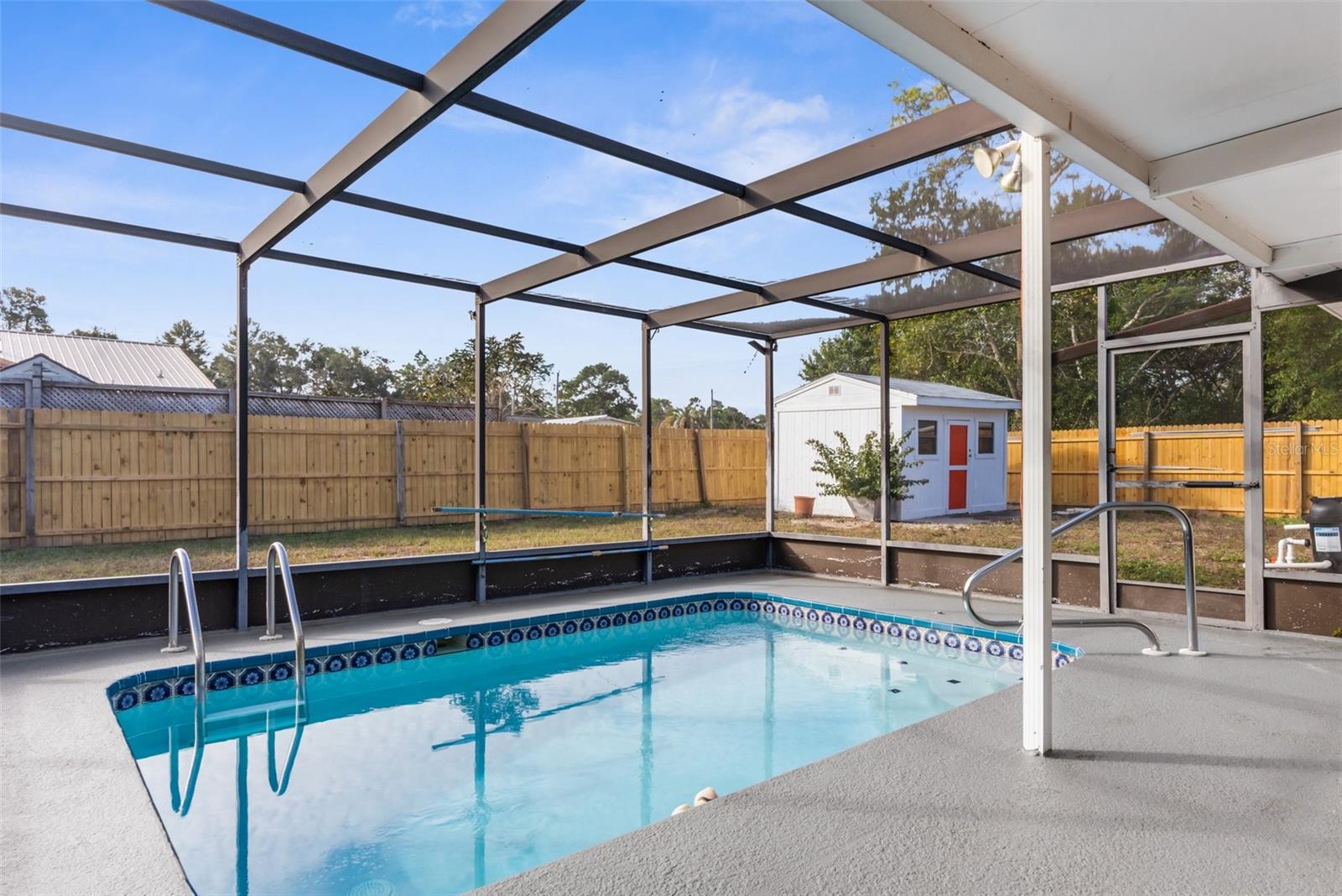Cottage inground POOL home with outdoor shower! Welcome to 7298 Blackhawk Trail, a delightful 2-bedroom, 1.25-bathroom Florida Cottage home in the heart of Spring Hill, Florida. This cozy gem offers a perfect blend of comfort and convenience, nestled in a serene neighborhood with no HOA or CDD fees to worry about. Roof 2021. AC 2018. Pool Resurface 2024. 2018 Tile flooring throughout. Artic White Quartz Countertops 2025. Situated on .20 of an acre. Plenty of room for all of your toys, boats, cars etc. Step inside to find a bright and inviting living space, perfect for relaxing or entertaining. The kitchen boasts ample counter space with bright Artic White Quartz countertops and Blue & White cabinetry, with brushed gold hardware, ready for your culinary creations. Both bedrooms are spacious and provide plenty of natural light. The true highlight of this property is the private cocktail pool, flanked on two sides by double French Doors, in the backyard—perfect for cooling off on warm Florida days or hosting intimate gatherings. The fully fenced yard offers plenty of privacy and space for outdoor living, gardening, or even a pet paradise. Situated close to local amenities, fishing, boating, golfing, shopping, dining, and easy access to major highways, this home is ideal for first-time buyers, downsizers, or anyone seeking a low-maintenance lifestyle. Cute Shed in the back and a one car garage. Don’t miss this rare opportunity to own a home that checks all the boxes! Schedule your showing today.