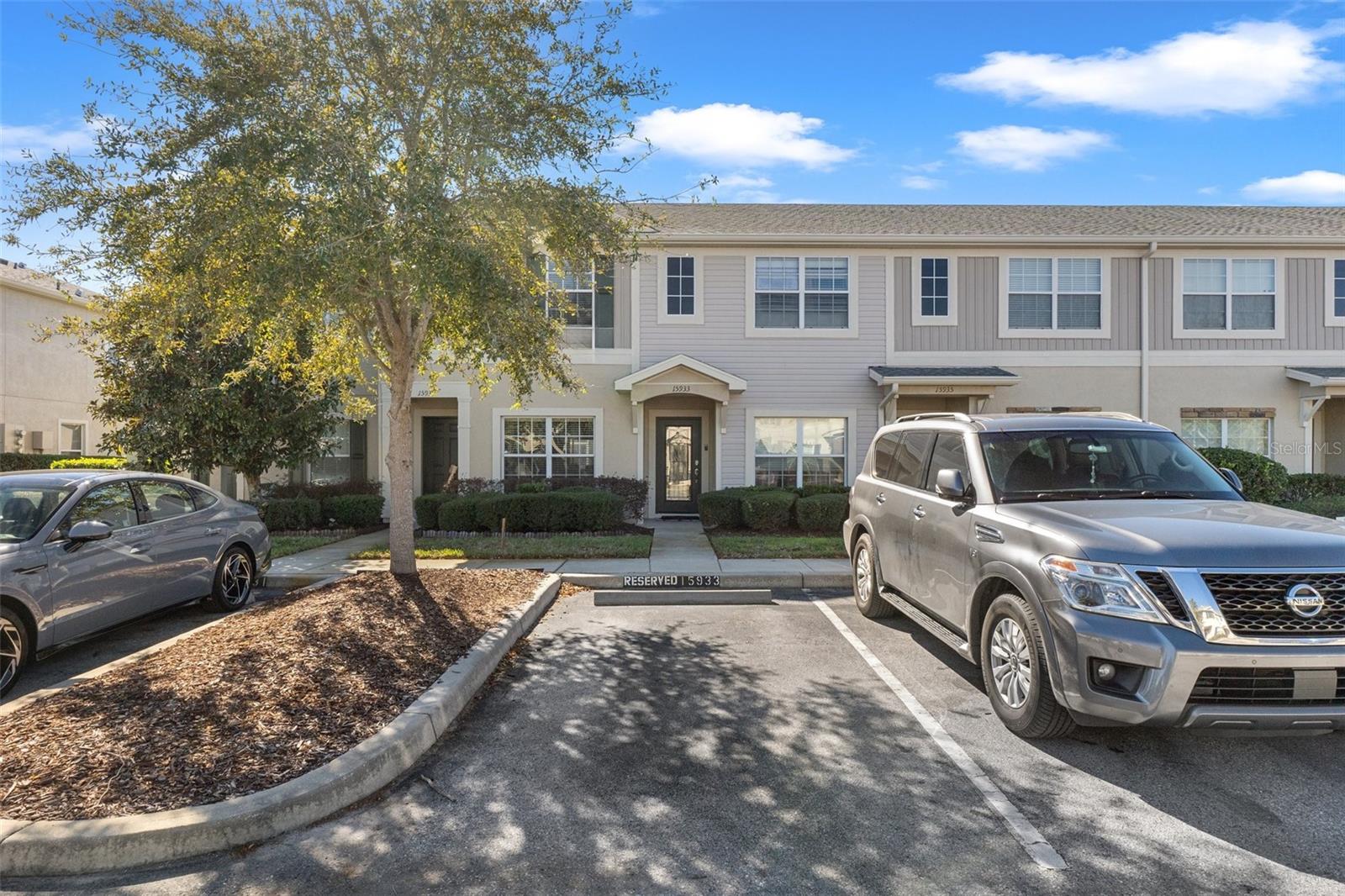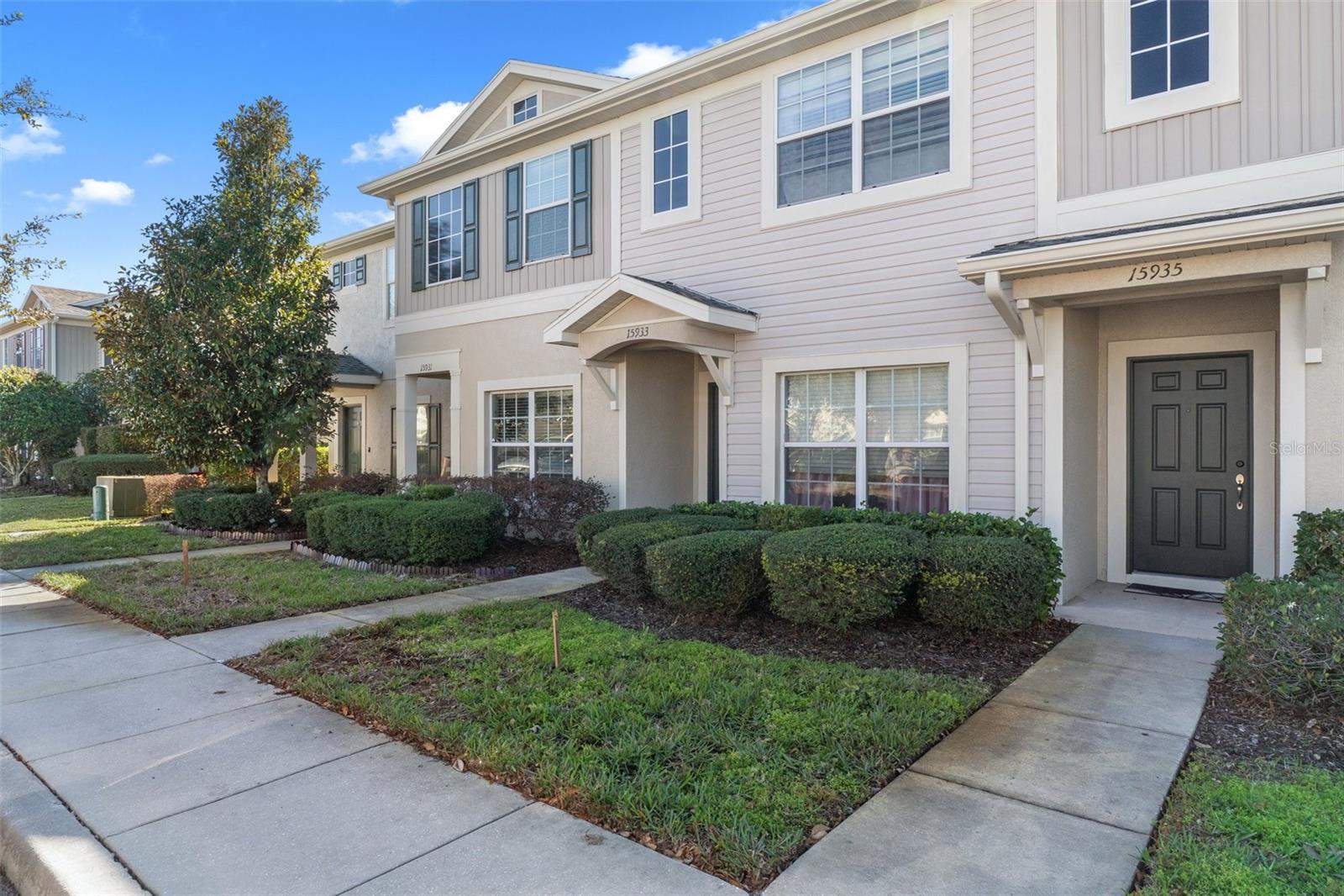 WOW! Check out this stunning home in the highly sought-after community of Lone Star Ranch! This 2013-built gem boasts 2 spacious bedrooms, 2.5 baths, plus a bonus den—perfect for a third bedroom, office, or playroom. The house boast 1,390 sq/ft Plus, enjoy breathtaking water views right in your backyard! As you approach the home, you'll be greeted by a brand-new, beautiful front door. Step inside to gleaming hardwood floors throughout the main living area. The kitchen is a chef's kiss, featuring granite countertops, a stylish backsplash, and brand-new stainless steel appliances. Step through the sliding doors onto your screened lanai, where you can relax and unwind while taking in the serene water views! New pavers add a touch of elegance to the space, making it the perfect place for outdoor enjoyment. Upstairs, you'll find the master suite with a walk-in closet and an en-suite bathroom with a walk-in shower. The second bedroom also features a walk-in closet, with a full bathroom right next door, complete with a shower/tub combo. Laundry closet is upstairs for easy convenience. With low HOA fees and access to a community pool, this townhome offers the perfect balance of comfort and convenience. Roof (2013) AC (2013). Located just minutes from the bike trail, Suncoast Parkway, shopping, dining, & more! This home truly has it all. Don’t miss your chance to make this incredible home yours! Call today for a showing!