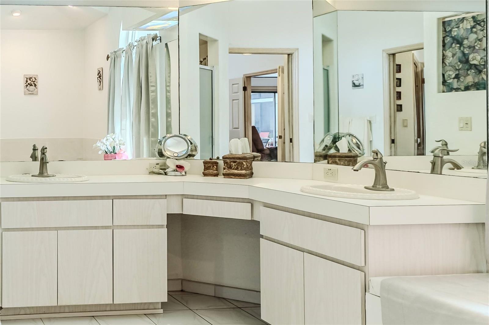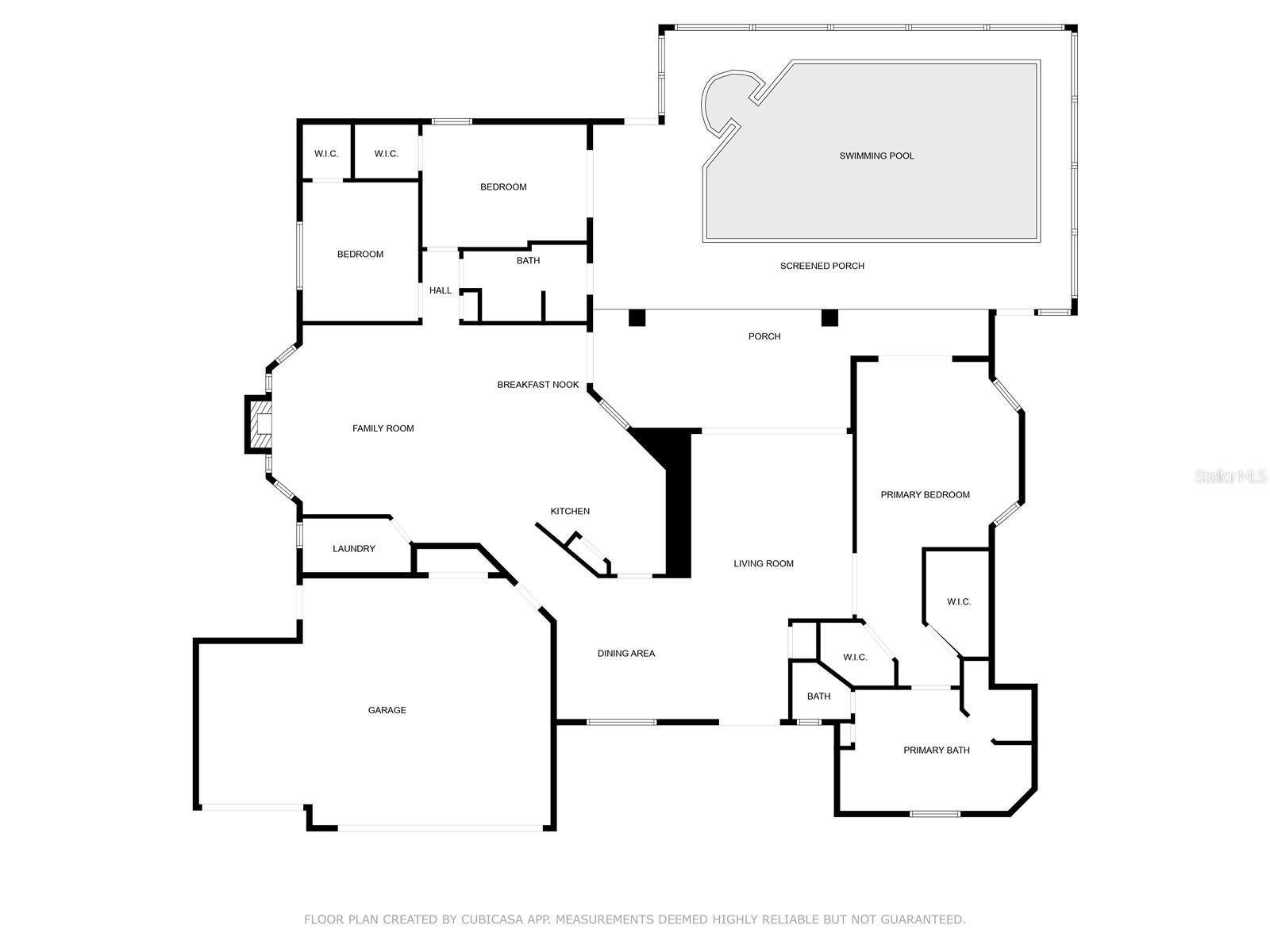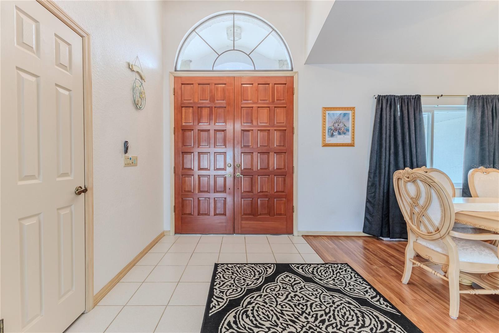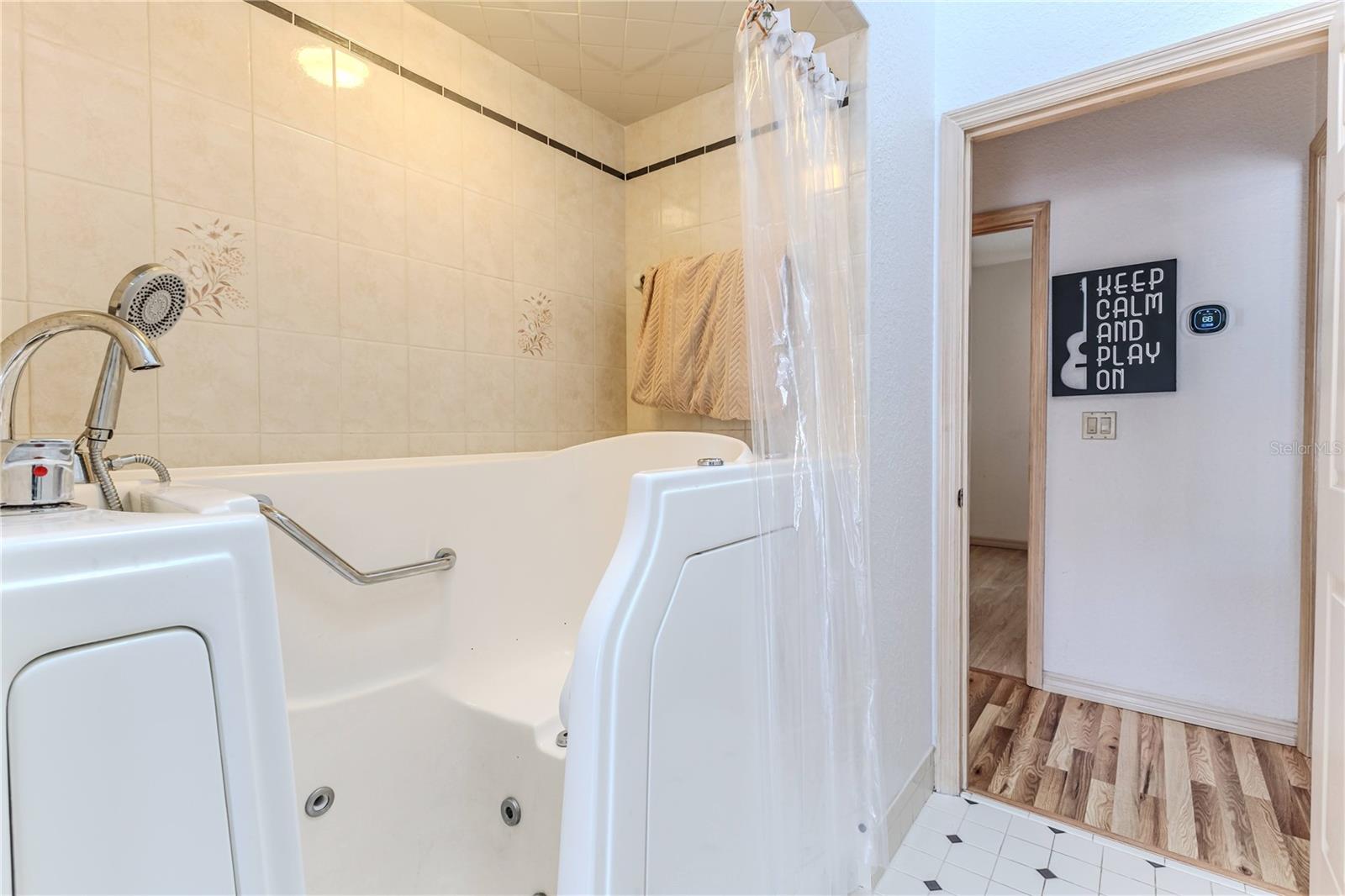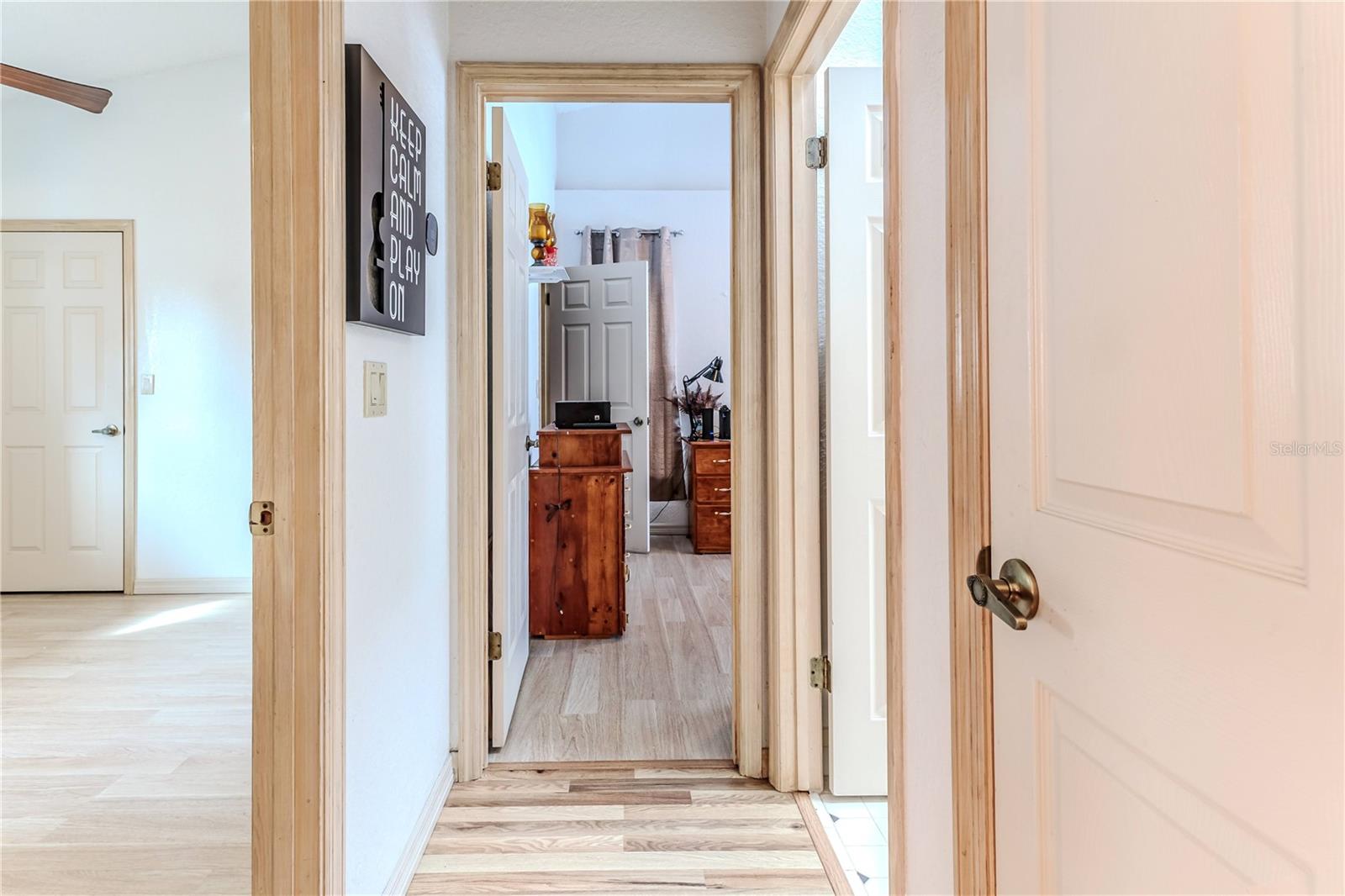Discover this beautifully maintained 3-bedroom, 2-bathroom home with a 2.5-car garage and a heated saltwater pool and spa, perfect for enjoying Florida's sunshine. The split floor plan provides privacy, while the double-door entry welcomes you into a grand formal living and dining room with vaulted ceilings, laminate flooring, and three sliding doors leading to the expansive lanai. The main bedroom suite is a true retreat, featuring laminate floors, a skylight, private pool access, and two oversized walk-in closets. The ensuite bathroom offers a jetted tub, dual sink vanity, shower, linen closet, and a separate toilet closet. The open-concept kitchen and family room create the heart of the home, boasting a fireplace, built-ins, two skylights, a range with built-in oven, pantry, breakfast bar, and cozy dining nook with lanai access. Two additional spacious bedrooms include large walk-in closets, with one offering direct pool access. The guest bathroom features a new walk-in tub and a convenient door leading to the lanai. Step outside to an outdoor oasis, complete with a covered lanai with skylights, a screen-enclosed heated pool and spa with a waterfall feature, and a fully fenced backyard. Additional highlights include new windows (2024), a new HVAC system (2024), and a new roof (2025), ensuring peace of mind. A shed provides extra storage, and the large garage includes a freezer. The inside laundry room is equipped with a sink and cabinets. This home is a rare find—move-in ready. Schedule your showing today and experience Florida living at its best!