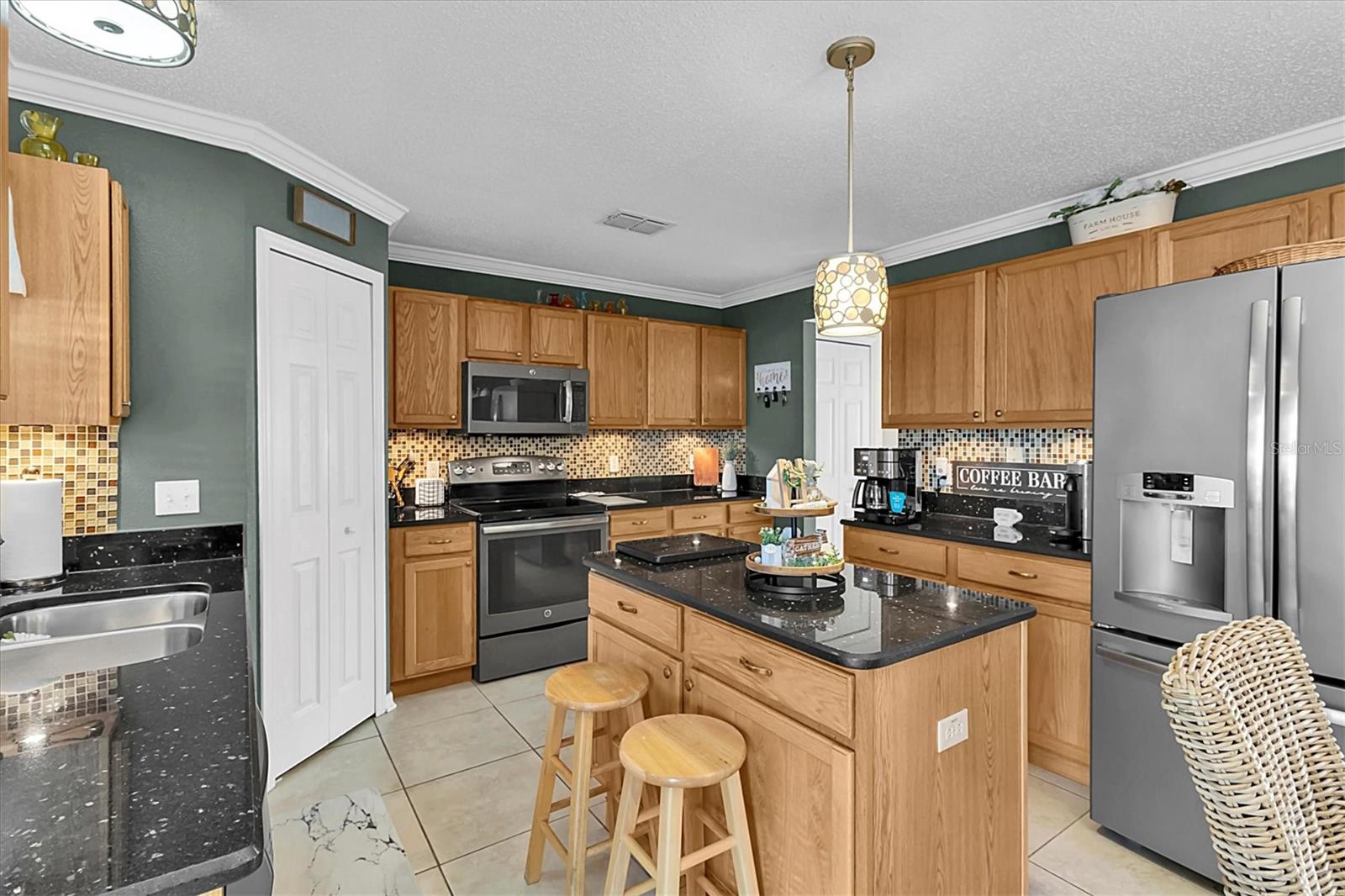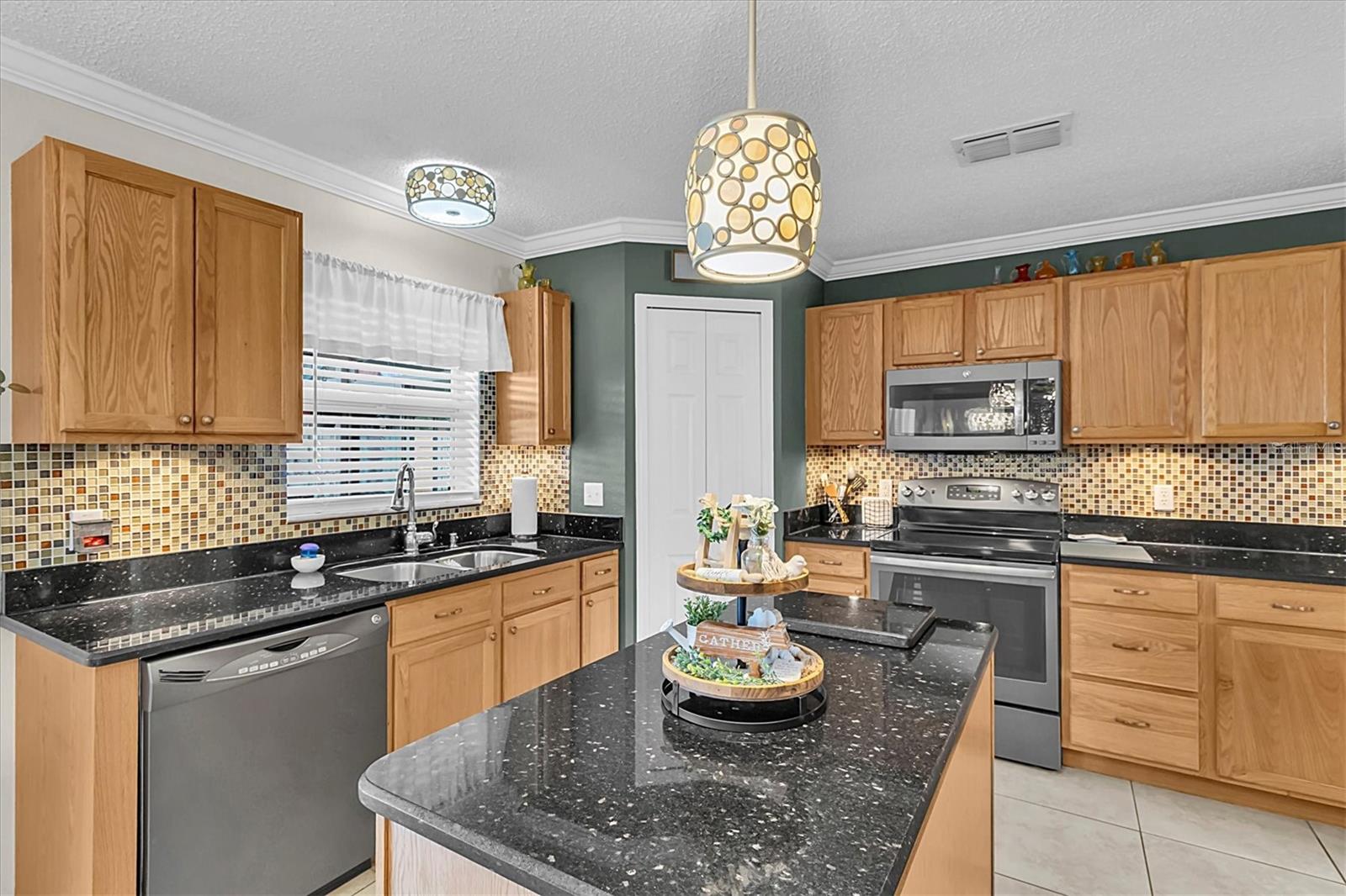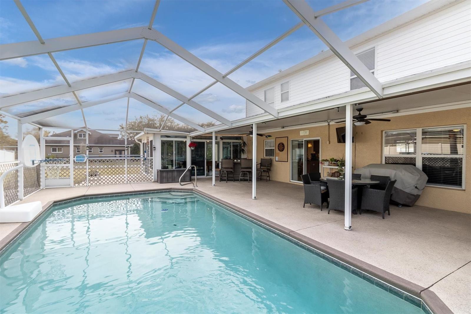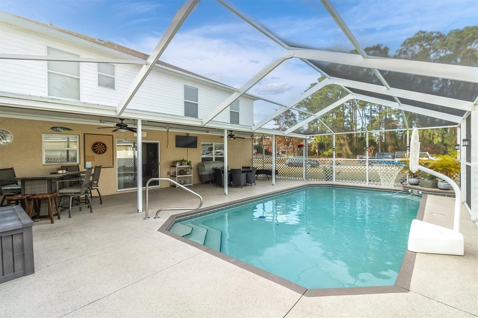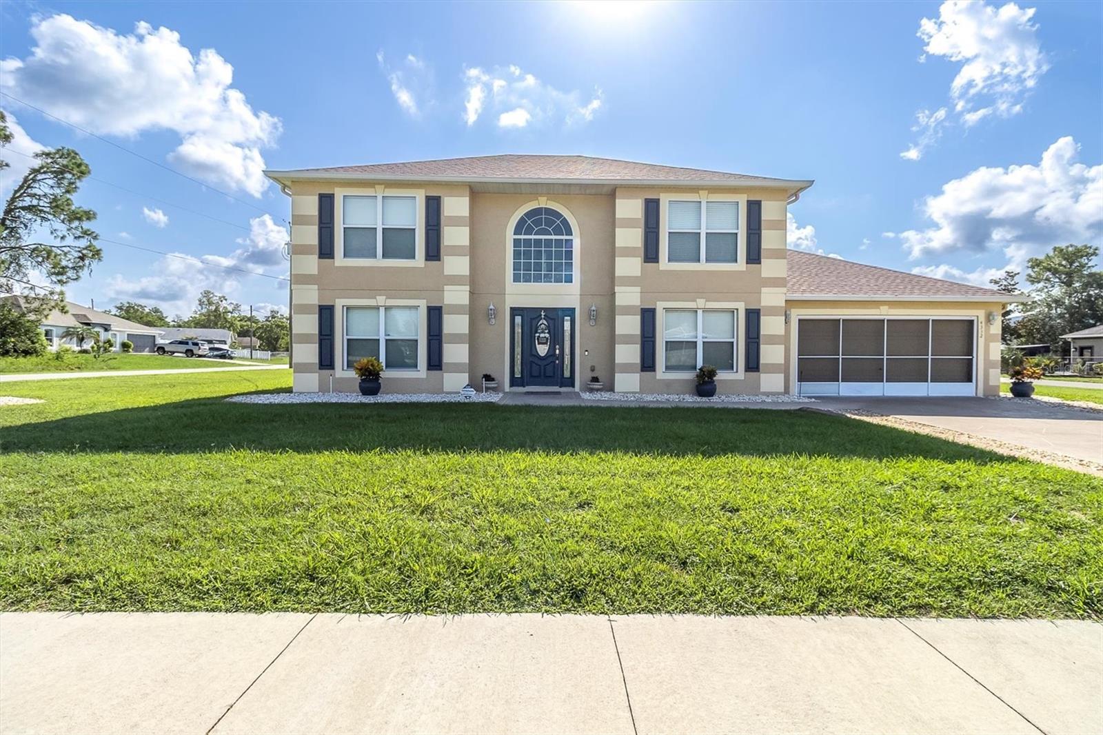 Stunning 3-bedroom, plus office/flex room, 2.5-bathroom 2-story home situated on an oversized .32 acre lot, offering nearly 2,400 SF of living space in a prime Spring Hill location. This well-maintained home features crown moulding throughout and boasts a brand-new roof (2023) along with new gutters, A/C (2021) and recently painted exterior. The oversized 2.5-car garage provides ample storage, while the added sunroom with real windows and a wall unit A/C offers a relaxing retreat. The spacious floor plan includes 3 bedrooms upstairs, plus a versatile office/flex room downstairs. Entertain in the separate dining room or relax in the kitchen/family room combo. The chef-inspired kitchen features granite countertops, tile flooring, stainless steel appliances, a center island, and a stylish tile backsplash, with a sliding door leading to the screened-in pool area with lanai—perfect for outdoor gatherings. Upstairs, you'll find a loft area ideal for additional living space, and the generously sized primary suite with an ensuite bath offering a soaking tub and separate shower. The guest rooms are also nicely sized, ensuring plenty of space for family or guests. Enjoy the Florida lifestyle with your private pool, and appreciate the added value of this oversized lot. Prime location with minutes to shopping, dining, and easy access to the Suncoast Parkway. No HOA, so bring your boat, jet ski, camper or commerical vechicle to store on the spacious double lot. Don’t miss this opportunity to own a beautifully appointed home in a fantastic Spring Hill neighborhood.