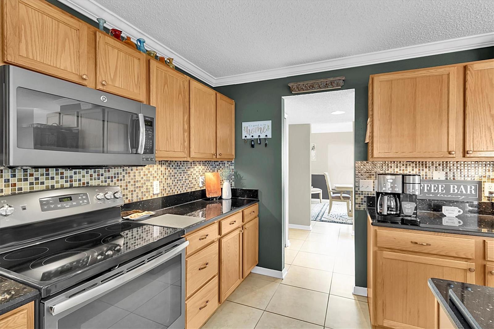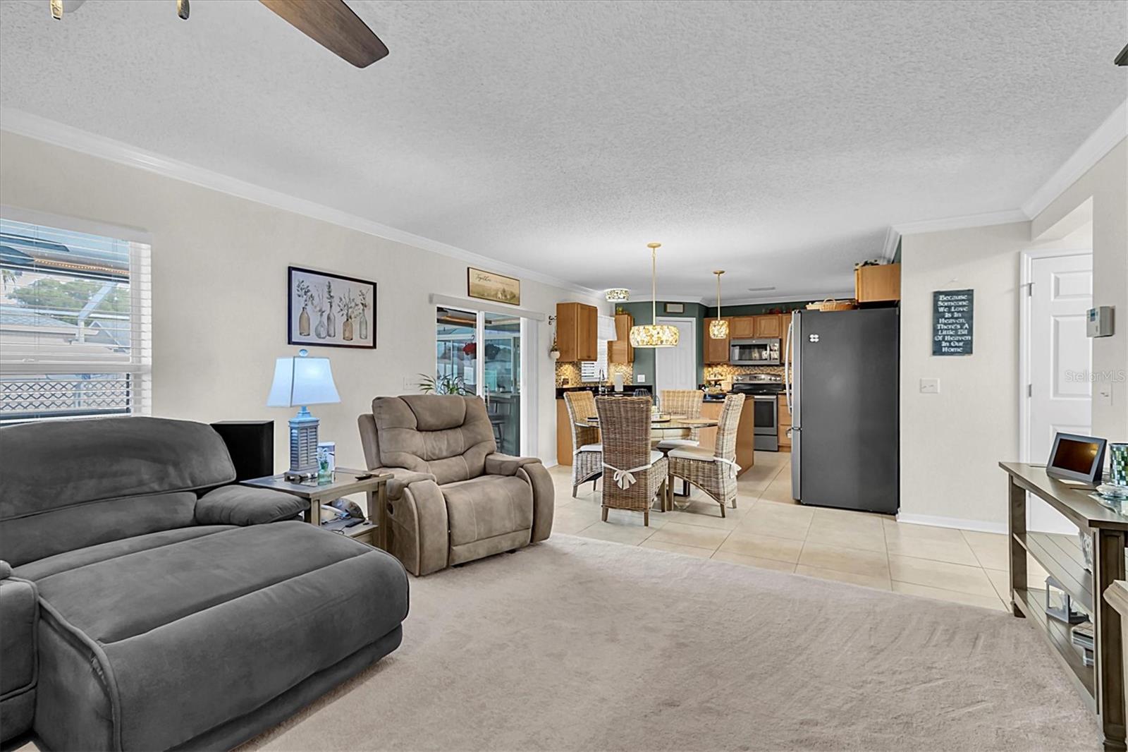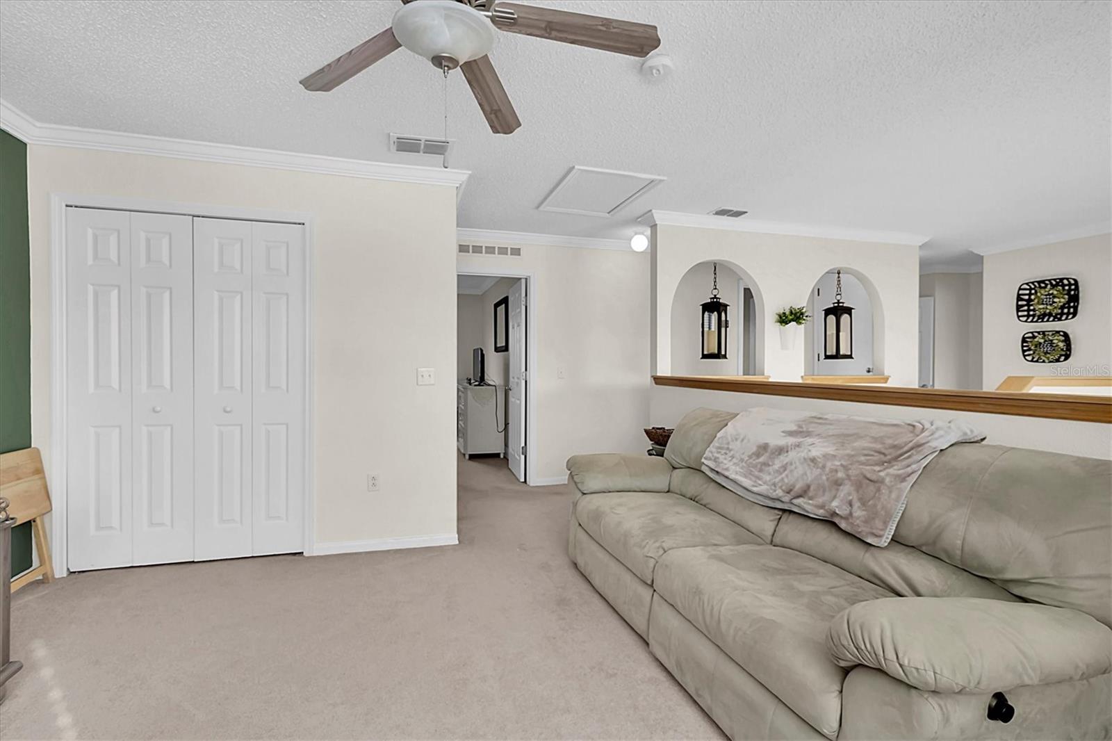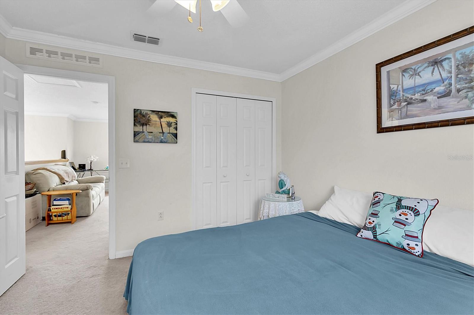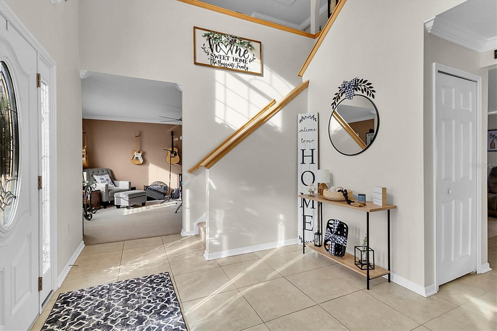 Stunning 3-bedroom, plus office/flex room, 2.5-bathroom 2-story home situated on an oversized .32 acre lot, offering nearly 2,400 SF of living space in a prime Spring Hill location. This well-maintained home features crown moulding throughout and boasts a brand-new roof (2023) along with new gutters, A/C (2021) and recently painted exterior. The oversized 2.5-car garage provides ample storage, while the added sunroom with real windows and a wall unit A/C offers a relaxing retreat. The spacious floor plan includes 3 bedrooms upstairs, plus a versatile office/flex room downstairs. Entertain in the separate dining room or relax in the kitchen/family room combo. The chef-inspired kitchen features granite countertops, tile flooring, stainless steel appliances, a center island, and a stylish tile backsplash, with a sliding door leading to the screened-in pool area with lanai—perfect for outdoor gatherings. Upstairs, you'll find a loft area ideal for additional living space, and the generously sized primary suite with an ensuite bath offering a soaking tub and separate shower. The guest rooms are also nicely sized, ensuring plenty of space for family or guests. Enjoy the Florida lifestyle with your private pool, and appreciate the added value of this oversized lot. Prime location with minutes to shopping, dining, and easy access to the Suncoast Parkway. No HOA, so bring your boat, jet ski, camper or commerical vechicle to store on the spacious double lot. Don’t miss this opportunity to own a beautifully appointed home in a fantastic Spring Hill neighborhood.