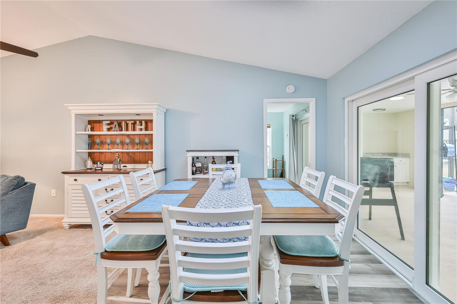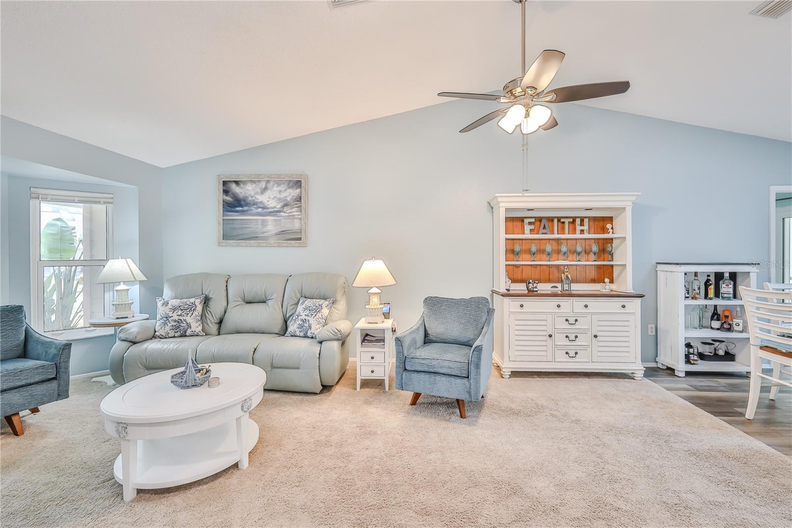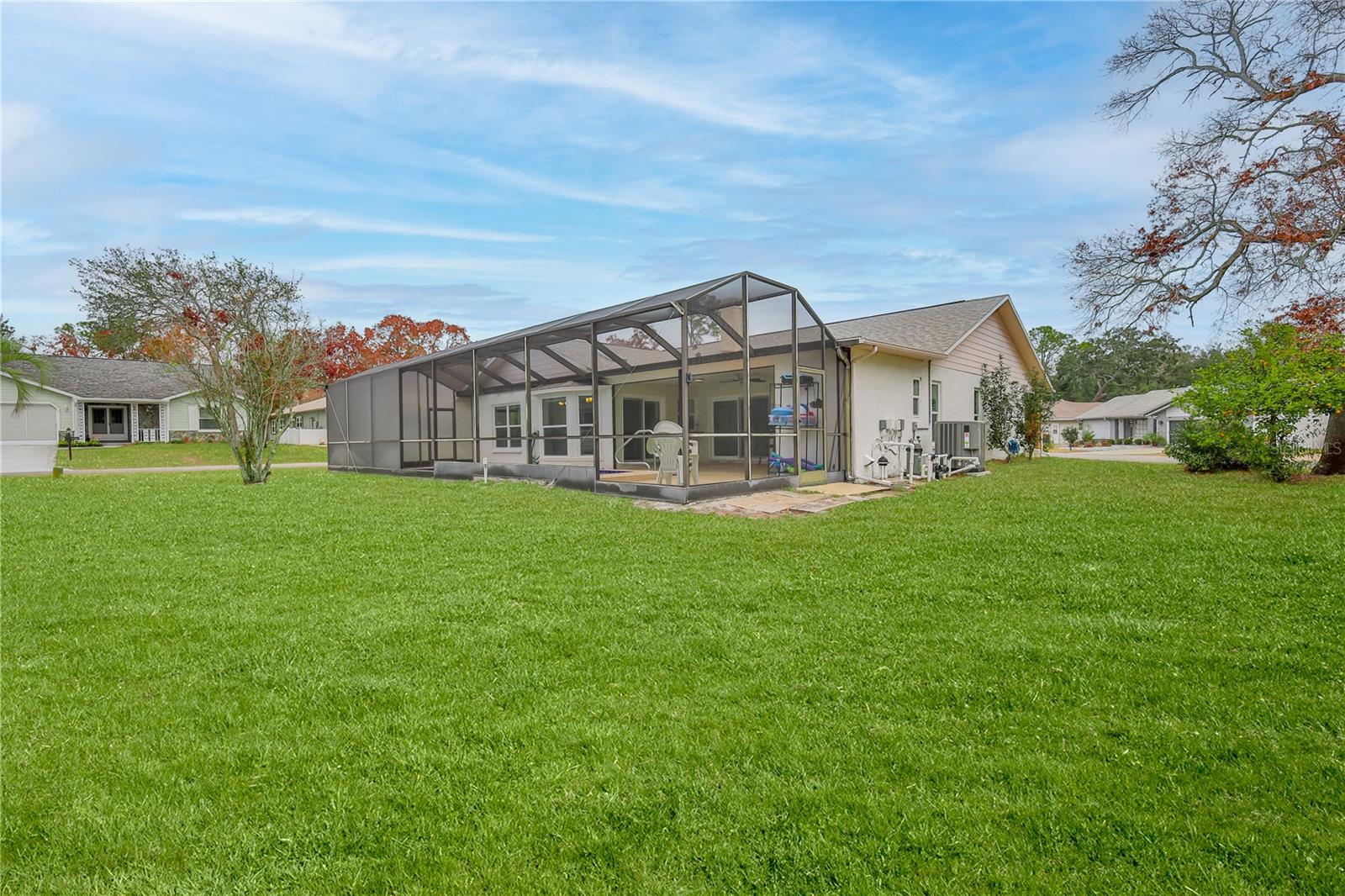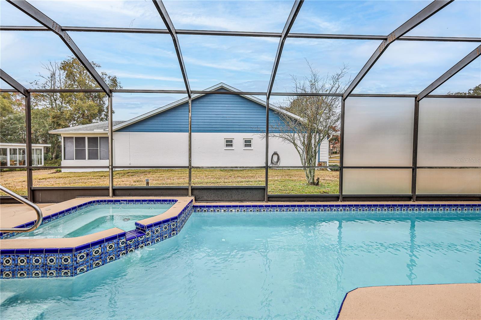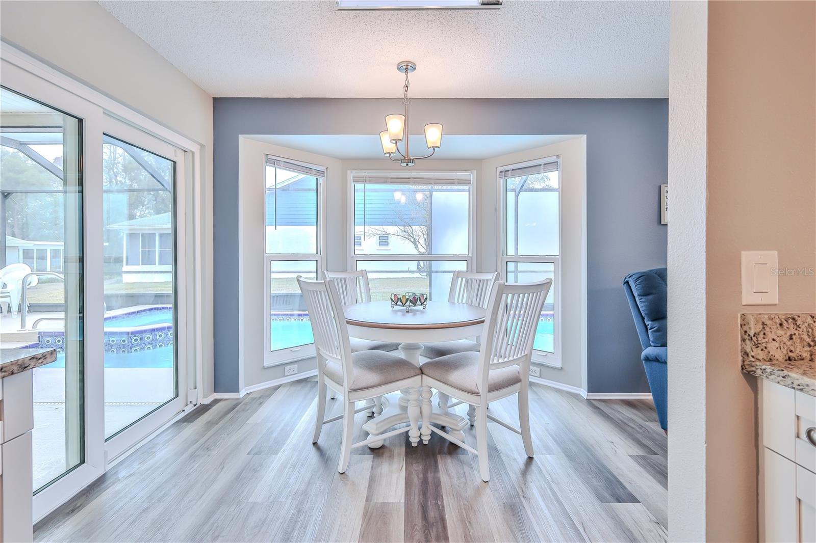 You'll love this beautifully decorated Victoria model, pool-home! Boasting 3 bedrooms, 2 full bathrooms, 2 half bathrooms and a 2-car garage, this home features a split floor plan with a mix of carpet and luxury vinyl plank flooring throughout. Step inside to a freshly painted interior featuring a formal living and dining area with vaulted ceilings, skylights, along with a cozy wood-burning fireplace. This space flows seamlessly into a versatile screened-in pool and lanai—perfect for relaxation or entertaining. The inviting family room offers tranquil pool views, creating a warm and welcoming atmosphere. The updated kitchen is light and bright, featuring soft-close wood cabinets, granite countertops, a new dishwasher, stainless steel appliances, and a sunny breakfast nook ideal for enjoying your morning coffee. The main bedroom ensuite is a private haven with two walk-in closets, sliding glass doors to the lanai, and serene pool views. The updated ensuite bathroom includes a walk-in shower and a linen closet. Guests will appreciate the generously sized second bedroom with an ensuite half bath, while bedroom 3 is conveniently located near the guest bathroom with a tub/shower combo. The outdoor oasis includes a screened-in heated pool with a jetted spa and waterfall feature, as well as a covered lanai with a kitchenette, sink, storage, and a half bath—perfect for entertaining. This home is move-in ready with a new roof (2024), new HVAC system (2024), and new hurricane-rated double-pane windows and sliding doors (2024). Additional highlights include new toilets, newer lighting fixtures, a well for the sprinkler system, water softener, and an inside utility room with cabinets and a sink. Located in Timber Pines, a guard-gated, 55+ deed-restricted community, you'll enjoy unparalleled amenities, including three 18-hole golf courses, a pitch-and-putt course, two pools, 12 pickleball courts, a clubhouse with a restaurant and bar, a performing arts center, and a state-of-the-art fitness center. Engage in over 100 clubs, from golf and Mah Jongg to woodworking and pottery. Explore this captivating home and envision your future in this vibrant, resort-style community. Your dream home awaits!