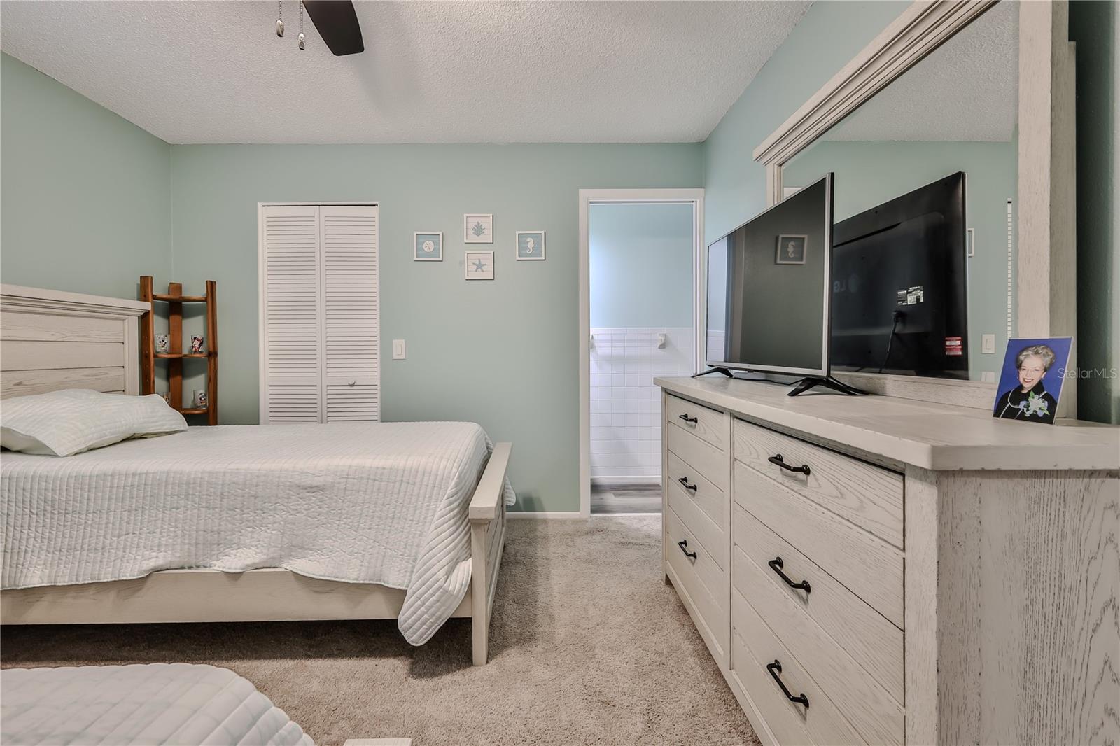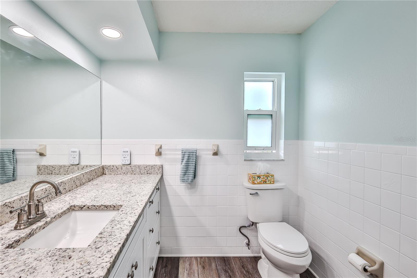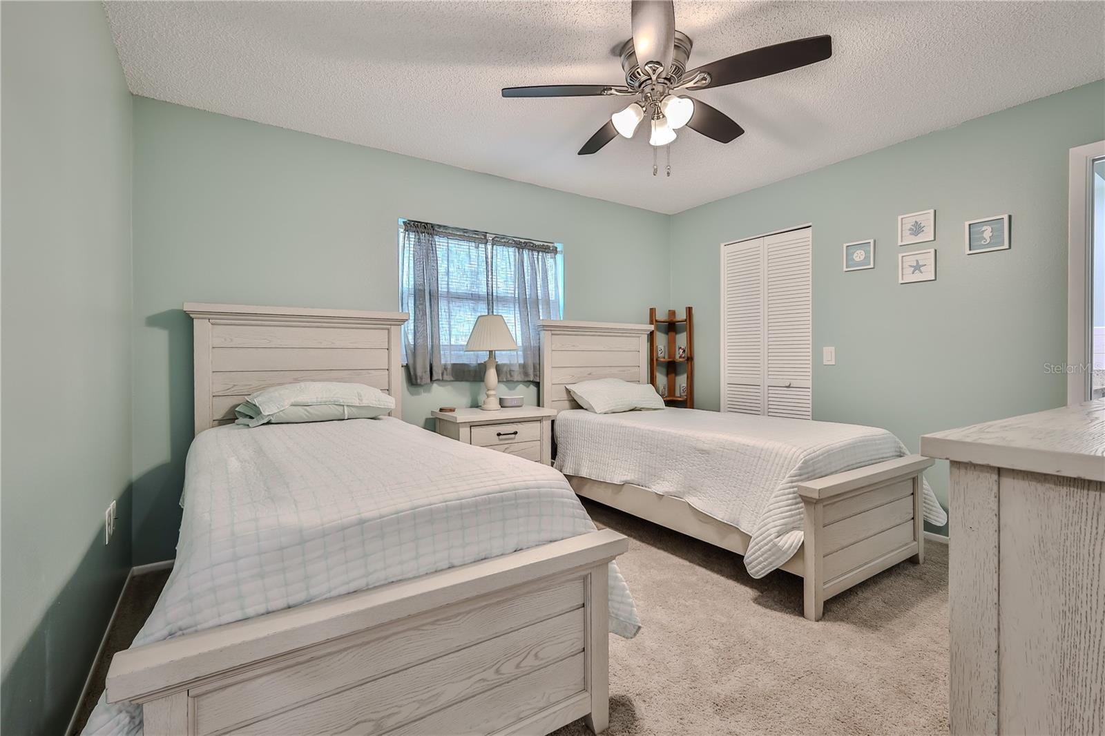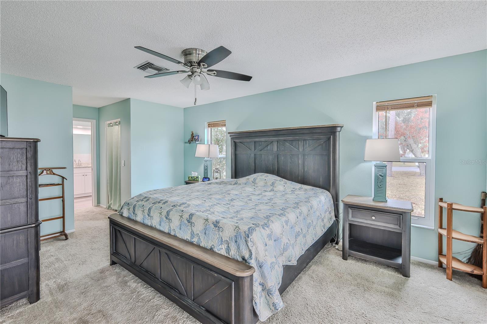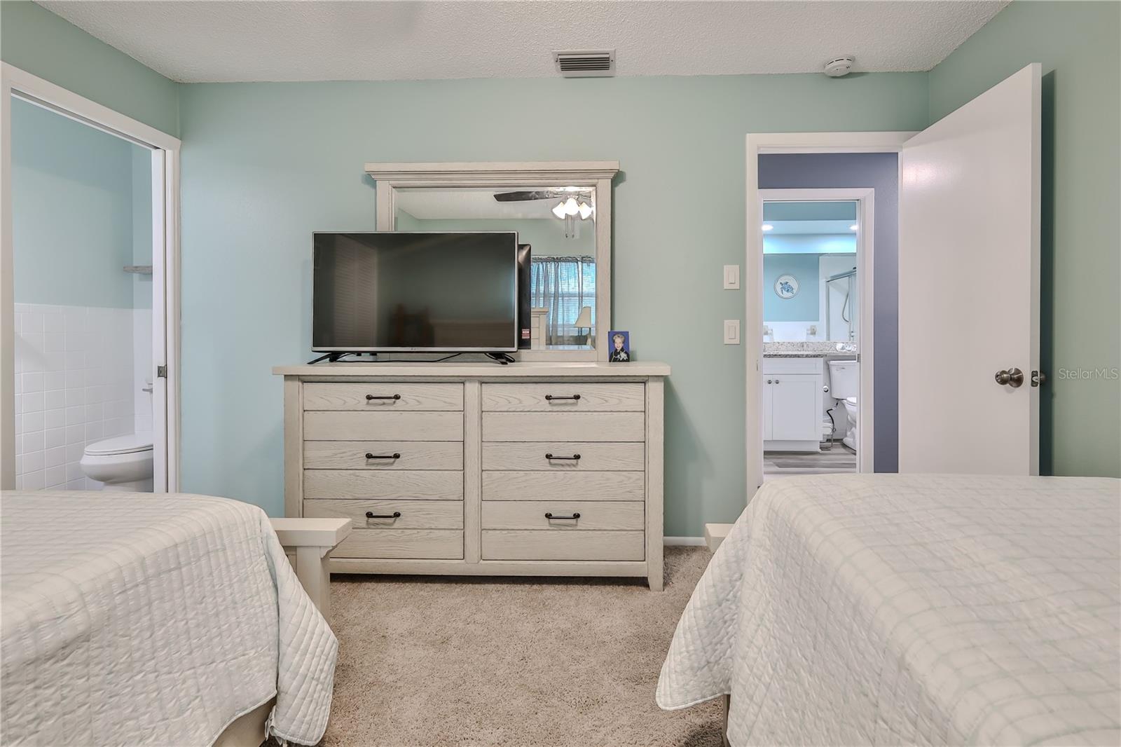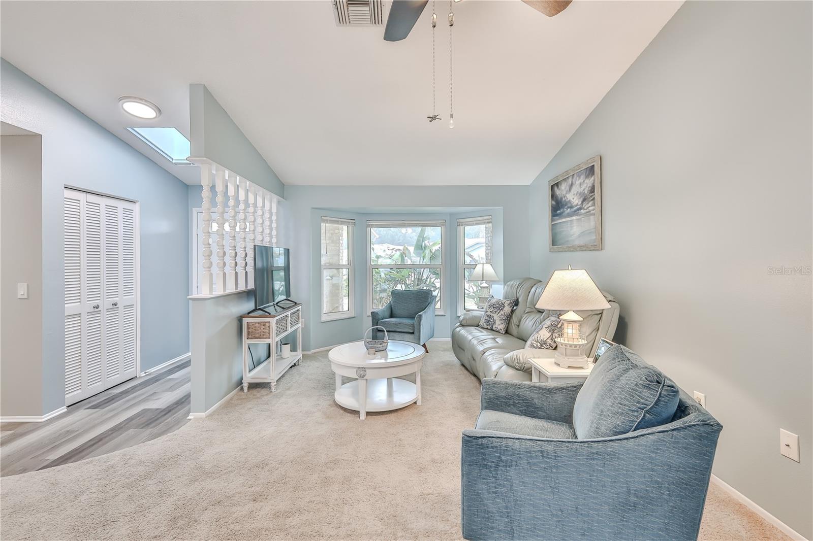 You'll love this beautifully decorated Victoria model, pool-home! Boasting 3 bedrooms, 2 full bathrooms, 2 half bathrooms and a 2-car garage, this home features a split floor plan with a mix of carpet and luxury vinyl plank flooring throughout. Step inside to a freshly painted interior featuring a formal living and dining area with vaulted ceilings, skylights, along with a cozy wood-burning fireplace. This space flows seamlessly into a versatile screened-in pool and lanai—perfect for relaxation or entertaining. The inviting family room offers tranquil pool views, creating a warm and welcoming atmosphere. The updated kitchen is light and bright, featuring soft-close wood cabinets, granite countertops, a new dishwasher, stainless steel appliances, and a sunny breakfast nook ideal for enjoying your morning coffee. The main bedroom ensuite is a private haven with two walk-in closets, sliding glass doors to the lanai, and serene pool views. The updated ensuite bathroom includes a walk-in shower and a linen closet. Guests will appreciate the generously sized second bedroom with an ensuite half bath, while bedroom 3 is conveniently located near the guest bathroom with a tub/shower combo. The outdoor oasis includes a screened-in heated pool with a jetted spa and waterfall feature, as well as a covered lanai with a kitchenette, sink, storage, and a half bath—perfect for entertaining. This home is move-in ready with a new roof (2024), new HVAC system (2024), and new hurricane-rated double-pane windows and sliding doors (2024). Additional highlights include new toilets, newer lighting fixtures, a well for the sprinkler system, water softener, and an inside utility room with cabinets and a sink. Located in Timber Pines, a guard-gated, 55+ deed-restricted community, you'll enjoy unparalleled amenities, including three 18-hole golf courses, a pitch-and-putt course, two pools, 12 pickleball courts, a clubhouse with a restaurant and bar, a performing arts center, and a state-of-the-art fitness center. Engage in over 100 clubs, from golf and Mah Jongg to woodworking and pottery. Explore this captivating home and envision your future in this vibrant, resort-style community. Your dream home awaits!