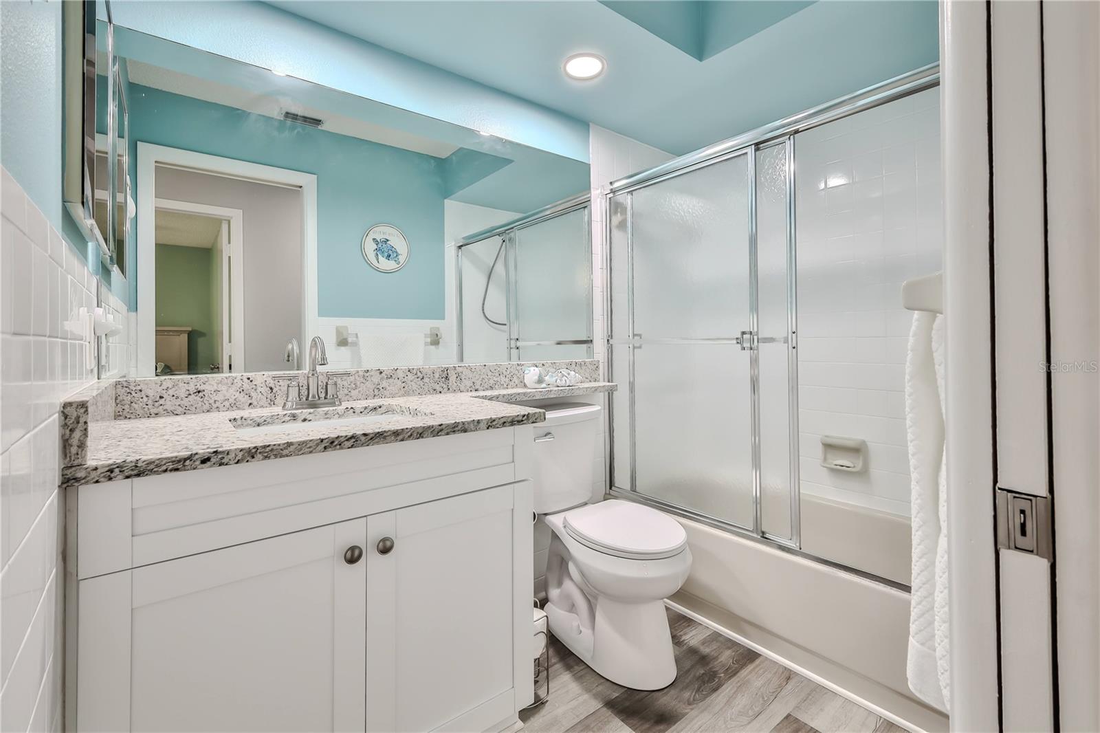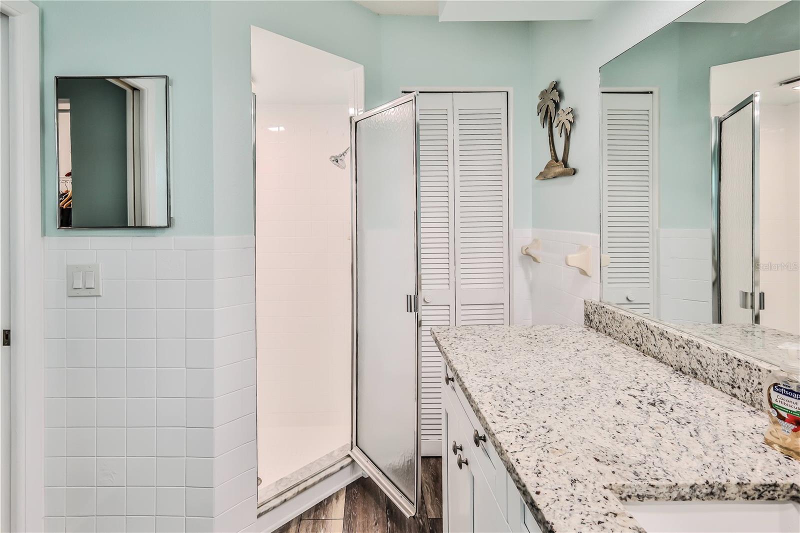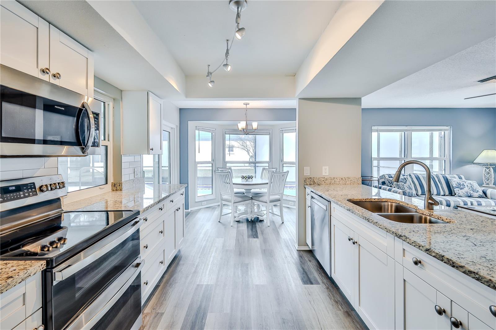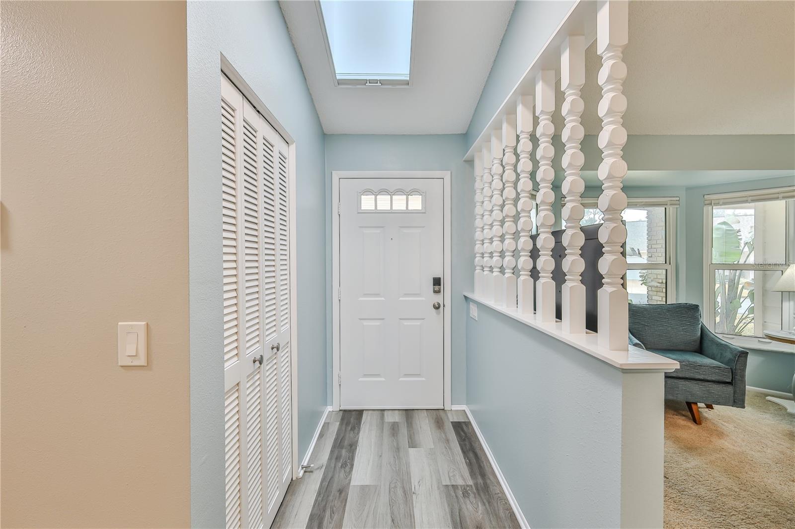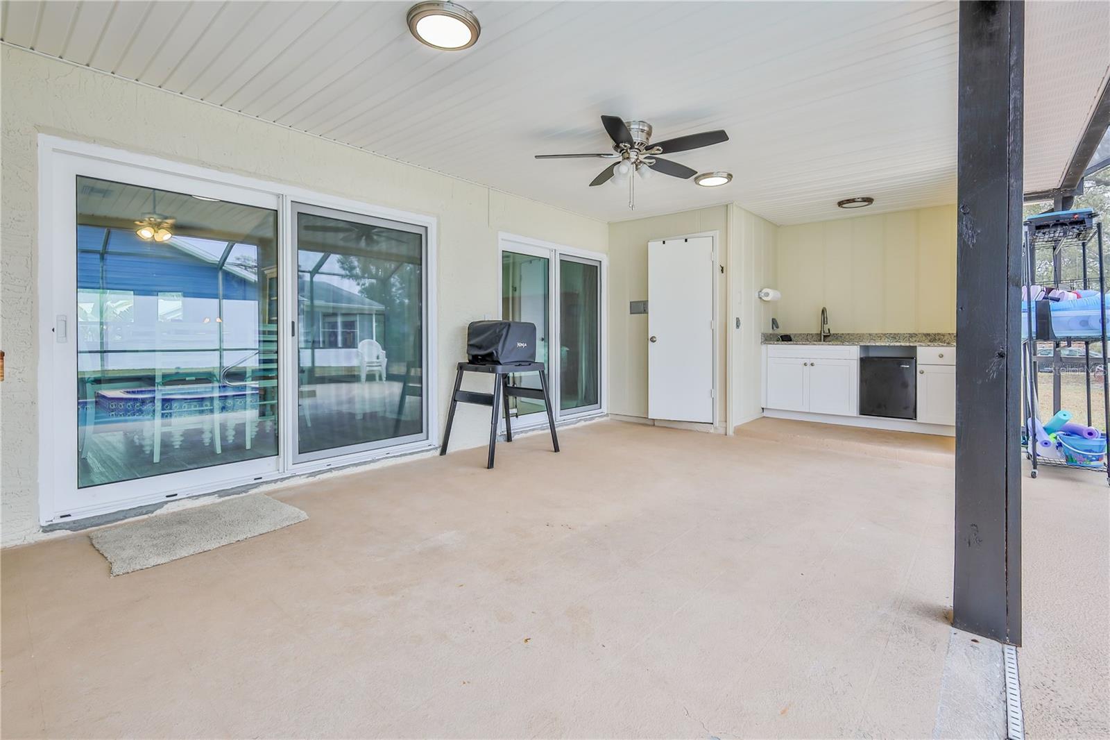 You'll love this beautifully decorated Victoria model, pool-home! Boasting 3 bedrooms, 2 full bathrooms, 2 half bathrooms and a 2-car garage, this home features a split floor plan with a mix of carpet and luxury vinyl plank flooring throughout. Step inside to a freshly painted interior featuring a formal living and dining area with vaulted ceilings, skylights, along with a cozy wood-burning fireplace. This space flows seamlessly into a versatile screened-in pool and lanai—perfect for relaxation or entertaining. The inviting family room offers tranquil pool views, creating a warm and welcoming atmosphere. The updated kitchen is light and bright, featuring soft-close wood cabinets, granite countertops, a new dishwasher, stainless steel appliances, and a sunny breakfast nook ideal for enjoying your morning coffee. The main bedroom ensuite is a private haven with two walk-in closets, sliding glass doors to the lanai, and serene pool views. The updated ensuite bathroom includes a walk-in shower and a linen closet. Guests will appreciate the generously sized second bedroom with an ensuite half bath, while bedroom 3 is conveniently located near the guest bathroom with a tub/shower combo. The outdoor oasis includes a screened-in heated pool with a jetted spa and waterfall feature, as well as a covered lanai with a kitchenette, sink, storage, and a half bath—perfect for entertaining. This home is move-in ready with a new roof (2024), new HVAC system (2024), and new hurricane-rated double-pane windows and sliding doors (2024). Additional highlights include new toilets, newer lighting fixtures, a well for the sprinkler system, water softener, and an inside utility room with cabinets and a sink. Located in Timber Pines, a guard-gated, 55+ deed-restricted community, you'll enjoy unparalleled amenities, including three 18-hole golf courses, a pitch-and-putt course, two pools, 12 pickleball courts, a clubhouse with a restaurant and bar, a performing arts center, and a state-of-the-art fitness center. Engage in over 100 clubs, from golf and Mah Jongg to woodworking and pottery. Explore this captivating home and envision your future in this vibrant, resort-style community. Your dream home awaits!