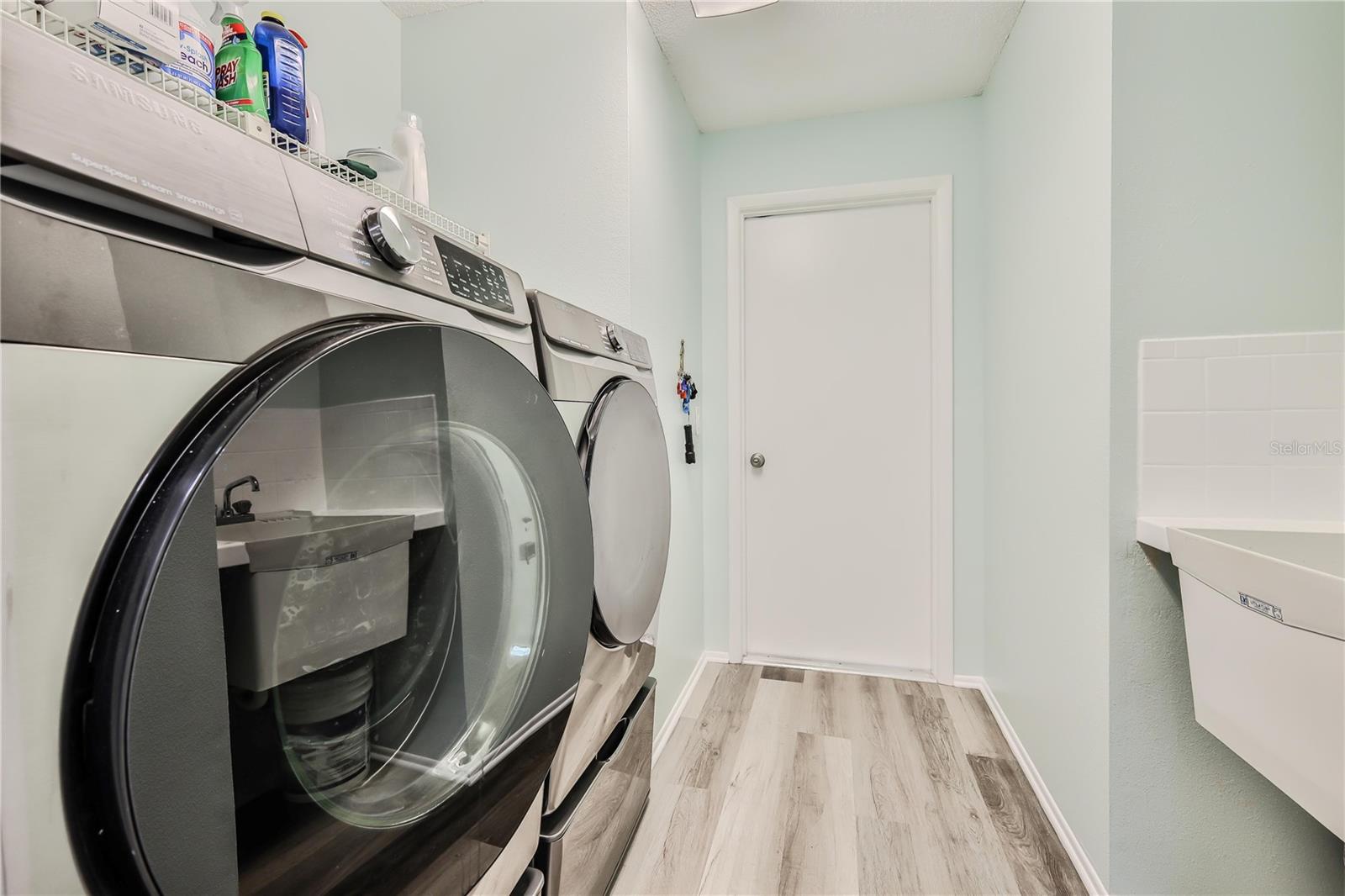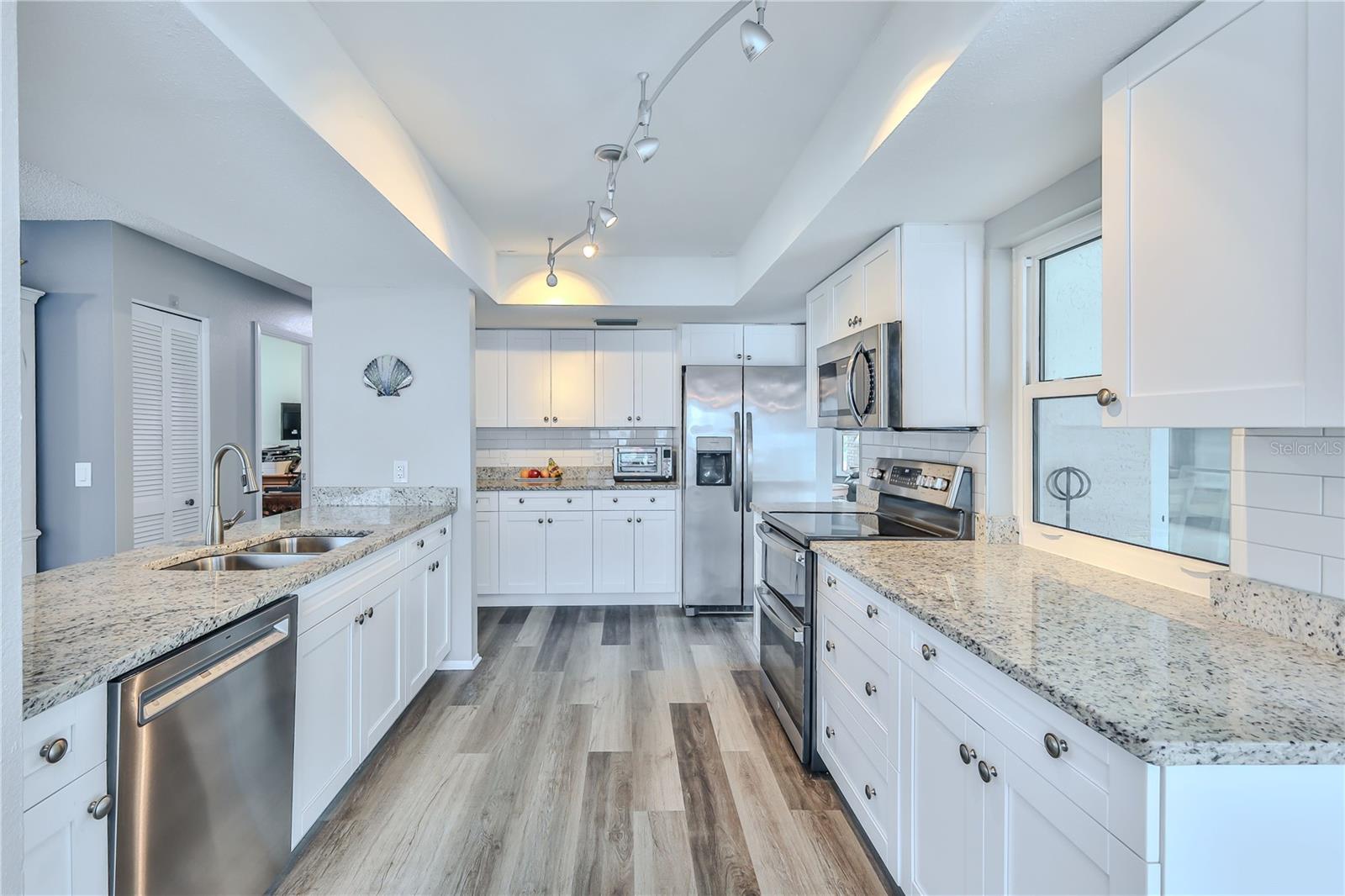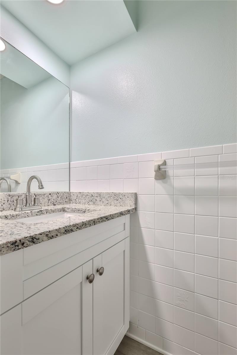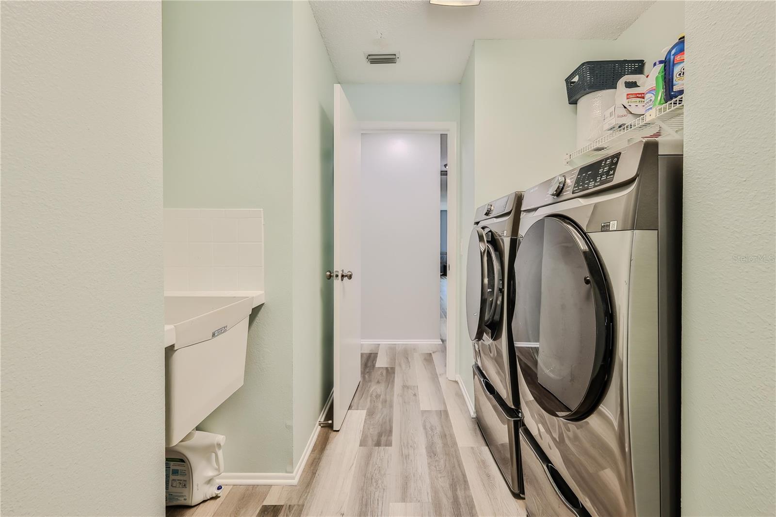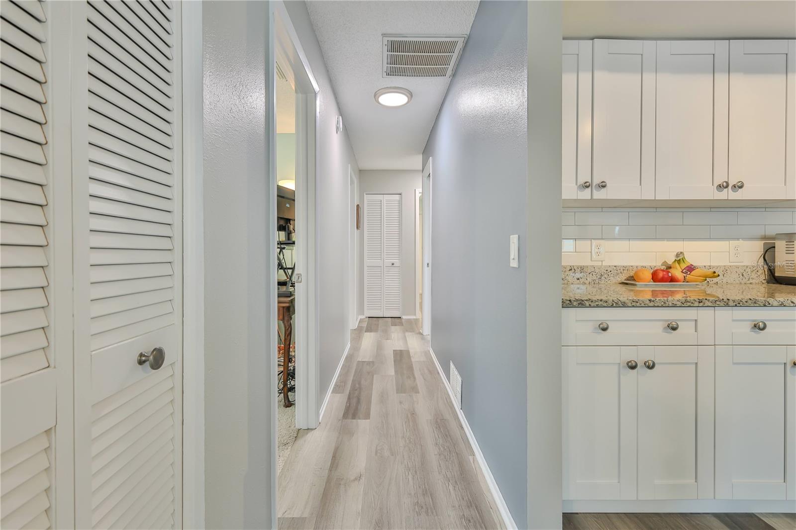 You'll love this beautifully decorated Victoria model, pool-home! Boasting 3 bedrooms, 2 full bathrooms, 2 half bathrooms and a 2-car garage, this home features a split floor plan with a mix of carpet and luxury vinyl plank flooring throughout. Step inside to a freshly painted interior featuring a formal living and dining area with vaulted ceilings, skylights, along with a cozy wood-burning fireplace. This space flows seamlessly into a versatile screened-in pool and lanai—perfect for relaxation or entertaining. The inviting family room offers tranquil pool views, creating a warm and welcoming atmosphere. The updated kitchen is light and bright, featuring soft-close wood cabinets, granite countertops, a new dishwasher, stainless steel appliances, and a sunny breakfast nook ideal for enjoying your morning coffee. The main bedroom ensuite is a private haven with two walk-in closets, sliding glass doors to the lanai, and serene pool views. The updated ensuite bathroom includes a walk-in shower and a linen closet. Guests will appreciate the generously sized second bedroom with an ensuite half bath, while bedroom 3 is conveniently located near the guest bathroom with a tub/shower combo. The outdoor oasis includes a screened-in heated pool with a jetted spa and waterfall feature, as well as a covered lanai with a kitchenette, sink, storage, and a half bath—perfect for entertaining. This home is move-in ready with a new roof (2024), new HVAC system (2024), and new hurricane-rated double-pane windows and sliding doors (2024). Additional highlights include new toilets, newer lighting fixtures, a well for the sprinkler system, water softener, and an inside utility room with cabinets and a sink. Located in Timber Pines, a guard-gated, 55+ deed-restricted community, you'll enjoy unparalleled amenities, including three 18-hole golf courses, a pitch-and-putt course, two pools, 12 pickleball courts, a clubhouse with a restaurant and bar, a performing arts center, and a state-of-the-art fitness center. Engage in over 100 clubs, from golf and Mah Jongg to woodworking and pottery. Explore this captivating home and envision your future in this vibrant, resort-style community. Your dream home awaits!