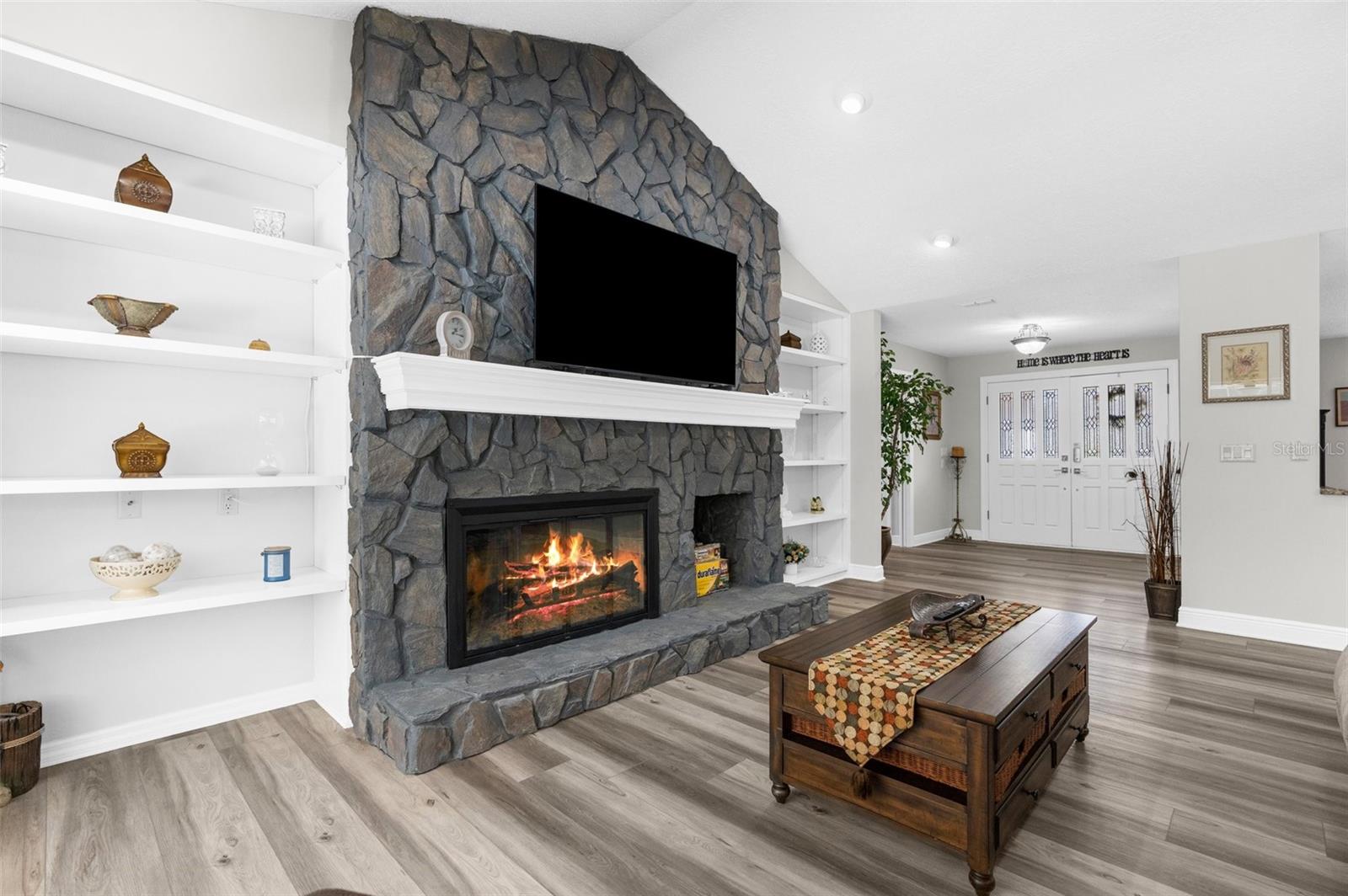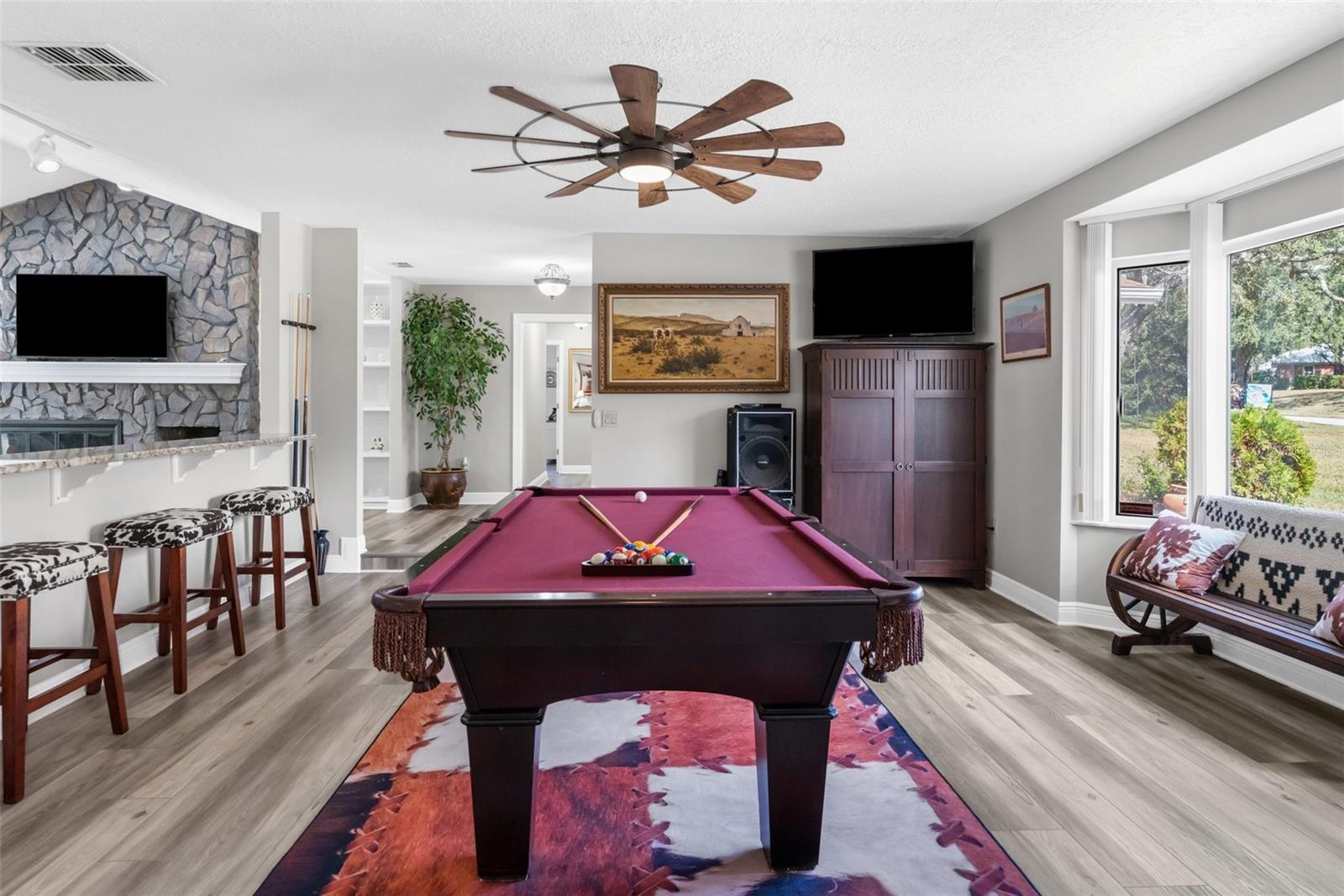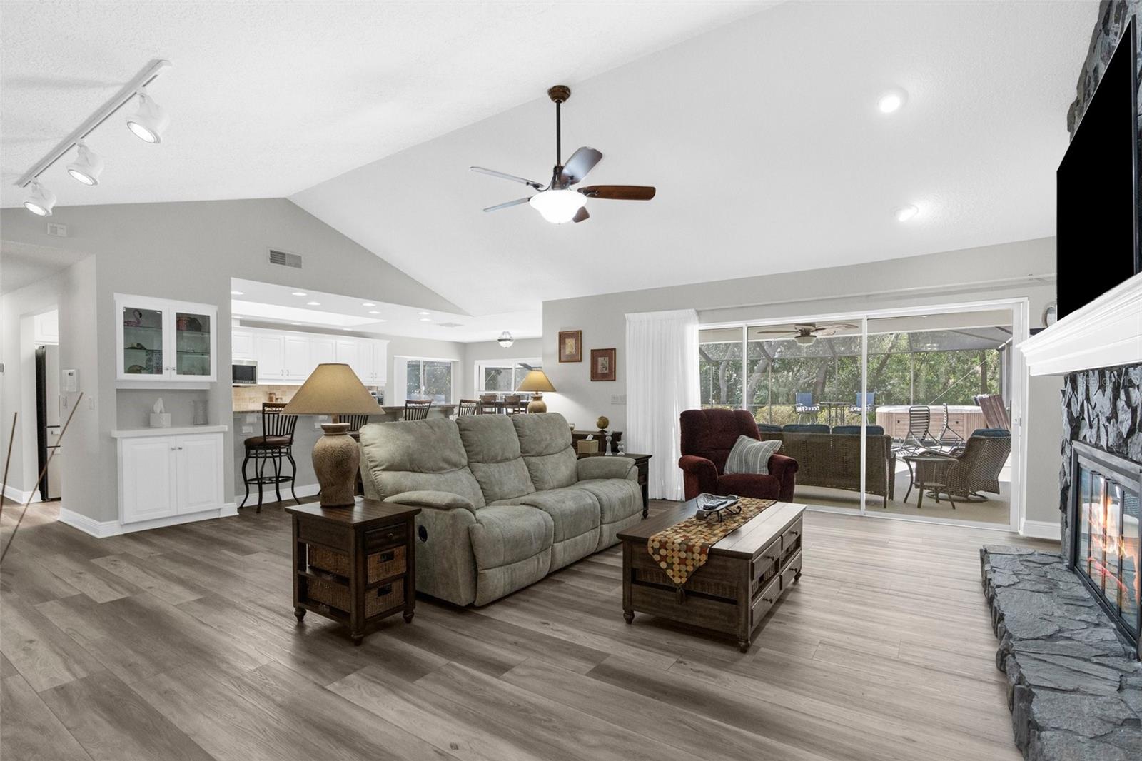 Priced Just REDUCED!! This one needs NO WORK and HAS SO MUCH TO OFFER!! GORGEOUS!! REMODELED!! MOVE-IN READY!! 5 bedrooms + 4 bathrooms + 3 car oversized garage + private pool stone fireplace + MOTHER-IN-LAW SUITE + double private covered lanais overlooking the pool + PRIVATE tree-lined backyard with no rear neighbors to look at or to look at you + oversized driveway for extra parking (park 9 cars on the driveway!) + NO FLOOD + nestled on over a 1/2 acre in the HUGHLY-DESIRED gated community of Lake in the Woods with 24/7 Guard at the gate + fishing lake + tennis courts + pickle-ball court + playground + dog park + lake-side and gazebo + sidewalks for taking long walks + underground power/utilities to preserve the beautiful trees!! Open floor plan with high ceilings and large windows and glass sliders overlooking the pool make this home feel light, bright, spacious and cheery!! The remodeled kitchen offers granite countertops with large breakfast bar for extra seating and is open to the family room, dinette...all overlooking the pool! The formal living room and dining room are being used as a bar and game room for entertaining right now, but can be used anyway you wish...it adds a lot of extra space for entertaining your family and friends! The primary bedroom and bathroom are on the opposite side of the house as the mother-in-law suite which offers an OVERSIZED bedroom/living room combo space and it's own private bathroom and private lanai. RECENT IMPROVEMENTS to the home and property: 2 NEW AC UNITS (2024) with 100% parts and labor warranty for 10 years + New Exterior Paint + New Interior Paint + New luxury vinyl plank throughout + New stainless steel appliances + under-sink water filtration system + Pool deck resealed and painted with Pool Deck Cool Seal + New hot water heater + New designer lighting throughout + garage floor custom painted and sealed + pavers cleaned, sanded, and resealed + pool resurfaced + pool enclosure re-screened. Irrigation Well. New Roof 2016. Foundation grouted 2003. Fully insurable and financeable. All Engineer's Reports available. Located close to all amenities...grocery shopping, restaurants, shopping, movies, hospital! Minutes from sunsets at Pine Island, kayaking the crystal clear river and swimming with the manatees at Rogers Park (freshwater beach on the river), Buccaneer Bay Water Park on the main spring with Weeki Wachee State Park and famous live Mermaid shows! 15 minutes to the Suncoast Parkway for direct, fast, and easy access to Tampa International Airport and Tampa for work and play! You will love everything the area has to offer!! Call now to come see this home today!!