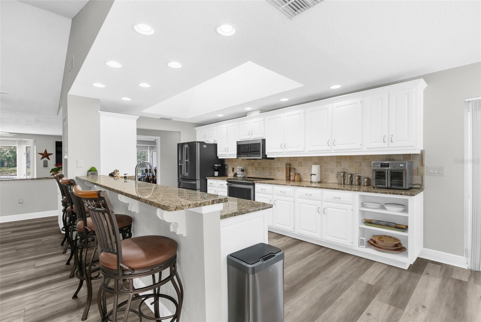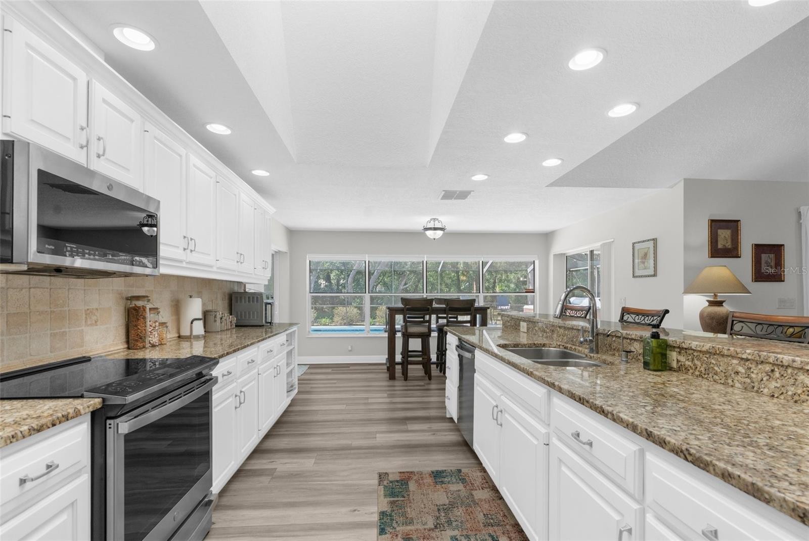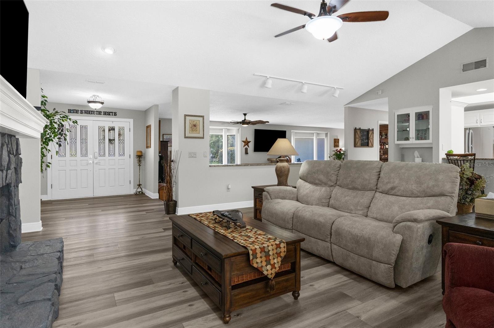 Priced Just REDUCED!! This one needs NO WORK and HAS SO MUCH TO OFFER!! GORGEOUS!! REMODELED!! MOVE-IN READY!! 5 bedrooms + 4 bathrooms + 3 car oversized garage + private pool stone fireplace + MOTHER-IN-LAW SUITE + double private covered lanais overlooking the pool + PRIVATE tree-lined backyard with no rear neighbors to look at or to look at you + oversized driveway for extra parking (park 9 cars on the driveway!) + NO FLOOD + nestled on over a 1/2 acre in the HUGHLY-DESIRED gated community of Lake in the Woods with 24/7 Guard at the gate + fishing lake + tennis courts + pickle-ball court + playground + dog park + lake-side and gazebo + sidewalks for taking long walks + underground power/utilities to preserve the beautiful trees!! Open floor plan with high ceilings and large windows and glass sliders overlooking the pool make this home feel light, bright, spacious and cheery!! The remodeled kitchen offers granite countertops with large breakfast bar for extra seating and is open to the family room, dinette...all overlooking the pool! The formal living room and dining room are being used as a bar and game room for entertaining right now, but can be used anyway you wish...it adds a lot of extra space for entertaining your family and friends! The primary bedroom and bathroom are on the opposite side of the house as the mother-in-law suite which offers an OVERSIZED bedroom/living room combo space and it's own private bathroom and private lanai. RECENT IMPROVEMENTS to the home and property: 2 NEW AC UNITS (2024) with 100% parts and labor warranty for 10 years + New Exterior Paint + New Interior Paint + New luxury vinyl plank throughout + New stainless steel appliances + under-sink water filtration system + Pool deck resealed and painted with Pool Deck Cool Seal + New hot water heater + New designer lighting throughout + garage floor custom painted and sealed + pavers cleaned, sanded, and resealed + pool resurfaced + pool enclosure re-screened. Irrigation Well. New Roof 2016. Foundation grouted 2003. Fully insurable and financeable. All Engineer's Reports available. Located close to all amenities...grocery shopping, restaurants, shopping, movies, hospital! Minutes from sunsets at Pine Island, kayaking the crystal clear river and swimming with the manatees at Rogers Park (freshwater beach on the river), Buccaneer Bay Water Park on the main spring with Weeki Wachee State Park and famous live Mermaid shows! 15 minutes to the Suncoast Parkway for direct, fast, and easy access to Tampa International Airport and Tampa for work and play! You will love everything the area has to offer!! Call now to come see this home today!!