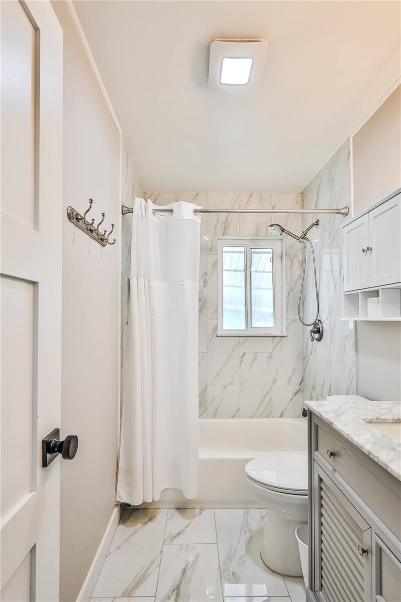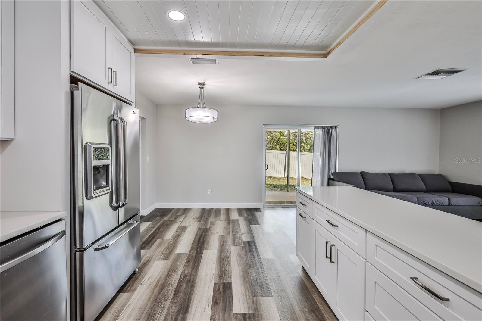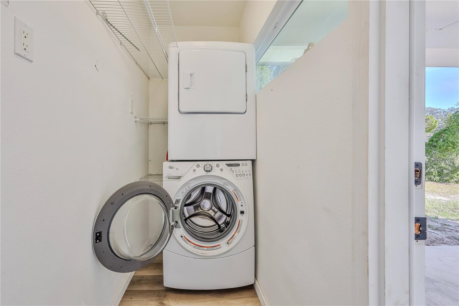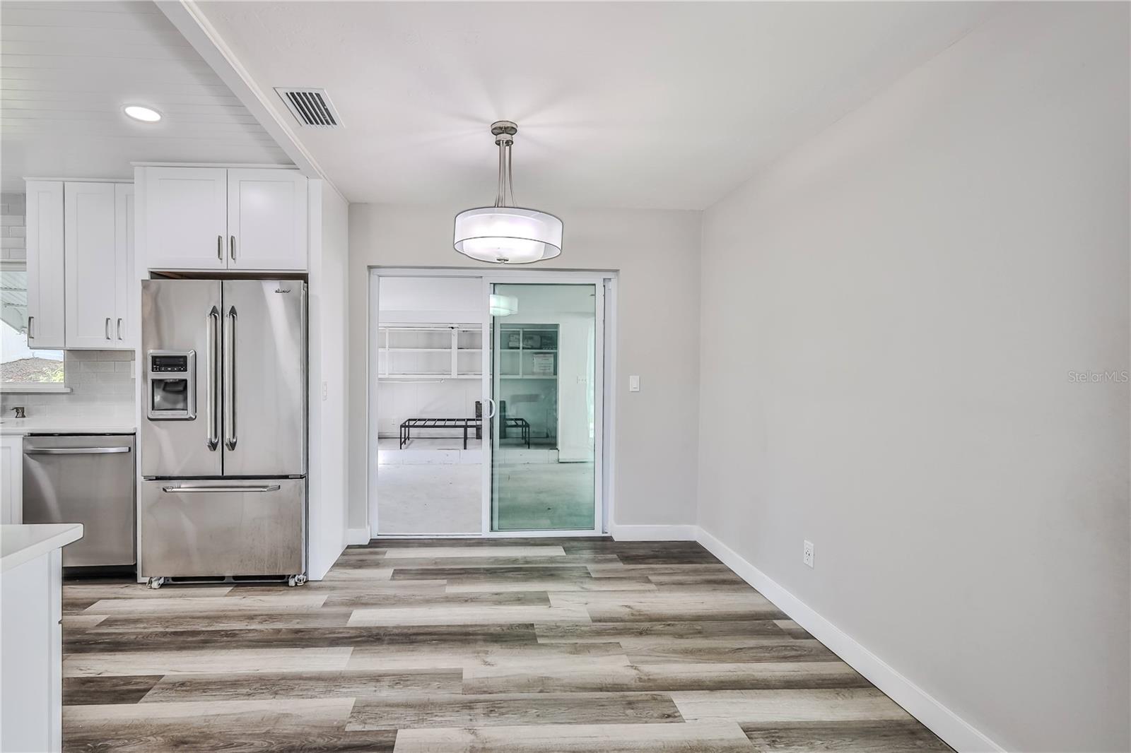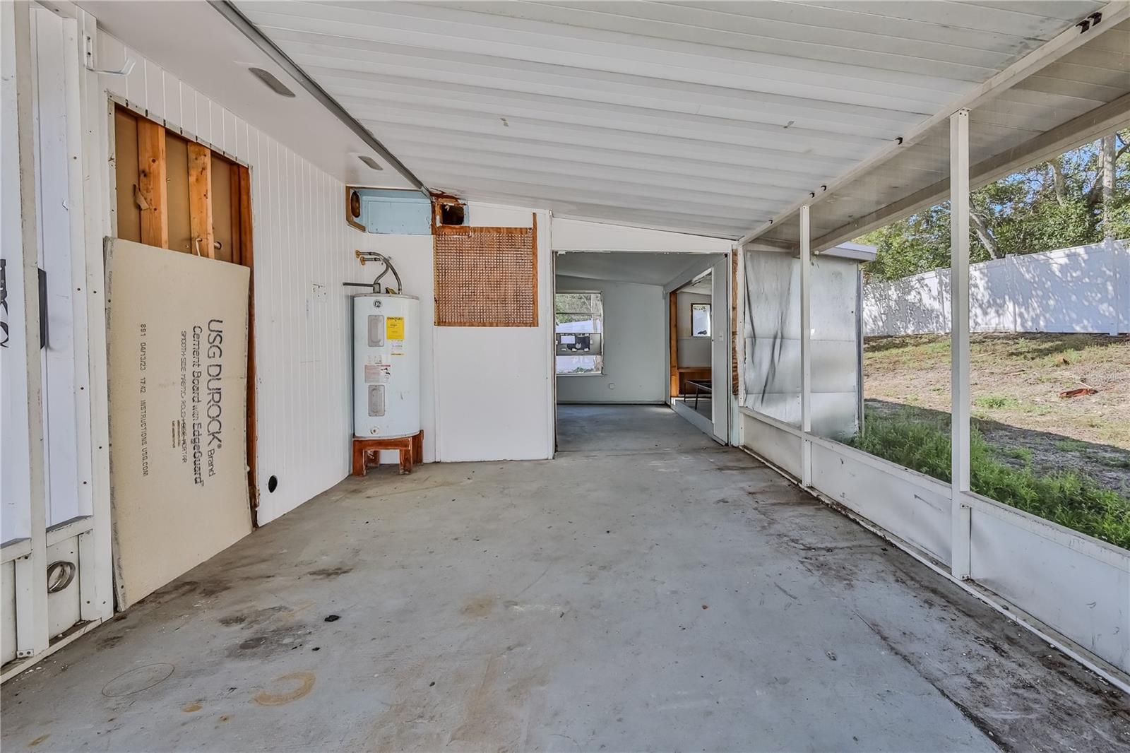 Step into this beautifully updated 2-bedroom, 1-bathroom home with a 1-car carport, where modern upgrades meet timeless comfort. Inside, you'll find new luxury vinyl plank flooring, designer lighting, and a completely renovated chef's kitchen featuring wood cabinets with soft-close drawers, quartz countertops, and stainless steel appliances. The bathroom has been tastefully updated with new vanity, toilet, tile, and flooring. The new front door and sliding glass doors enhance both style and energy efficiency. Enjoy extra living space in the enclosed porch, ready for your personal touch, leading to a screened and covered porch—ideal for relaxing or entertaining. Additional highlights include a 2023 electrical upgrade, a 2014 roof, and a 2011 HVAC system. A washer and dryer are conveniently located in the carport storage room. Vinyl privacy fence in rear yard. No HOA. Make an appointment today to see this home in person!