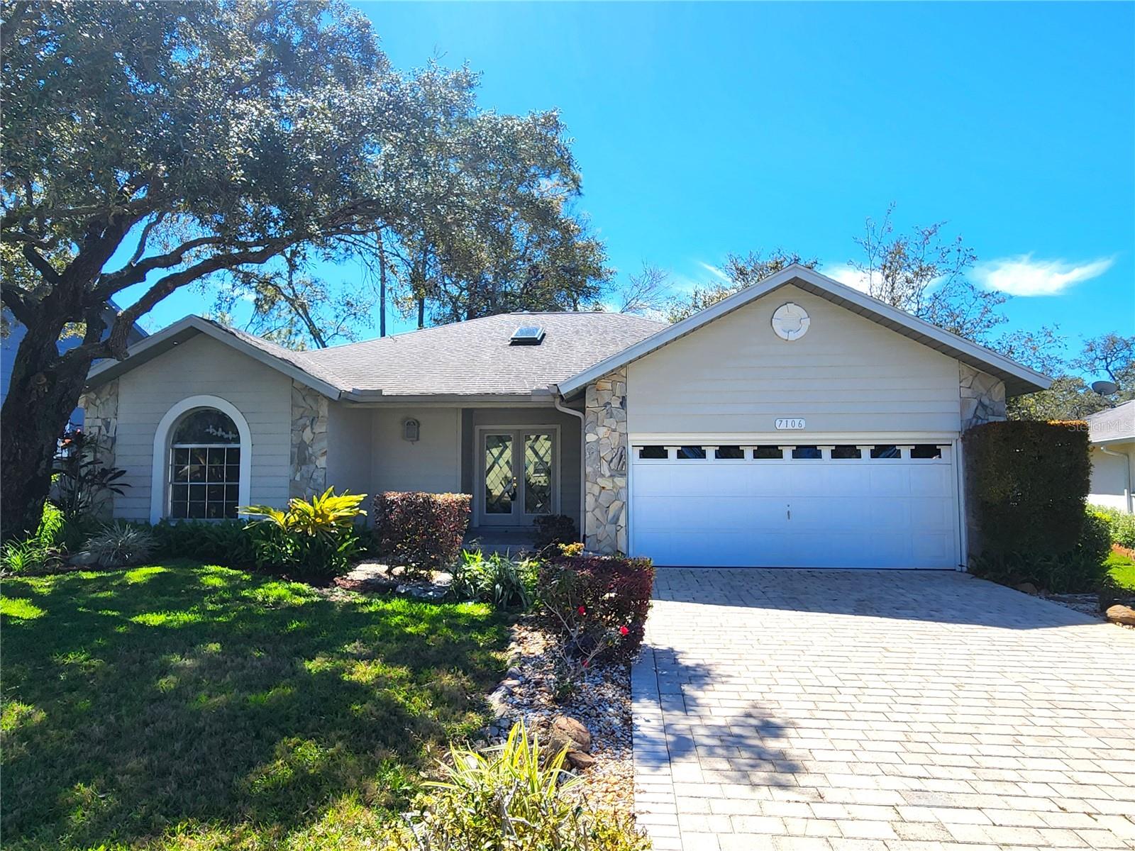 Timber Pines 2 Bedroom Home With 2 Full Bathrooms And A Oversize 2 Car Garage On The Golf Course- Enter The Home From The Front Covered Porch- Dual Lead Glass Doors To The Tile Foyer With A Skylight- Great Room With Crown Molding- Formal Dining Room And A Tiled Eat In Kitchen With A Breakfast Bar, Dining Nook, Dual Sinks, Granite Counter Tops And All Soft Close Drawers And Cabinets- The Main Bedroom Has 2 Walk In Closets, Dual Sinks, Granite Counter Top, Soft Close Cabinet And A Tiled Shower- The 2nd. Bedroom Has A Walk In Closet Also, A Stained Glass Insert Transom Window Plus A Pocket Door For Privacy To The Guest Bathroom- The Sunken Lanai Adds Extra Living Area To The Home With Sliding Glass Doors With Great Views Of The Golf Course- There Is An Open Patio In The Back Yard With Brick Pavers- The Driveway Also Has Brick Pavers- Extras Include Ceiling Fans, Interior Paneled Doors, Irrigation System, Hall Closet, 26x20 Garage, Open Floor Plan- Timber Pines, a 55+ Gated Community, With 4 Golf Courses, Country Club, Remodeled Restaurant And Bar With Multiple TV Screens, 2 Pools, Fitness Center, Tennis And Pickle Ball Courts, Bocce Ball, Billiards Room And More Than 100 Different Clubs. Spectrum Cable, 2 boxes and High-Speed Internet Are Also Included In the HOA. Call Today For A Showing. Repaired Sinkhole
