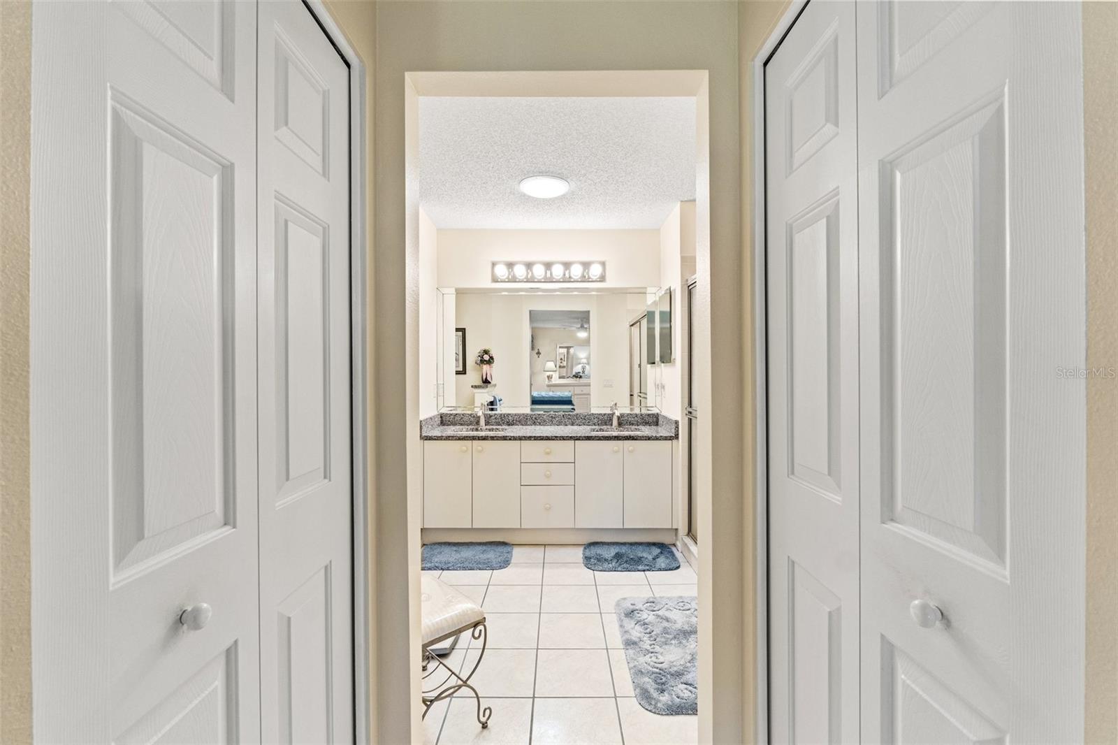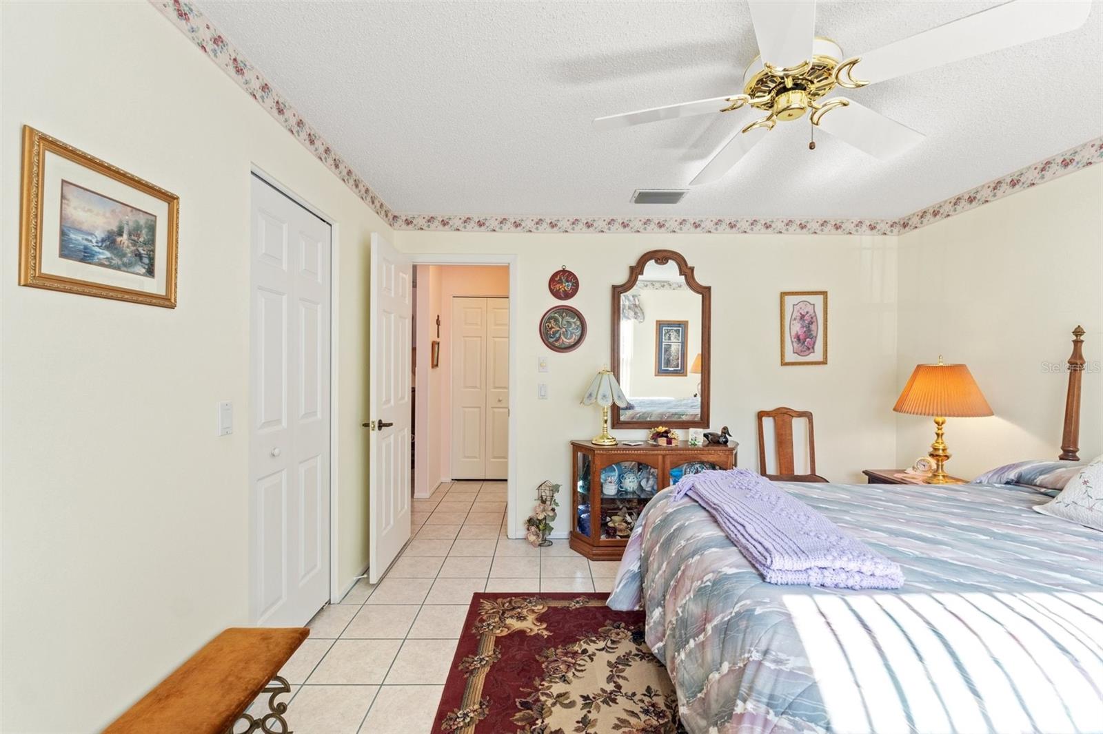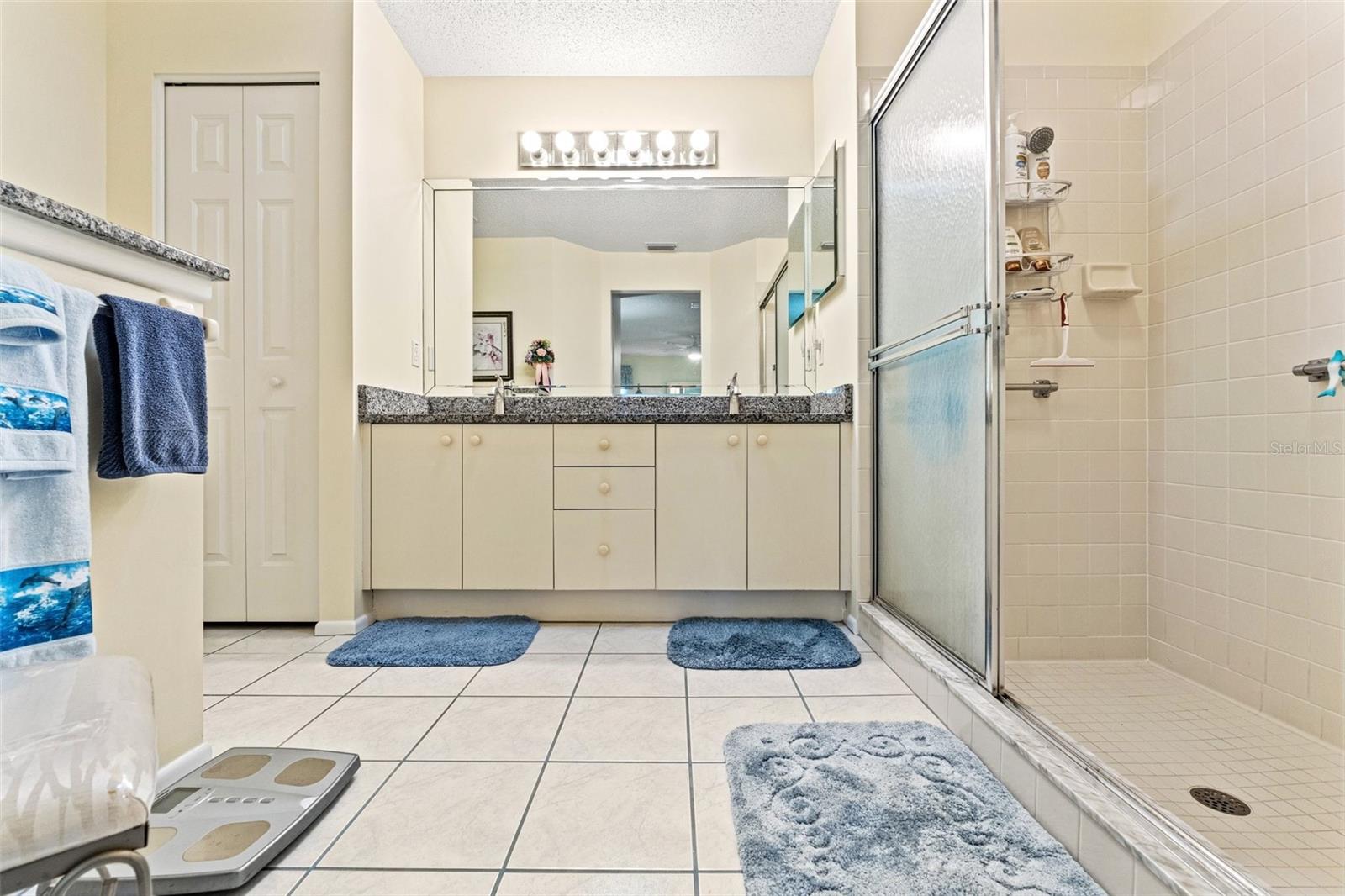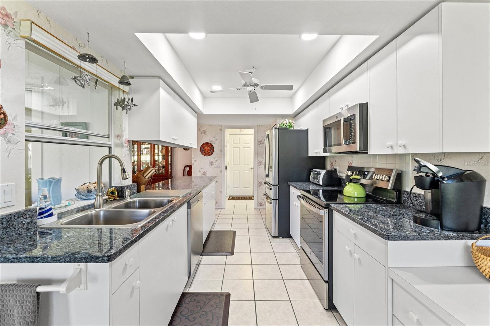 Amazing Villa in the award-winning Timber Pines community! This expanded Oakmont 2/2/2 model features a double-door entry, vaulted ceilings, and a light, bright open floor plan. Tiled flooring extends throughout the home, except for the carpeted lanai. A solar tube provides additional natural light. The updated kitchen boasts quartz countertops, ample cabinetry, a kitchen nook, a stainless steel sink, and appliances. Range and Microwave 2023. A pantry provides extra storage, and the inside laundry room includes a quartz countertop and additional cabinetry, leading to the garage. In the garage you will notice the home is equipped with an HVAC system featuring a whole-house filter (maintained yearly by Krueger), a water softener, a hurricane-reinforced garage door, a painted garage floor, and pull-down stairs for attic access. The guest bedroom includes an enlarged closet with a power outlet and is conveniently located near the guest bath, which features a granite vanity, a comfort-height commode, and a tub/shower combo. The spacious lanai is under heat and air, with new windows and shades, offering a comfortable space to relax year-round. An outdoor patio provides the perfect spot for grilling, entertaining, or unwinding. Gutter guards at the rear of the home and a side apron around the villa add termite protection. The primary bedroom offers additional space ideal for a desk or hobby area, along with two walk-in closets, a solar tube for natural light, and an en-suite bath. The bathroom features a step-in shower, a granite-top vanity with dual sinks and upgraded faucets, a comfort-height commode, and a linen closet. This is not a pet friendly village. Termite protection is included in the $122 monthly maintenance fee. Washer and Dryer do not convey This beautifully maintained villa is ready to welcome you home! Make this YOUR HOME & ENJOY THE GREAT LIFE TIMBER PINES has to offer, a gated, guarded, 55+ Active Adult Community. Timber Pines boasts 4 PRISTINE Golf Courses, Award winning pickle ball center, New state of the art Fitness/Wellness Center, Club House and Restaurant, Performing Arts Center, Residents Activity Center, 2 Geothermal Pools, Tennis, Billiards, Bocce, Wood Shop, Arts and Crafts Center, PAWS PARK for your pets. SO MANY ACTIVITIES with Over 100 Clubs. Spectrum Cable TV, 2 Boxes, and highest speed internet included in HOA fee. New buyer pays $2640 Capital Contribution to TPCA at closing. CALL TODAY!!!
