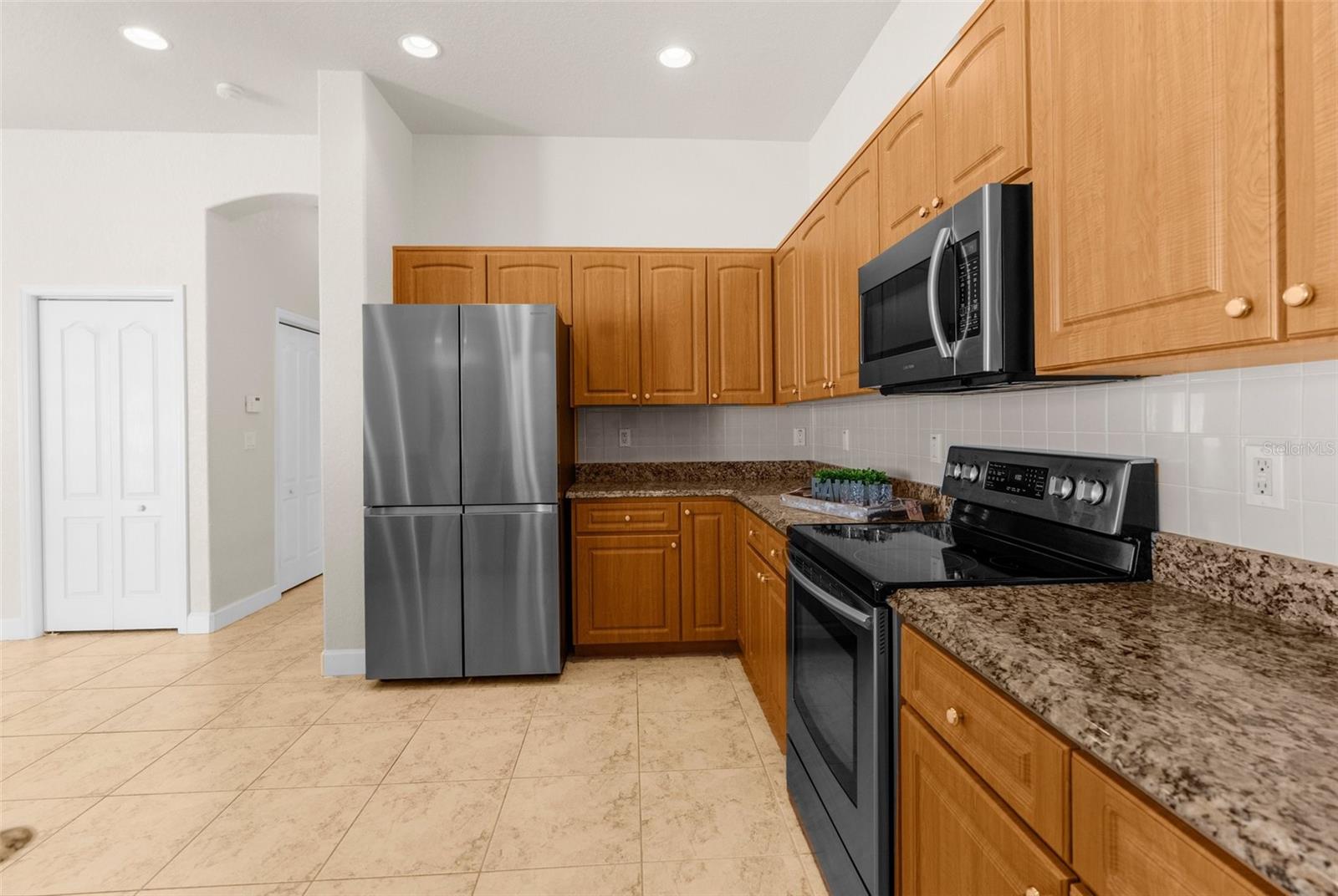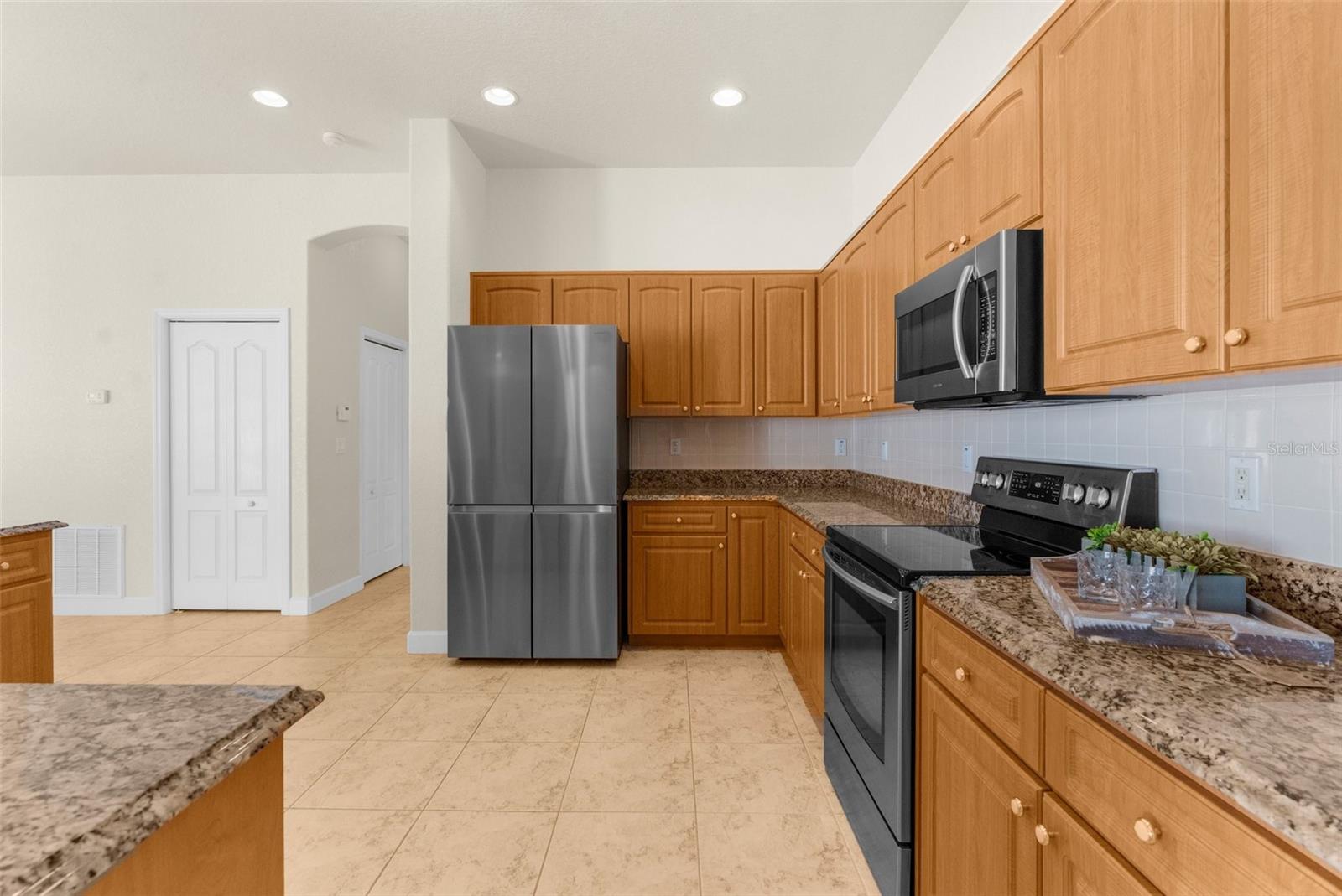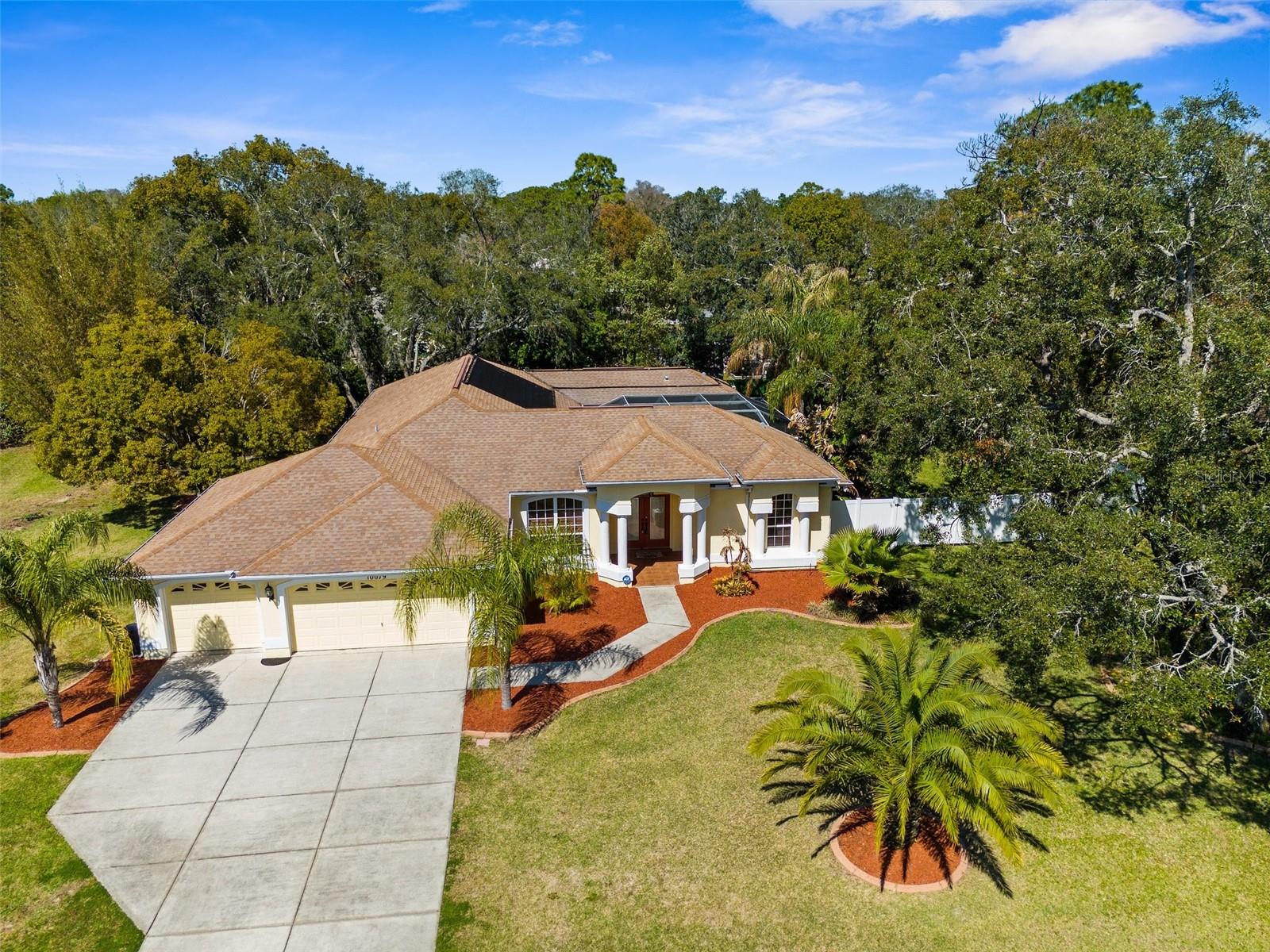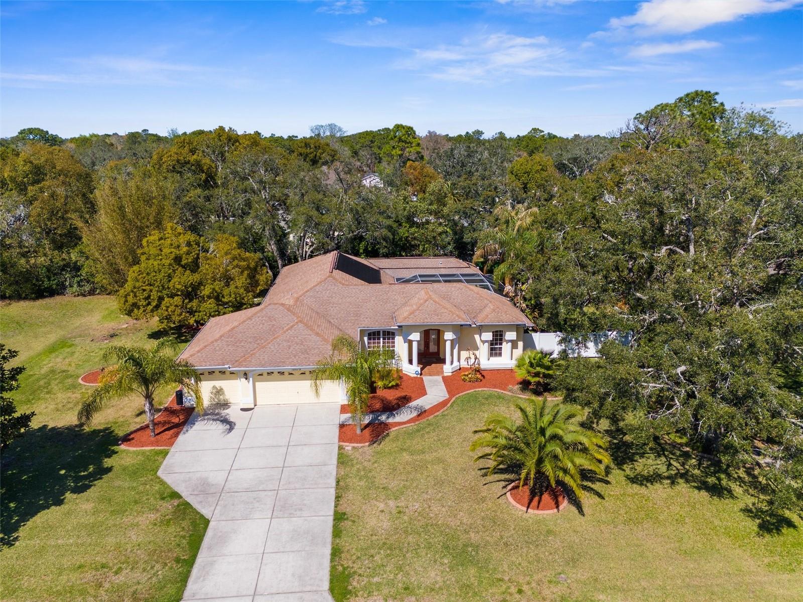 GORGEOUS, MOVE-IN READY, LARGE, 3/3/3 COURTYARD POOL HOME was built by ARTISTIC HOMES...nestled on a 1/2 acre in the highly sought-after neighborhood of Orchard Park with larger lots and custom homes!! Home offers a Double Master Suite or Mother-in-law Suite with separate entrance to the pool/courtyard!! Home will get a NEW ROOF before closing; buyer can pick out the color of the shingles! Large home with 2,357 sq feet of living space; 3,387 total sq feet!! 3 generous-sized bedrooms + office/den with modern barn-doors (can use as 4th bedroom or formal dining room) + 3 full bathrooms (2 with pool access) + 3 car oversized and extra deep garage for your large trucks or boat!! Extra long and wide driveway for extra parking, too!! Open floor plan with high tray ceiling and large glass sliders to the pool let in so much natural light the home feels incredibly spacious, light, bright, and cheery!! GREAT FLOOR PLAN for entertaining your family and friends!! Kitchen is upgraded with granite countertops, large breakfast bar for extra seating, stainless steel appliances and lots of cabinet space for storage! Kitchen overlooks your private pool, great room, breakfast nook, and lanai...beautiful floor plan by Artistic Homes!! Enjoy your pool without any neighbors looking at you!! The master has dual walk-in closets, ensuite bathroom with dual sinks, granite countertops, large soaking tub, separate walk-in shower and private toilet room...with access to the pool! The other master suite (mother-in-law suite) is off to itself with dual closets, ensuite bathroom with walk-in shower and access to the pool! The large 3rd bedroom also has its own bathroom with tub/shower combo! Large inside laundry room! Beautiful palm trees and grand entrance welcome your guests! Walk into the very large foyer with glass sliders to the pool for an impressive entrance into the home!! NO FLOOD!! NO CDD!! Low HOA of only $225/year to keep your neighborhood nice!! Located close to restaurants, shopping, movies, coffee shops. 10 minutes to the Suncoast Parkway for easy access to Tampa for work and play. Tampa General Hospital Spring Hill is 7-8 minutes away! 15 minutes to kayaking the clear Weeki Wachee River, swimming with the manatees, sunsets at Pine Island, fishing and boating on the Gulf of America!! Come see this spectacular home! NEW ROOF 2025 before closing. AC 2013. Home is in great shape!!