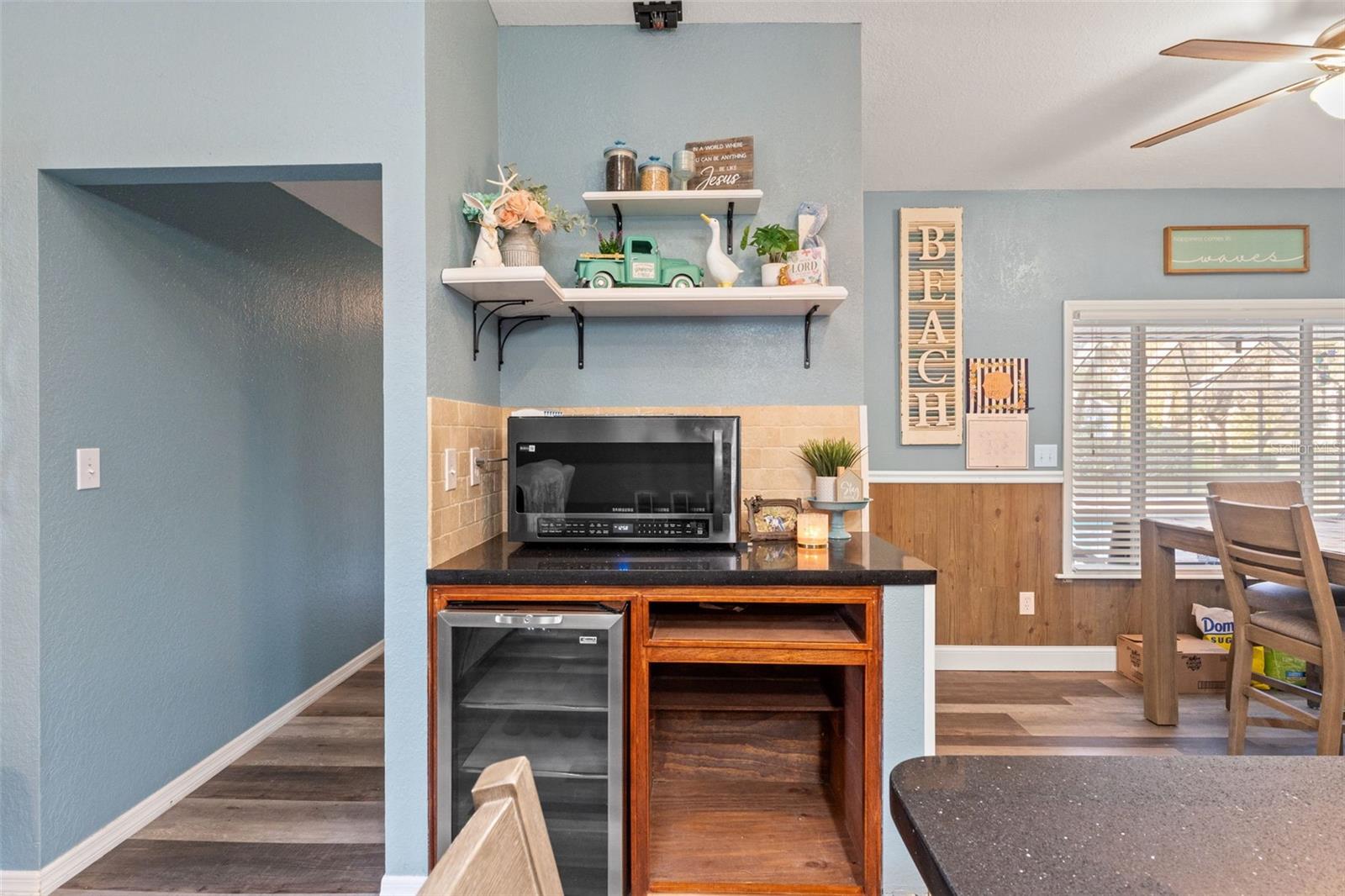 PRICED BELOW RECENT APPRAISAL! Welcome home to this exceptional home in the sought after Lake In The Woods neighborhood! Pulling up to the home, you're greeted by a beautiful landscape and stunning curb appeal to make you feel right at home! This home features 4 bedrooms, 2 bathrooms, PLUS AN ADDITIONAL OFFICE! As you enter you'll notice new pavers (4/25) and you'll be greeted by double doors to lead you into the home, you'll immediately notice the custom made shiplap wall that ties the room together and gives you a warm welcome! Working from home is a delight, with large windows and a dedicated office, you'll have a great view of your front yard and so much natural light! The kitchen is absolutely remarkable, featuring new (2025) stainless steel appliances, with plenty of counter space and a gorgeous tile backsplash, with even MORE natural light, featuring overhead skylights to help open up the room. Enjoy dinner with even more large windows and a stunning view of your spacious pool, but we'll get to that later! Immediately off your kitchen, you'll notice the large and welcoming living room, featuring vaulted ceilings and a wood burning fireplace, this is the perfect space for movie nights or entertaining guests. This home has exceptional flow and is convenient for all lifestyles, whether you're having a small family gathering or hosting for large parties, this one can do it all! Right off your living room, you'll notice the 3 spare bedrooms, one of which leading right to the pool, and all generously sized, sharing the recently remodeled guest bathroom! Let's get to the best part, the pool! Your pool deck and lanai features pavers all throughout the outside, as well as a large seating area, perfect for nighttime hangouts, and look at the SIZE of the pool! So spacious and welcoming, you'll never want to get out! Right outside of your lanai, you'll see the beautiful custom made deck and a large pergola, with a custom paver walkway to your campfire, perfect for summer nights with friends and family! This home has so many features, not to mention being on over a half acre on a corner lot, and a short drive to shops, Weeki Wachee Springs, and dining! Call today to make this one yours before it's gone!