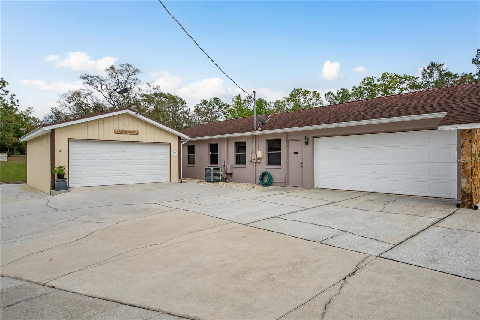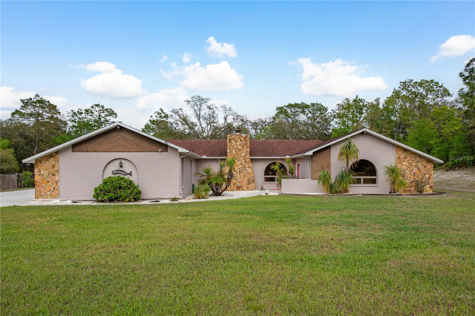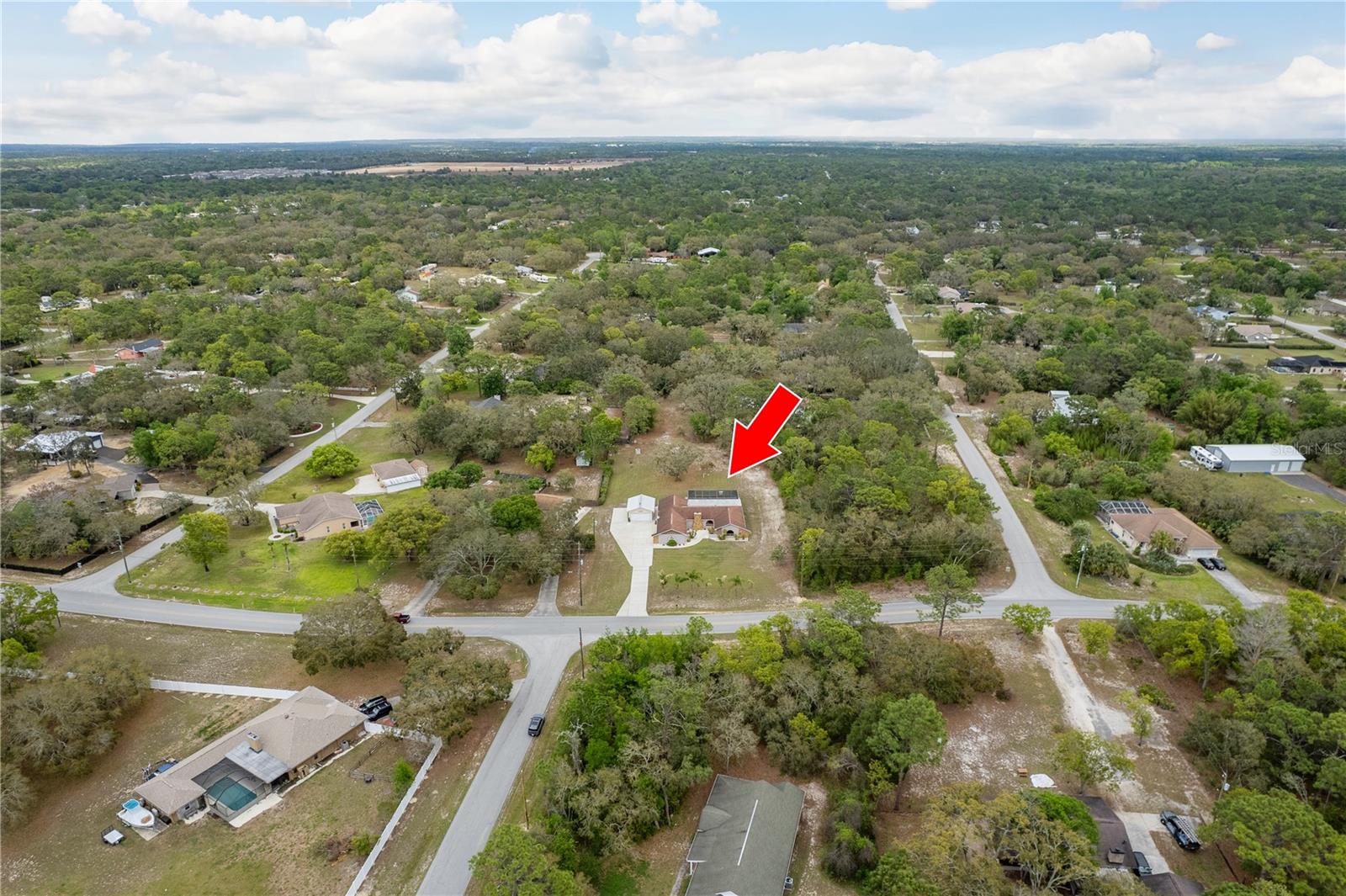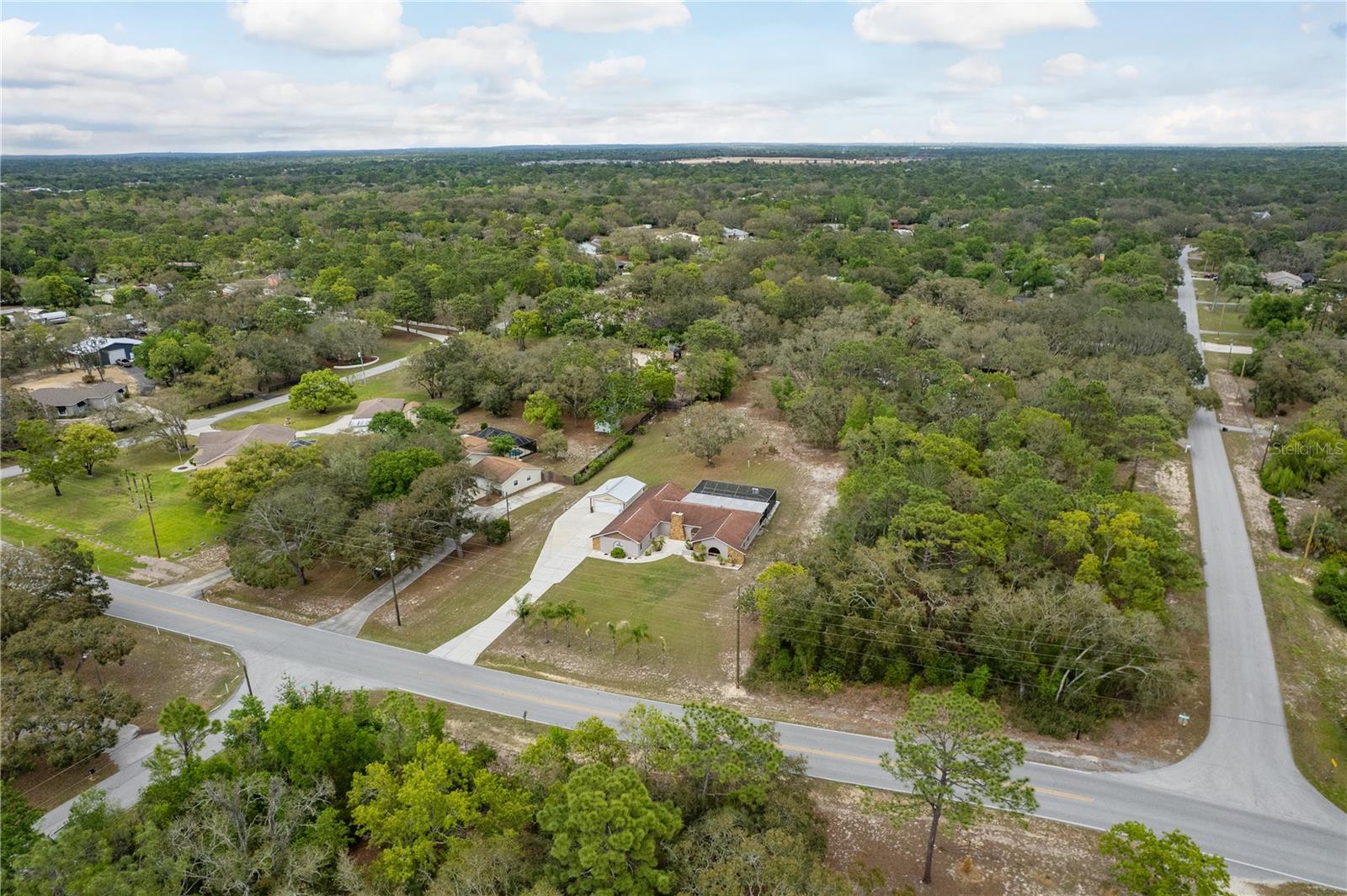 This Spring Hill home is high and dry, NO HOA or CDD! This beautiful 4/3 FULL baths home in the desirable Highlands neighborhood is move in ready! Open floor plan with tile through-out, with the exception of the Family Room. The spacious Master bedroom has a walk-in closet and en-suite bath with sliding glass doors that lead to the lanai, and a dining room and den/family room on that end of the home. The split floor plan has a guest bath and one of the 3 bedrooms on this end of the home has another full bath that leads to the lanai. so guests/family have a separate entrance into the home. The living room off the kitchen area also has sliding glass doors that lead to the lanai. There's an attached garage AND a detached garage/workshop, both with metal roofs!! A concrete RV pad with water and electric hook-ups! This home is zoned AR-1 agriculture, everyone has acreage and plenty of room for your animals, gardening, etc! This neighborhood is known for Pigeon Racing Lofts for the Pigeon racing hobbyists. Close to all the shopping, restaurants, the Suncoast Parkway is just 3.5 miles up County Line and Tampa Int'l Airport is just 45 minutes away! US 19 is just 5 miles to the west. TGH Spring Hill is just 1.5 miles away. The large screened-in lanai has beautiful pavers and would be great for relaxing in the evening or having parties!