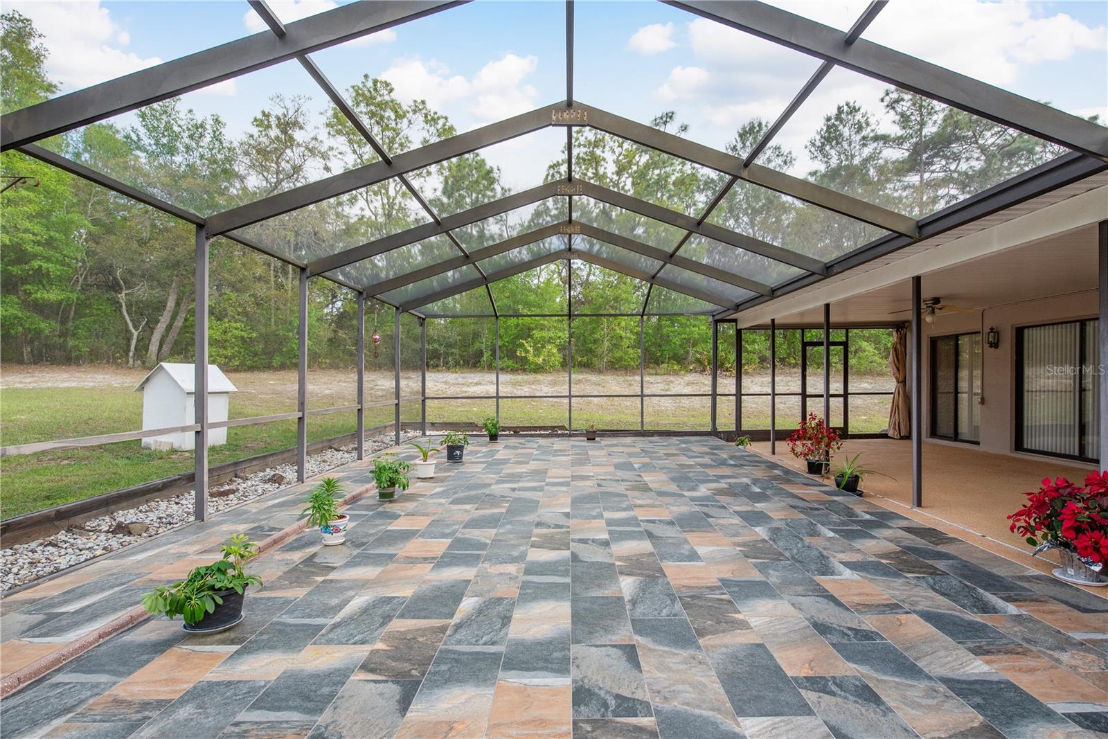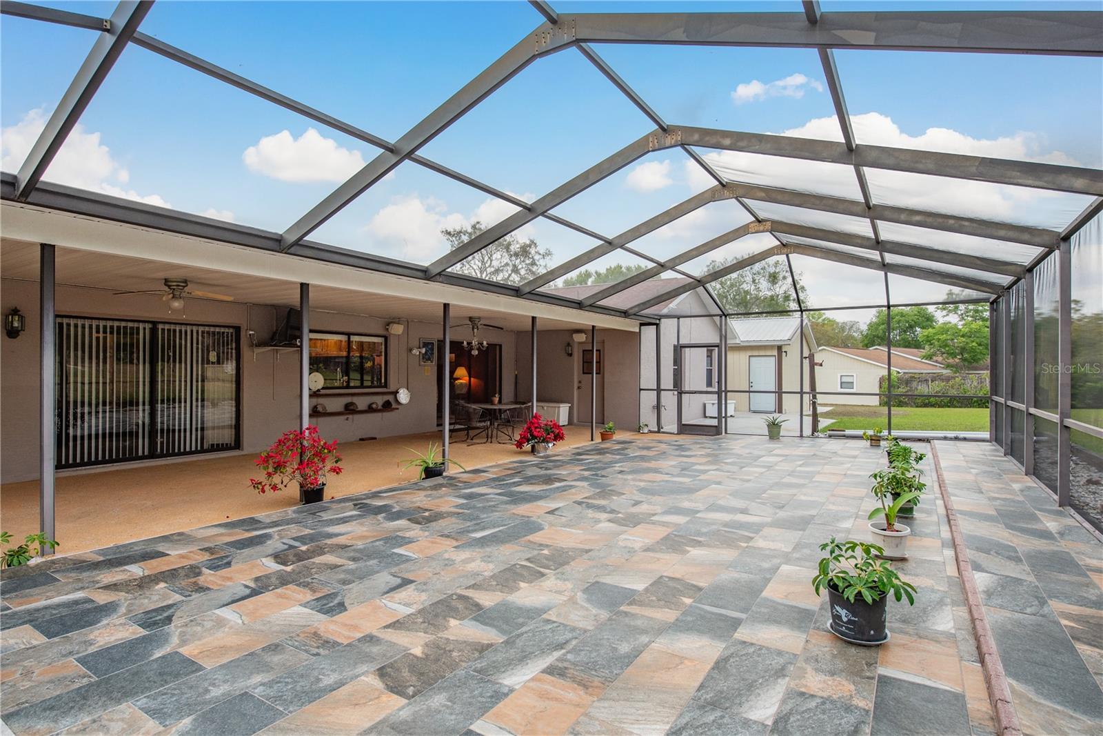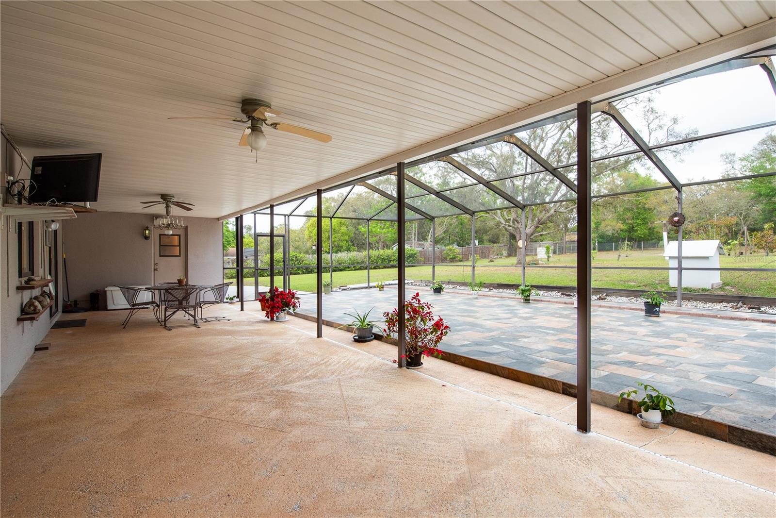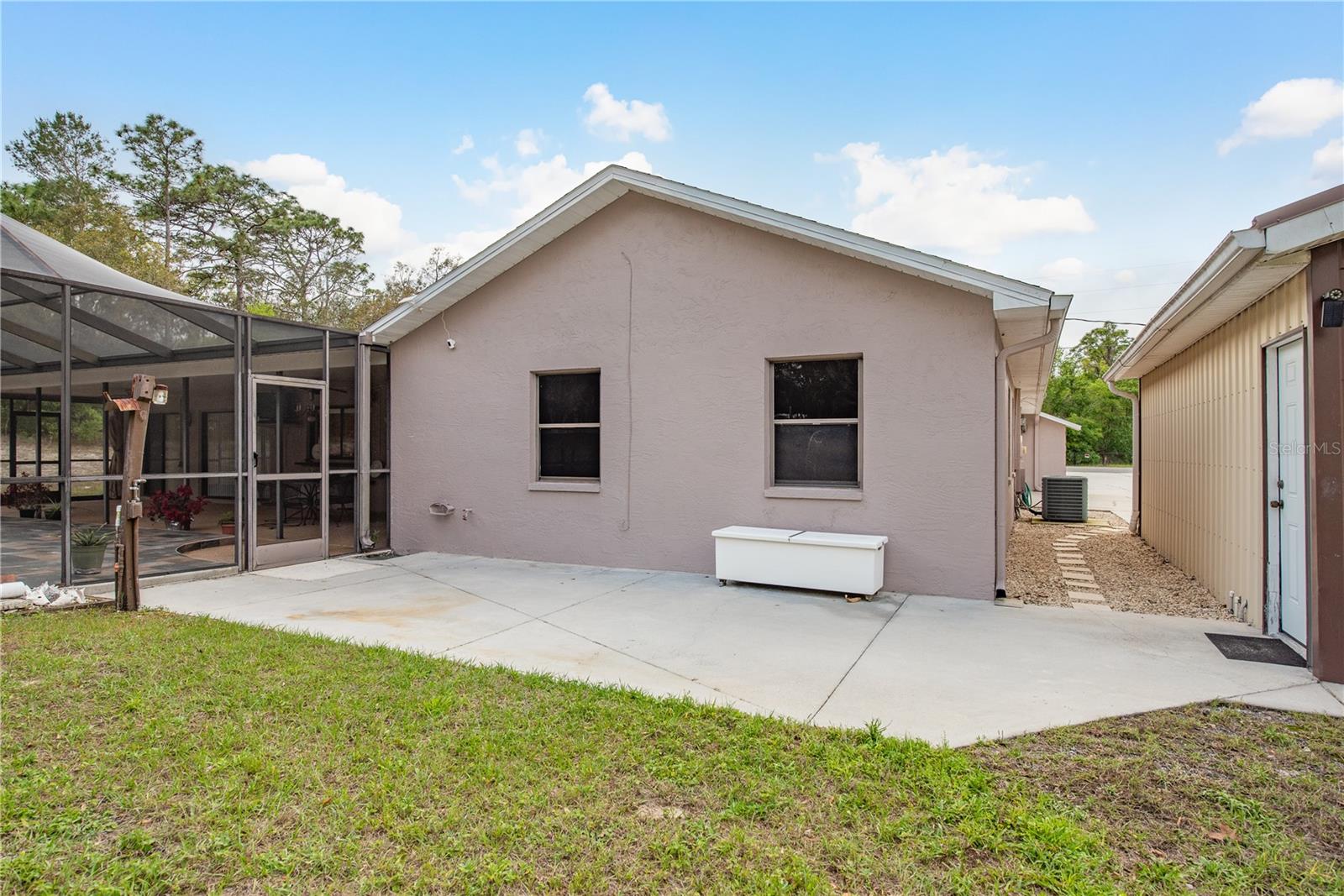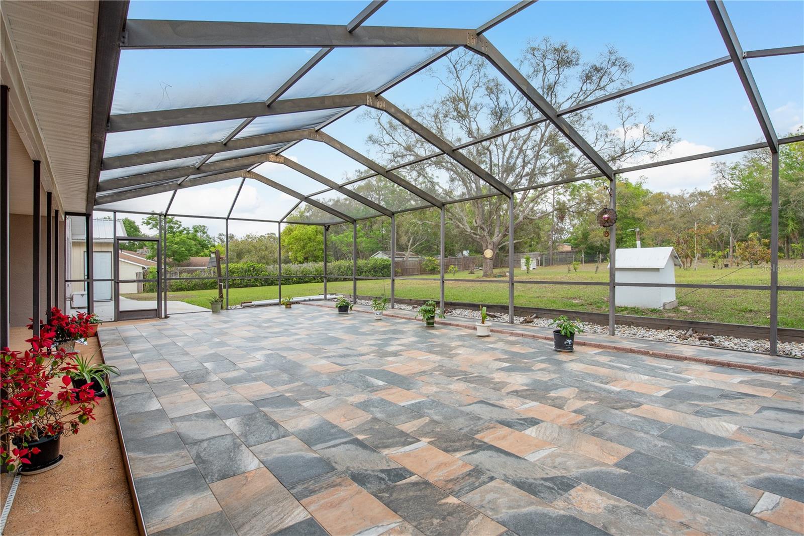 This Spring Hill home is high and dry, NO HOA or CDD! This beautiful 4/3 FULL baths home in the desirable Highlands neighborhood is move in ready! Open floor plan with tile through-out, with the exception of the Family Room. The spacious Master bedroom has a walk-in closet and en-suite bath with sliding glass doors that lead to the lanai, and a dining room and den/family room on that end of the home. The split floor plan has a guest bath and one of the 3 bedrooms on this end of the home has another full bath that leads to the lanai. so guests/family have a separate entrance into the home. The living room off the kitchen area also has sliding glass doors that lead to the lanai. There's an attached garage AND a detached garage/workshop, both with metal roofs!! A concrete RV pad with water and electric hook-ups! This home is zoned AR-1 agriculture, everyone has acreage and plenty of room for your animals, gardening, etc! This neighborhood is known for Pigeon Racing Lofts for the Pigeon racing hobbyists. Close to all the shopping, restaurants, the Suncoast Parkway is just 3.5 miles up County Line and Tampa Int'l Airport is just 45 minutes away! US 19 is just 5 miles to the west. TGH Spring Hill is just 1.5 miles away. The large screened-in lanai has beautiful pavers and would be great for relaxing in the evening or having parties!