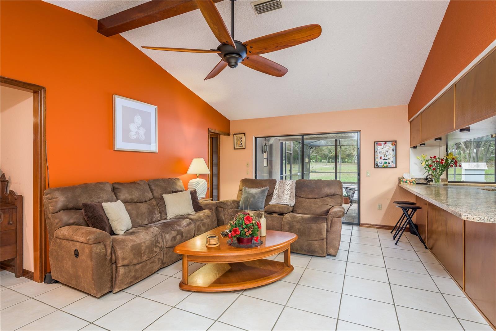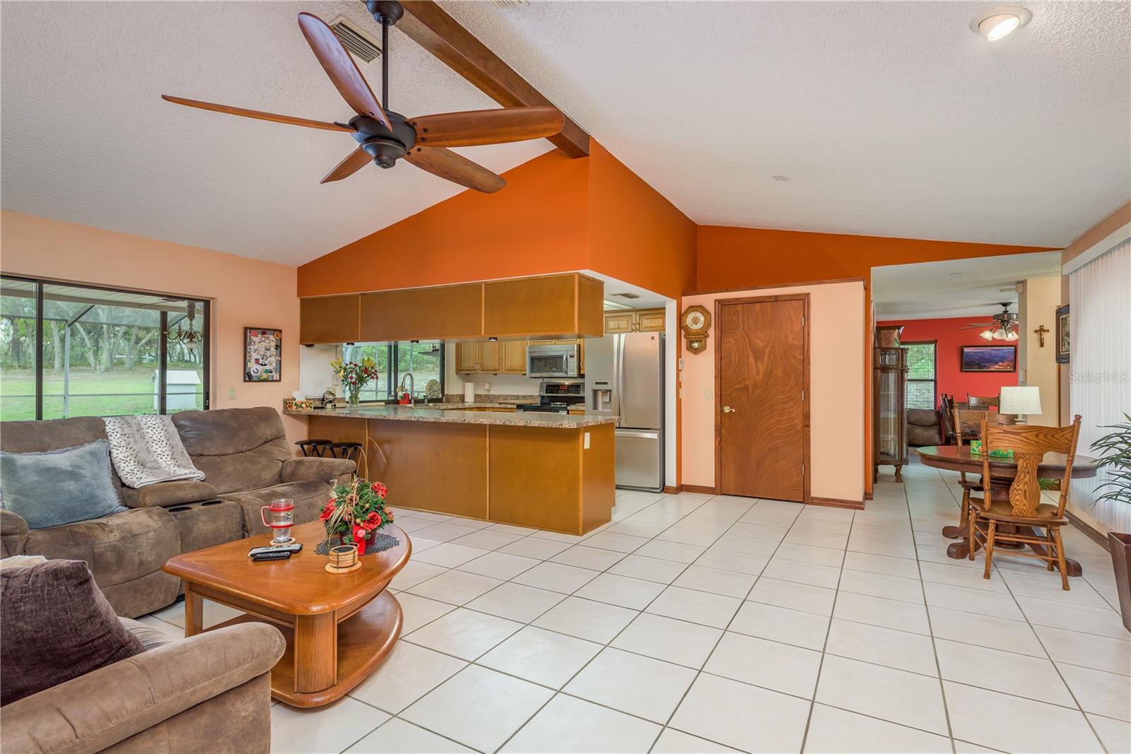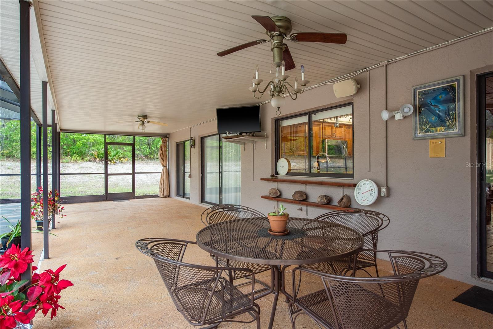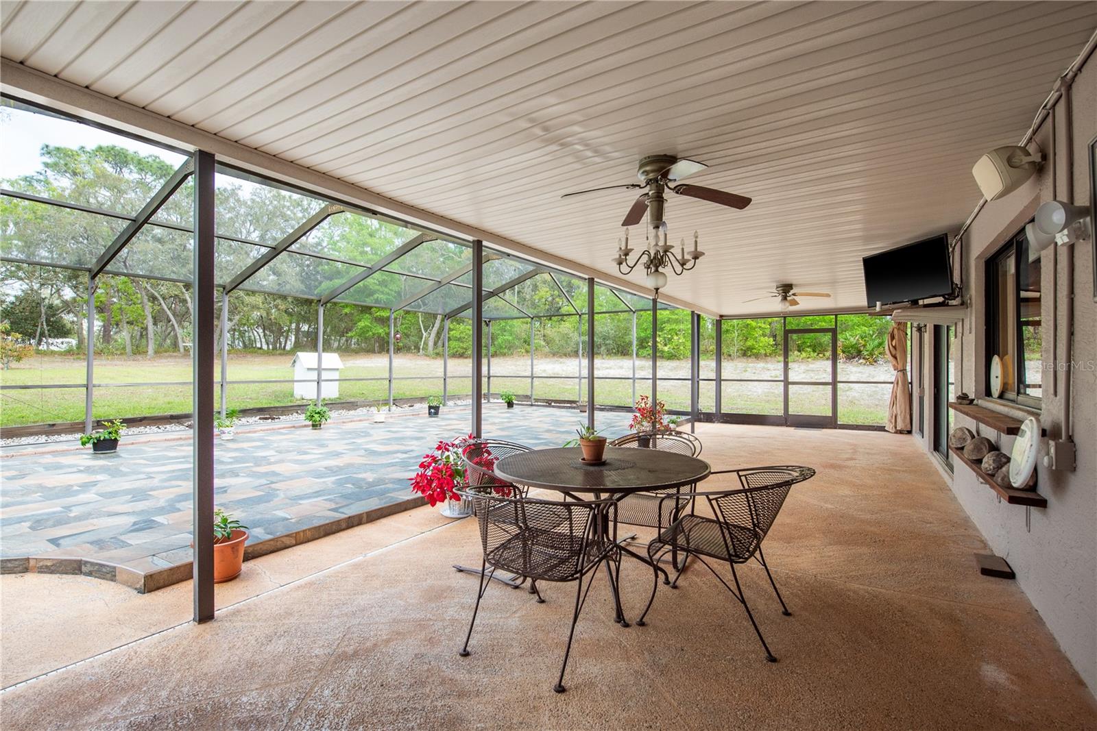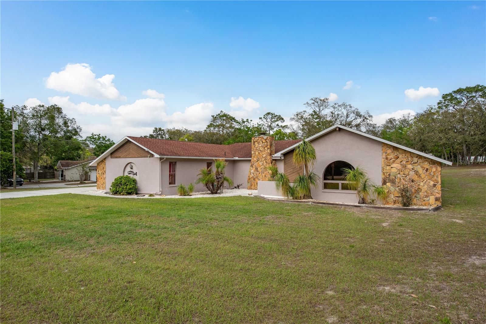 This Spring Hill home is high and dry, NO HOA or CDD! This beautiful 4/3 FULL baths home in the desirable Highlands neighborhood is move in ready! Open floor plan with tile through-out, with the exception of the Family Room. The spacious Master bedroom has a walk-in closet and en-suite bath with sliding glass doors that lead to the lanai, and a dining room and den/family room on that end of the home. The split floor plan has a guest bath and one of the 3 bedrooms on this end of the home has another full bath that leads to the lanai. so guests/family have a separate entrance into the home. The living room off the kitchen area also has sliding glass doors that lead to the lanai. There's an attached garage AND a detached garage/workshop, both with metal roofs!! A concrete RV pad with water and electric hook-ups! This home is zoned AR-1 agriculture, everyone has acreage and plenty of room for your animals, gardening, etc! This neighborhood is known for Pigeon Racing Lofts for the Pigeon racing hobbyists. Close to all the shopping, restaurants, the Suncoast Parkway is just 3.5 miles up County Line and Tampa Int'l Airport is just 45 minutes away! US 19 is just 5 miles to the west. TGH Spring Hill is just 1.5 miles away. The large screened-in lanai has beautiful pavers and would be great for relaxing in the evening or having parties!