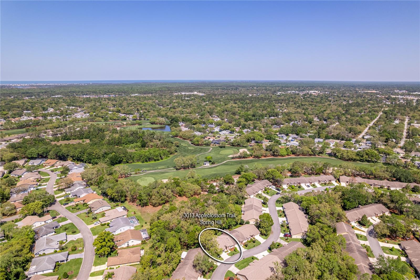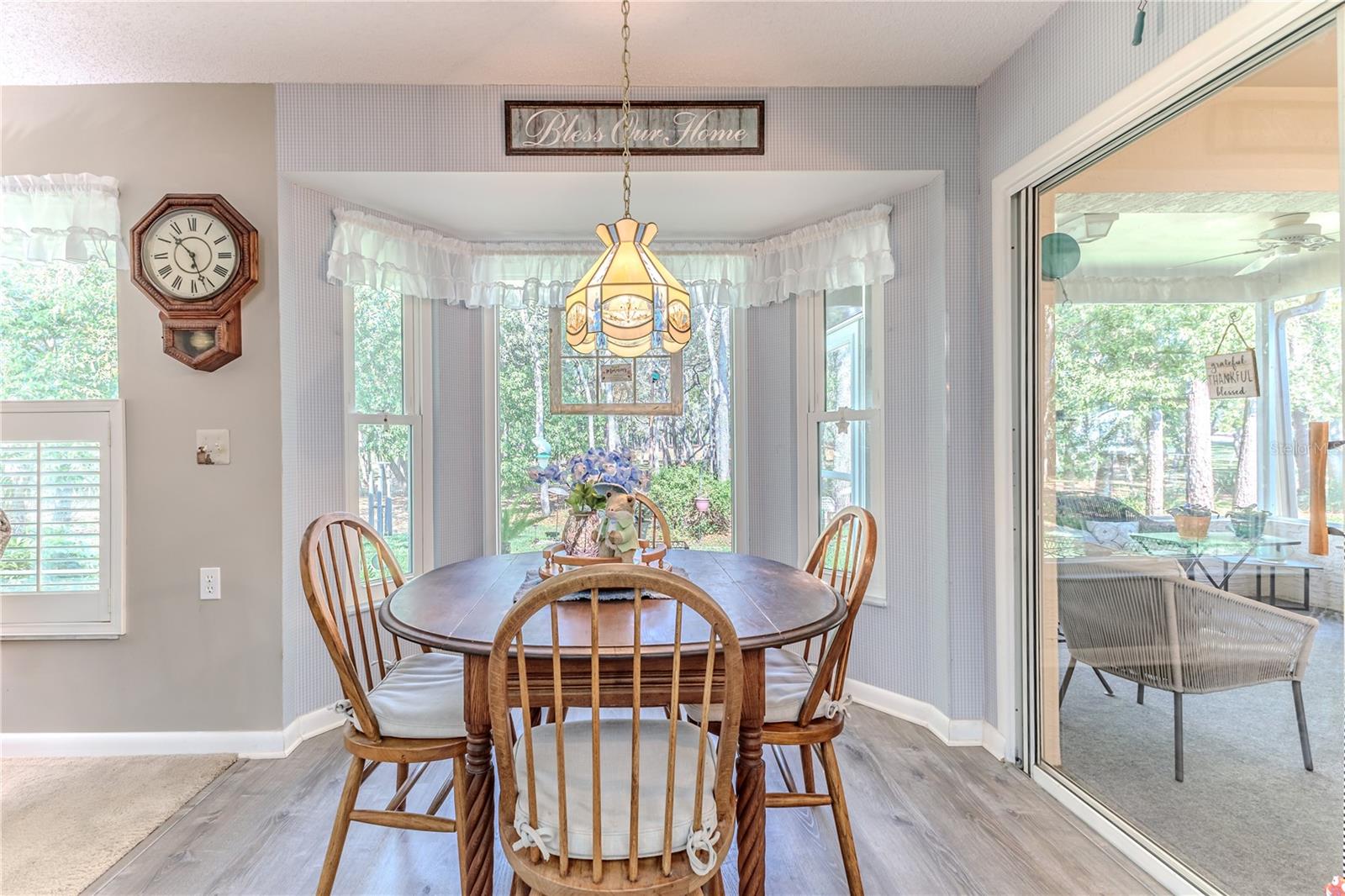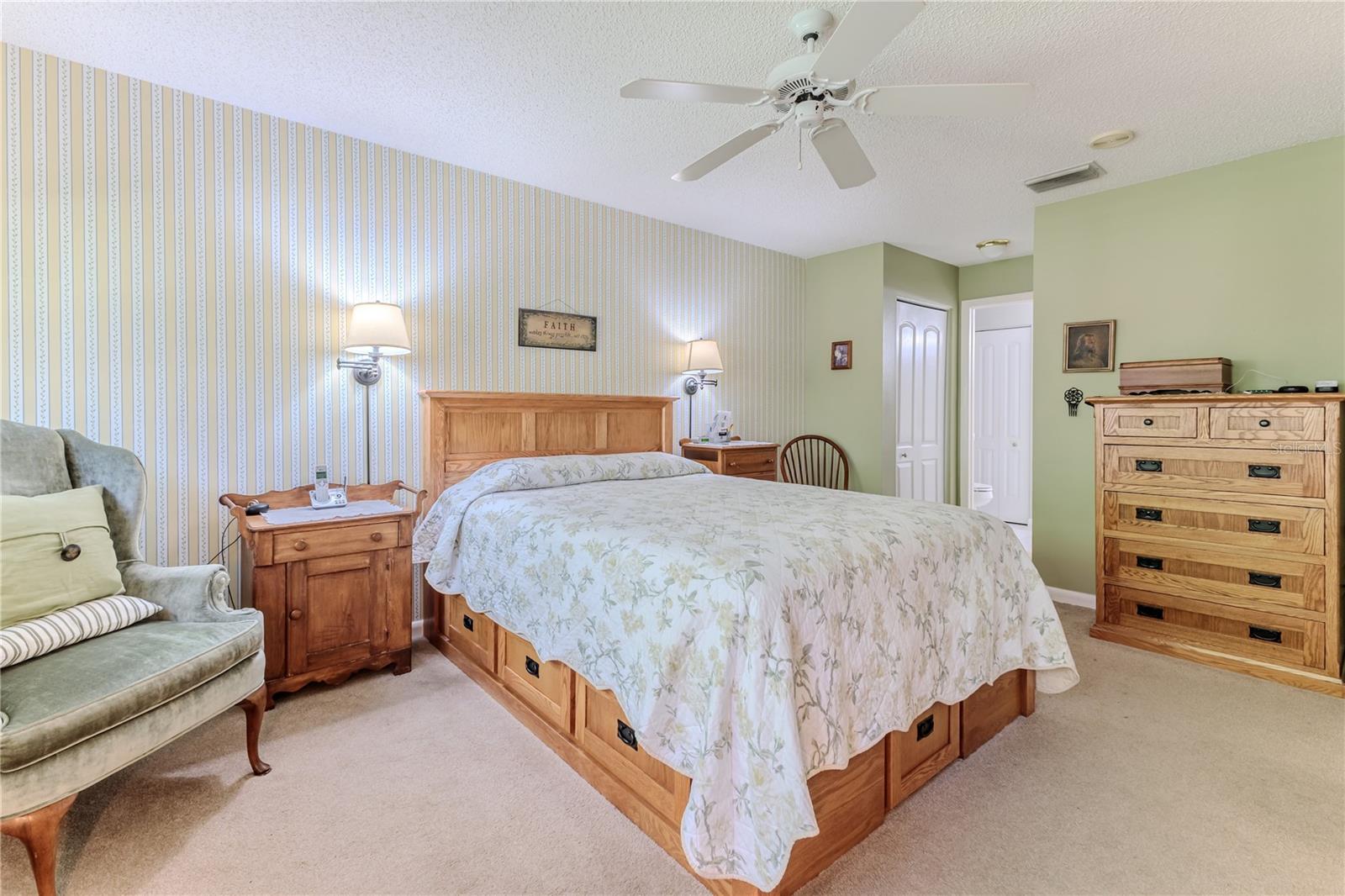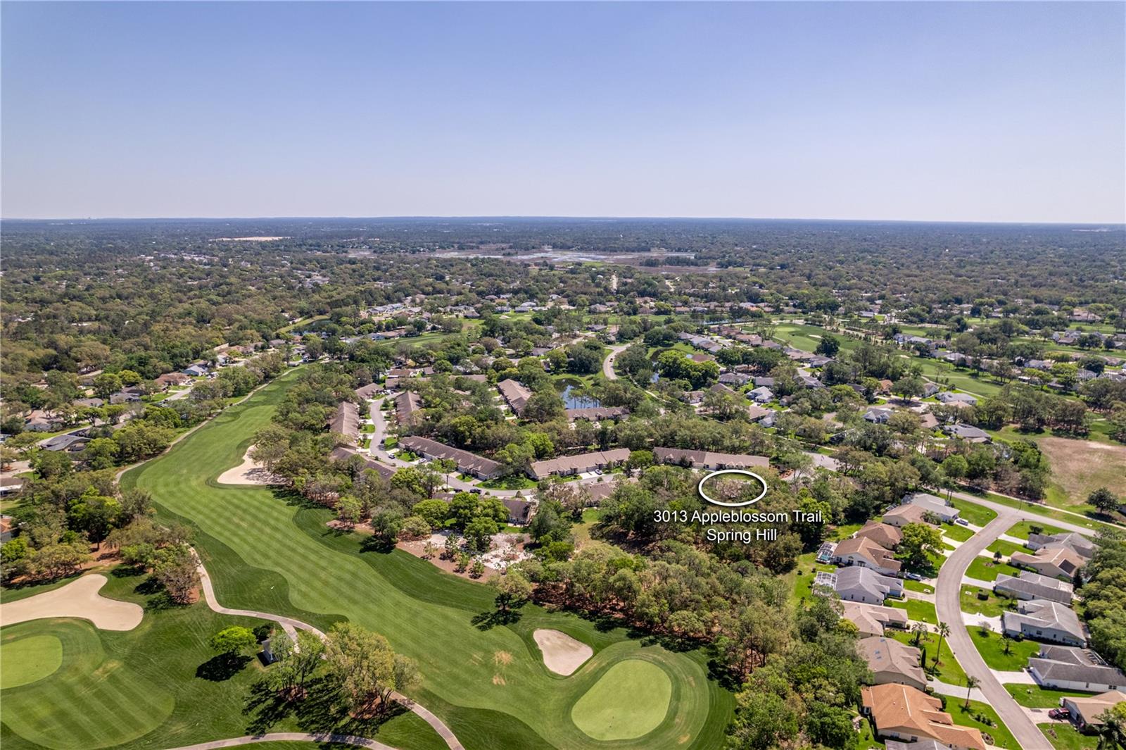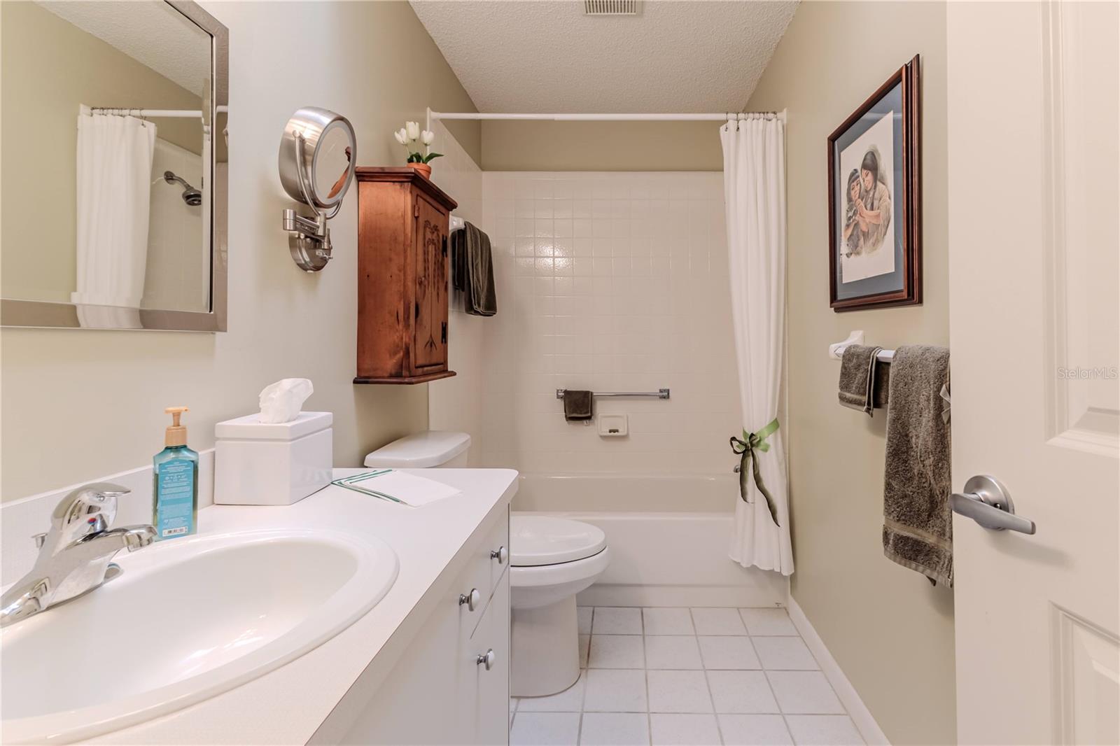 This is the one!! This charming, one owner, updated end-unit villa offers everything you need, including a golf cart, for comfortable and stylish living. Step inside to discover, two spacious bedrooms, updated kitchen, plantation shutters, a living room and family room, providing ample accommodations for you and your guests. The kitchen is a bright and welcoming space, featuring newer wood cabinets, gorgeous quartz counters, newer appliances, ample pantry storage, luxury vinyl plank flooring, and a cozy breakfast nook where you can start your mornings with beautiful garden views. The heart of the home features a delightful dining room and living room combo, adorned with wood floors, a piano and vaulted ceilings that create an airy, open atmosphere. From here, you'll enjoy additional living space in the enclosed lanai. The main bedroom, located at the rear of the home, is a true retreat with a door to the lanai, two California-closets, offering ample storage for all your wardrobe needs. The updated ensuite bathroom boasts a walk-in shower and linen closet. The guest bedroom is generously sized and conveniently located near the hall bathroom, perfect for visitors. Additional storage is available with two hall closets. The property also includes a two-car garage, pull-down stairs to the attic, fridge in garage. The oversized, inside laundry room includes washer, dryer, cabinets and utility sink. Updates include a new roof in 2012, newer windows, HVAC 2015, newer water heater, rain gutters screens. Additionally, furniture is offered outside the villa sale, making your move even easier. The Woodlands Village fee is $126/month, allows one dog, includes irrigation, lawn mowing, fertilization, weed control, front shrub trims, exterior painting, termite protection. Timber Pines, an award-winning, guard-gated 55+ deed-restricted community, offers access to an exceptional lifestyle. Residents enjoy three 18-hole golf courses, a 9-hole pitch & putt, tennis courts, 12 pickleball courts, two community pools, a country club restaurant and bar, a state-of-the-art fitness center, a woodworking shop, billiards, a performing arts center, and a vibrant array of clubs and activities. Don't miss the chance to make this delightful villa your new home, where comfort meets convenience. Contact us today to schedule your showing!