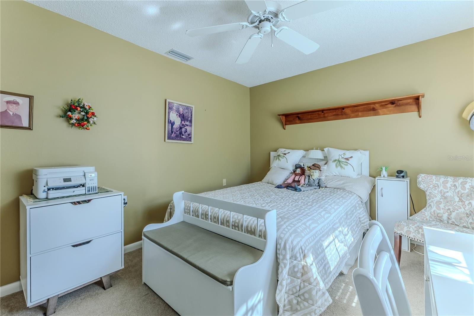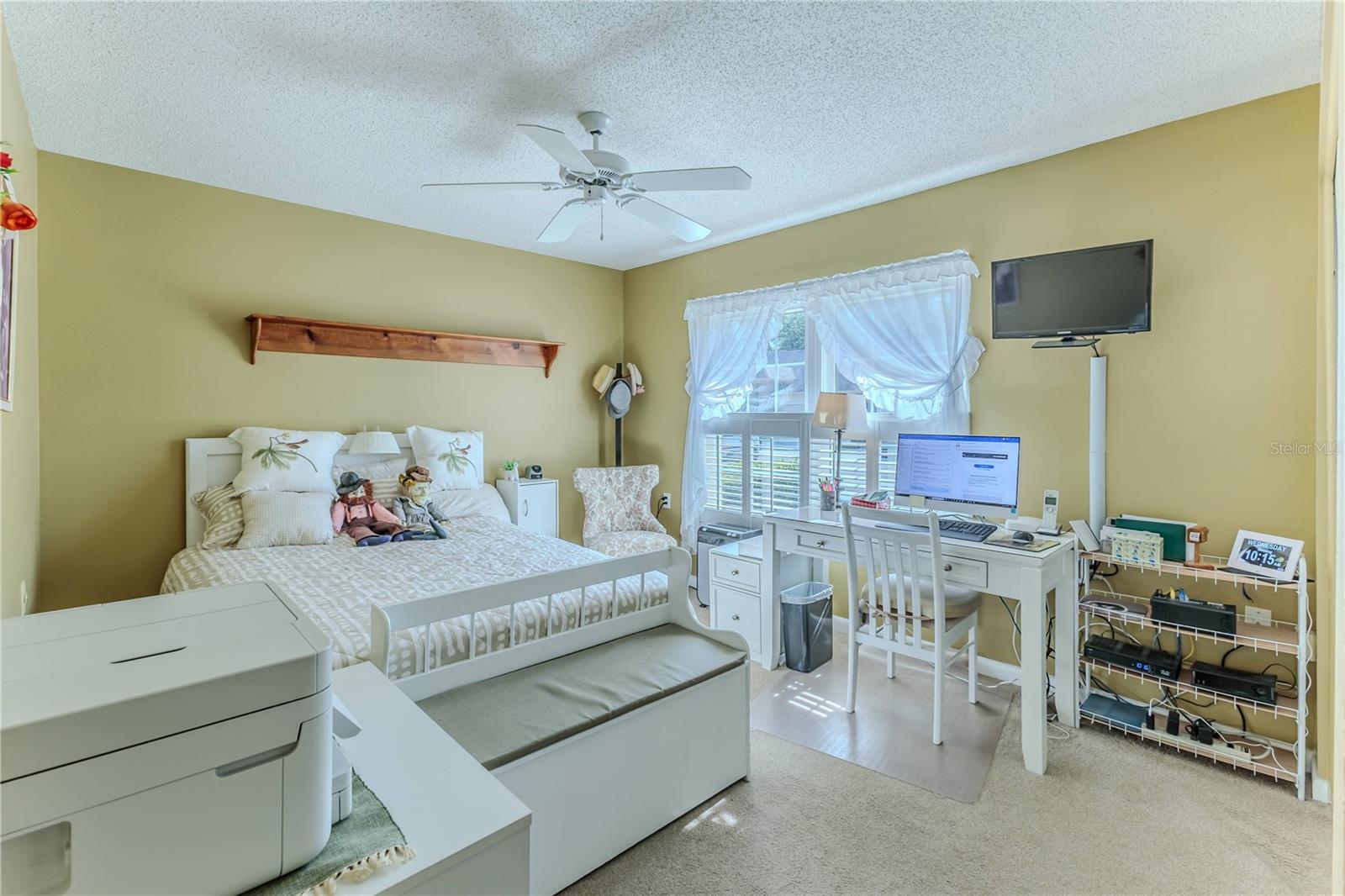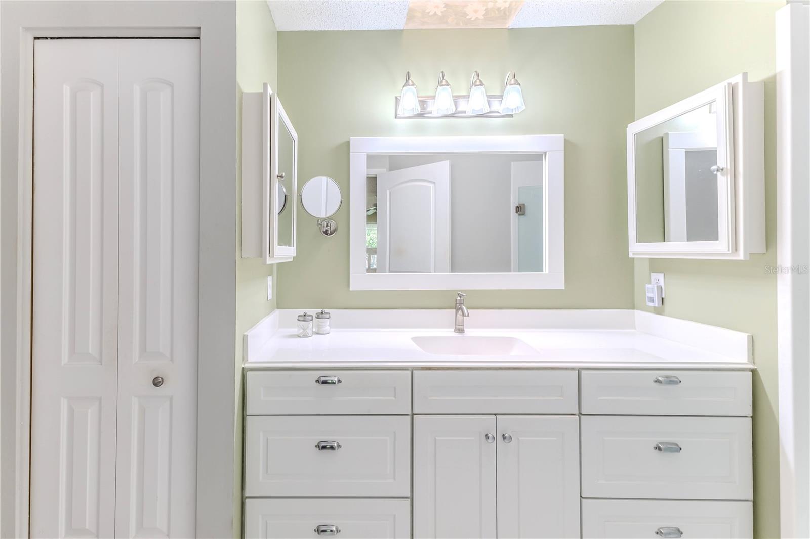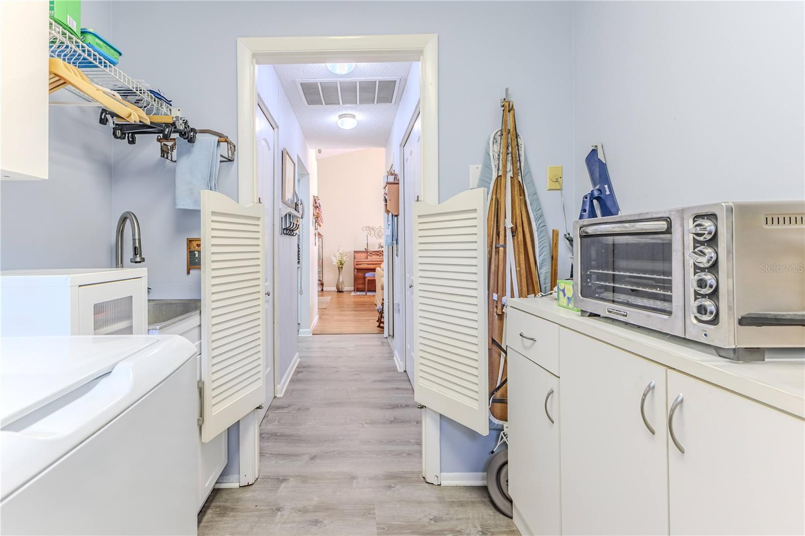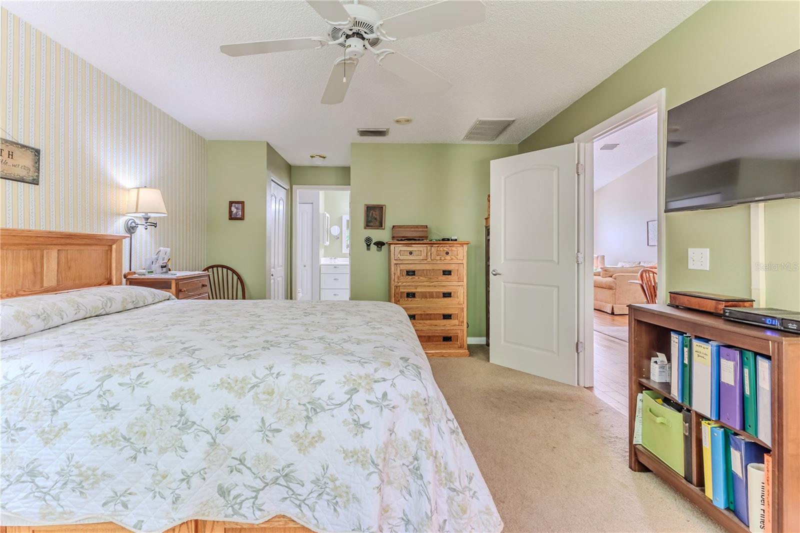 This is the one!! This charming, one owner, updated end-unit villa offers everything you need, including a golf cart, for comfortable and stylish living. Step inside to discover, two spacious bedrooms, updated kitchen, plantation shutters, a living room and family room, providing ample accommodations for you and your guests. The kitchen is a bright and welcoming space, featuring newer wood cabinets, gorgeous quartz counters, newer appliances, ample pantry storage, luxury vinyl plank flooring, and a cozy breakfast nook where you can start your mornings with beautiful garden views. The heart of the home features a delightful dining room and living room combo, adorned with wood floors, a piano and vaulted ceilings that create an airy, open atmosphere. From here, you'll enjoy additional living space in the enclosed lanai. The main bedroom, located at the rear of the home, is a true retreat with a door to the lanai, two California-closets, offering ample storage for all your wardrobe needs. The updated ensuite bathroom boasts a walk-in shower and linen closet. The guest bedroom is generously sized and conveniently located near the hall bathroom, perfect for visitors. Additional storage is available with two hall closets. The property also includes a two-car garage, pull-down stairs to the attic, fridge in garage. The oversized, inside laundry room includes washer, dryer, cabinets and utility sink. Updates include a new roof in 2012, newer windows, HVAC 2015, newer water heater, rain gutters screens. Additionally, furniture is offered outside the villa sale, making your move even easier. The Woodlands Village fee is $126/month, allows one dog, includes irrigation, lawn mowing, fertilization, weed control, front shrub trims, exterior painting, termite protection. Timber Pines, an award-winning, guard-gated 55+ deed-restricted community, offers access to an exceptional lifestyle. Residents enjoy three 18-hole golf courses, a 9-hole pitch & putt, tennis courts, 12 pickleball courts, two community pools, a country club restaurant and bar, a state-of-the-art fitness center, a woodworking shop, billiards, a performing arts center, and a vibrant array of clubs and activities. Don't miss the chance to make this delightful villa your new home, where comfort meets convenience. Contact us today to schedule your showing!