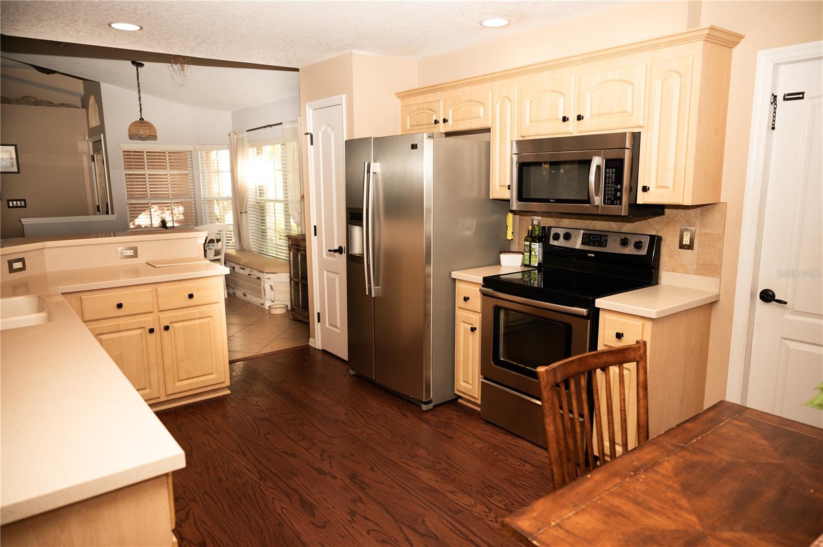 This warm welcoming home boasts a lot of character. With 3 bedrooms 2 bathrooms and a 2 car garage there is plenty of room for everyone. Walking through the front door you are greeted with the spacious open concept living room. The dining room is also adjoined and allows for plenty of conversation throughout the open space. The kitchen is where all the magic happens here, where you can be sure to prepare and cook a plentiful meal and serve to the table in the nook area of the kitchen or make your way over to the dining room. The living room also has the added bonus of a wet bar area with a sink and even more cabinetry for added storage. The split floor plan has the two bedrooms off to the right of the home with their bathroom placed between. The master bedroom is off to the left side of the house and exudes lots of character with crown molding throughout, his and her closets, and a sliding glass door right out to your beautiful backyard. The master bathroom has dual vanities and a spa like feel as you step into your pebble stone shower with rainfall shower head. The backyard is fully fenced in and backs up to a 100acre forest parcel owned by SWFMD. Be sure to cool off in the pool or enjoy a cup of coffee as you hear the morning birds in the tranquil atmosphere of this spacious backyard.