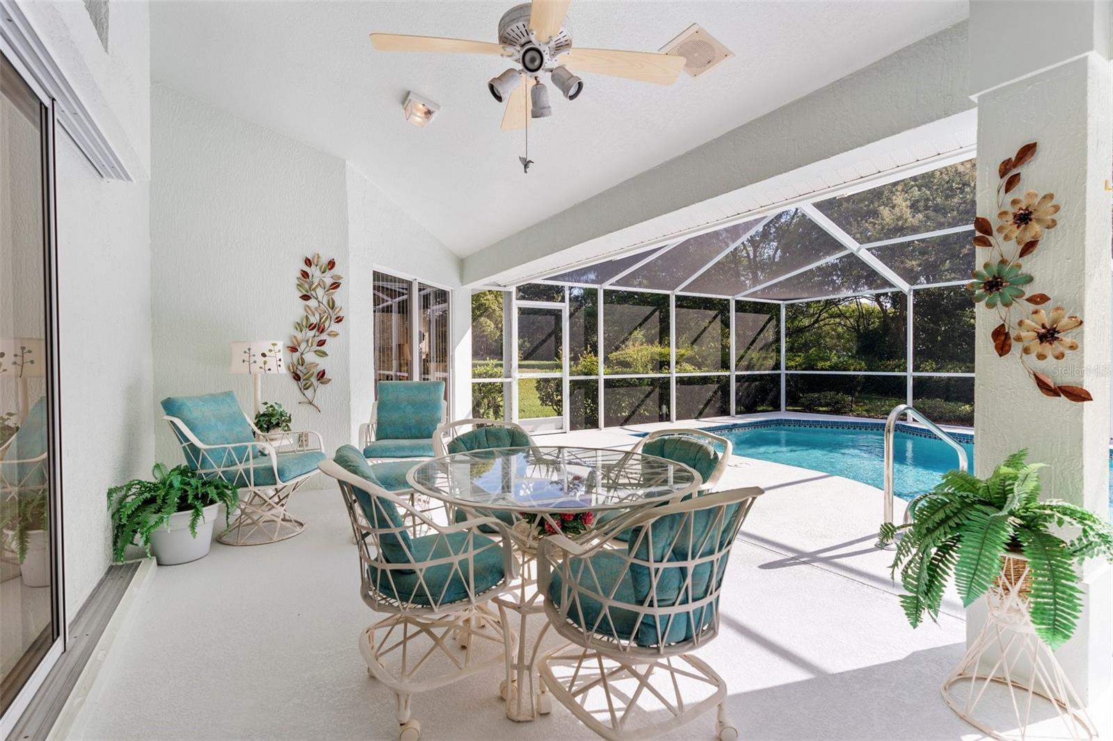 Experience the best of Florida living! This custom built, meticulously maintained, furnished home is situated on a charming, quiet street in The Oaks, nestled on a generous half-acre lot. The kitchen features an eating bar and a separate breakfast area that overlooks the lanai and pool. Inside, the formal living room boasts a cozy wood-burning fireplace at its center. The master suite offers a private retreat with its own private den/sitting room complete with an electric fireplace. The luxurious en-suite bathroom features a garden tub, dual sinks, and a spacious walk-in shower. The additional bedrooms are generously sized, offering comfort and privacy for family members or guests. Each room is equipped with spacious closets to accommodate all your storage needs. The large laundry room includes cabinets and countertop space for convenience. Step outside to enjoy the beautifully landscaped yard, complete with mature trees that provide ample shade and a sense of tranquility. The screened-in lanai is perfect for entertaining guests or enjoying a quiet evening while listening to the soothing sounds of nature. You may even have visits from deer, turkeys, and rabbits! The sparkling pool invites you to take a refreshing dip on warm Florida days. This home is not only a sanctuary but also a gateway to the vibrant culture and activities that Florida has to offer. Whether you are seeking a peaceful residence or a lively hub for gatherings, this property is a perfect choice. Don't miss the opportunity to make it yours and enjoy the quintessential Florida lifestyle. Conveniently located just minutes from the Suncoast Parkway and close to shopping, with easy access to Tampa International Airport. Schedule your appointment TODAY! Roof 2022, HVAC 2021