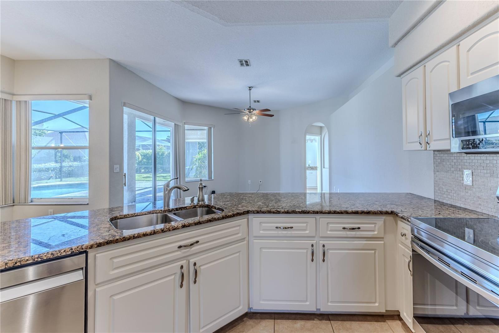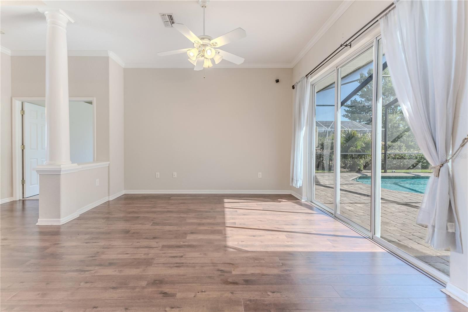 One or more photo(s) has been virtually staged. HUGE PRICE ADJUSTMENT - MOTIVATED SELLERS! Do not miss the opportunity to own this Gorgeous and spacious POOL HOME that offers 3-bedrooms PLUS an office/flex room! Located in the highly sought after Gated Community of Pristine Place! This stunning property offers an open-concept floor plan that effortlessly blends modern living with luxury, and most of the home provides beautiful views of the private pool. This home also features a BRAND NEW ROOF, providing peace of mind and long-term durability along with the HVAC being replaced in 12/2021, FRESH PAINT INSIDE & OUT 08/2025, BRAND NEW CARPETS in all the bedrooms, even a lush new front lawn! There is also an irrigation well for your sprinkler system. As you enter, you're immediately greeted by beautiful high ceilings, which enhance the spacious and airy feel throughout. The huge kitchen is a chef's dream, featuring newer appliances and sleek granite countertops. It seamlessly flows into the family room, where large windows provide a direct view of the screened-in pool area, creating an inviting space for both relaxation and entertaining. The primary suite is a true retreat, offering not only a generous bedroom with brand new carpet but also a luxurious ensuite bathroom. The ensuite features dual sinks, a relaxing garden tub, and a separate shower—perfect for unwinding. Additionally, the suite includes two spacious closets, offering plenty of room for storage and organization. There is a newer split AC system that has been installed for extra fresh crispy cool sleeping on demand! And with views of the pool visible from the primary suite, you can enjoy the peaceful ambiance of your private outdoor oasis from the comfort of your bedroom. The two additional bedrooms have walk in closets and new carpet allowing ample space for family or guests. The added office space provides flexibility for working from home, studying, or enjoying a quiet retreat. Step outside into the screened-in pool area, where you can relax year-round in your private pool. The pool area is surrounded by freshly sealed brick pavers, adding a touch of elegance. There is plenty of room for family barbeques and playing outdoor games in the fenced in backyard! LOW HOA FEES. NO CDD FEES AND NO FLOOD ZONE! This wonderful home is located near plenty of shopping, restaurants, schools, medical facilities and just a few miles away from the Suncoast Parkway, allowing for easy access to Tampa, famous beaches and theme parks. Don't let this one get away. Call today to schedule your showing. Rooms with furniture have virtually staged.
