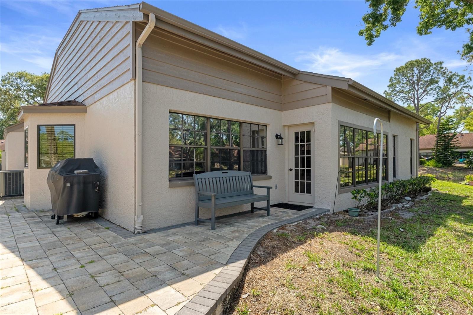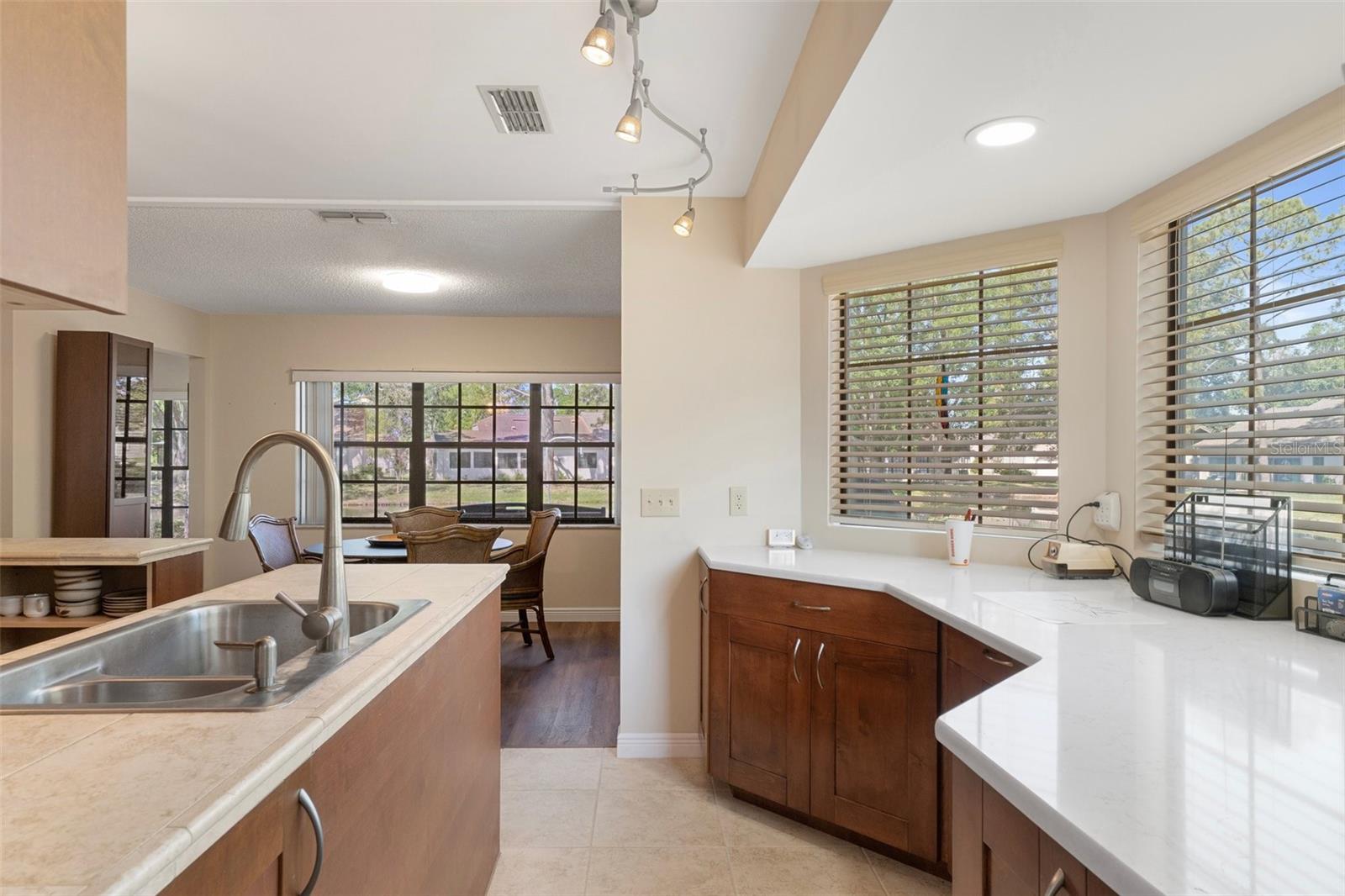 WHAT A GEM!!! Welcome to your dream home in the highly desired and very active 55+ golf community of Timber Pines! This delightful 2 bedroom/2 bathroom stand-alone villa is situated on a quiet cul-de-sac with exceptional views of a back yard pond in the charming Manor Place Village! Well-maintained and move in ready with furnishings included! Upon entering from the front porch double doors, you will be impressed by the openness and spaciousness of the Living Room area with its tray ceiling and panoramic view of the pond. The updated kitchen has tile and quartz countertops, stone backsplash, solid wood cabinets with soft-close doors, pull out drawers and lazy Susan corner cabinets, Stainless Steel appliances and a tiled floor. This split floor plan home includes two bathrooms that have both been updated. The primary bathroom has a linen closet, shower with safety bars and a comfort height Toto Toilet. The guest bathroom has a walk-in shower with safety bars and is handicap accessible. Both bathrooms have tiled floors. The primary bedroom also has a tray ceiling, walk-in closet and peaceful views to the backyard pond. Located in the front of the home is the guest bedroom which has a large walk-in closet with shelving. Luxury vinyl flooring is in the bedrooms and main areas of the home. The outdoor space with the paved porch in the front and expansive paved patio and walk way in the back of the home with the water views, provide for hours of relaxation and entertainment. Maintenance-free villa' allowing for time to enjoy all the amenities. Pet friendly community. MAKE THIS YOUR HOME or RETREAT TODAY and enjoy the resort style living Timber Pines provides--from its Clubhouse and Lodge, Resident Activity Center and Performing Arts Center, 2 community resort-style pools, Wellness/ Fitness Center, award winning Pickleball and Tennis Courts, Shuffleboard, Bocce, Billiards, Horseshoes, Woodworking Shop, Exercise Trails and Dog Parks, 4 community Golf Courses, along with more than 100 clubs to participate in. Something for everyone! Timber Pines is conveniently located next to local shopping, restaurants, hospitals and easy access to major highways to Tampa and Orlando, and gulf beaches, along with attractions in Florida's Nature Coast. CALL TODAY TO START ENJOYING!