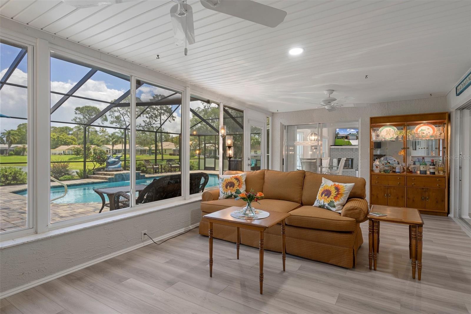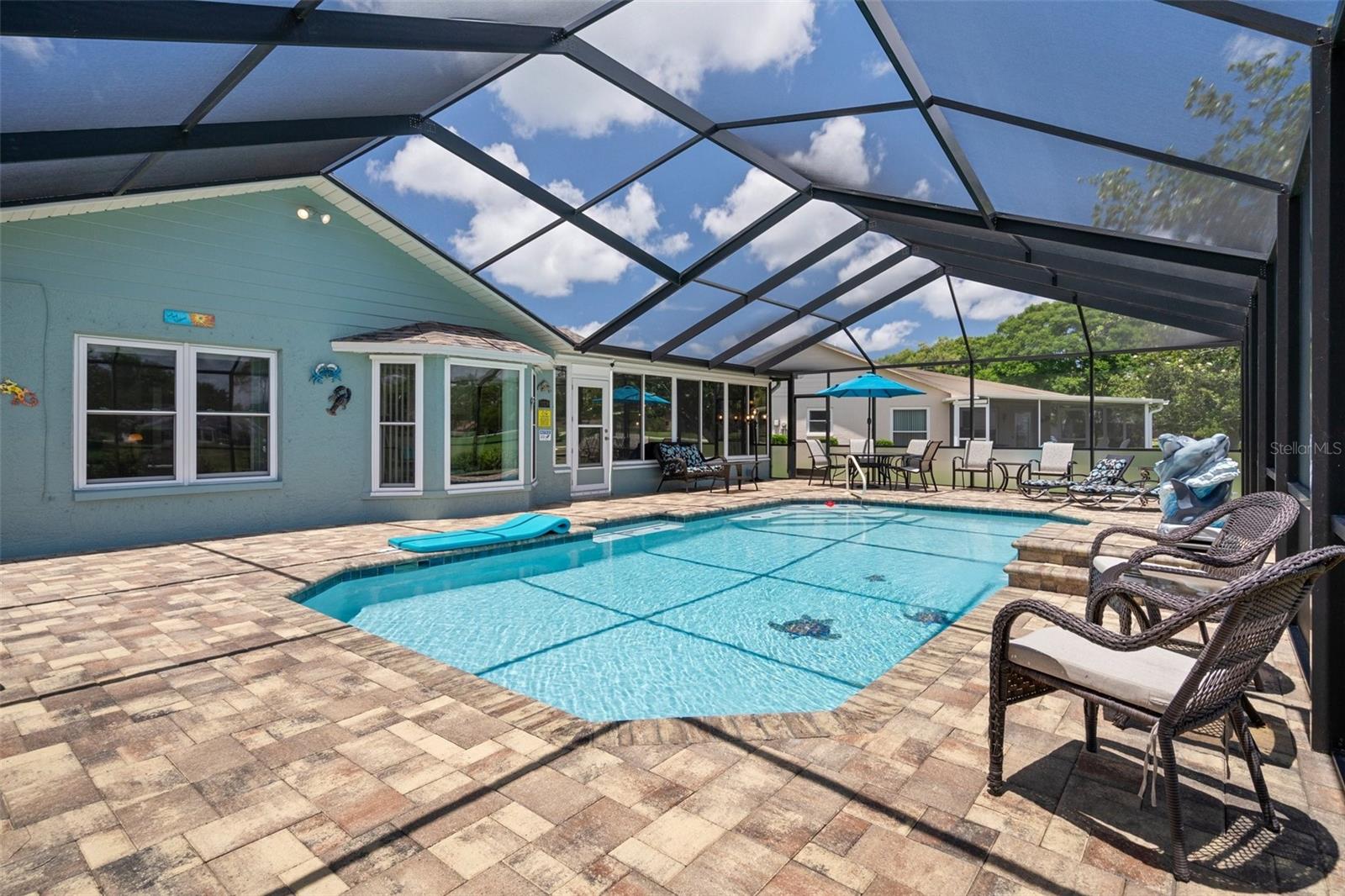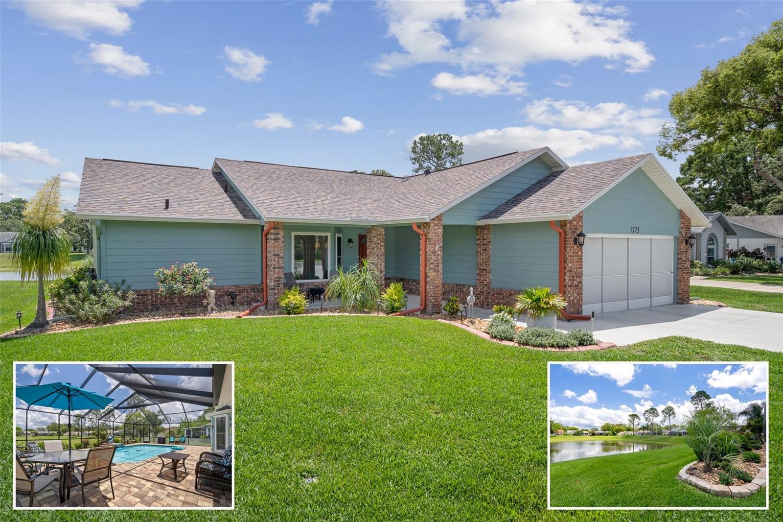 WOW, that is what you will be saying when you enter this fully professionally updated and FURNISHED POOL HOME. There are so many upgrades to this home that you must VIEW THE HOME IN PERSON. NEW SALT WATER 15X30 SWIMMING POOL/ POOL HEATER HAS A COOLING FUNCTION ALSO FOR THE SUMMER HEAT. The floor plan on this home is one of our most popular because it offers you a separate primary bedroom suite away from the second bedroom. The lanai floor was professionally raised to be level with the rest of the home and is glass enclosed and has it's own cooling and heating system. This extra living space affords you the opportunity for an office space , a family room or even extra sleeping area for the guests. The flooring is a waterproof luxury vinyl, and high grade laminate. The pool deck is oversized and provides so much room for outdoor furniture and entertaining. The rear of the home faces the east so that you will have amazing morning sunrises and cooler afternoon and evenings with no direct afternoon sun. The kitchen has been completely updated with new easy close cabinets and Cambreia countertops, with all of the lighting and newer modern appliances you will want to cook many more meals at home. While cooking you will enjoy the views of the amazing pool in your backyard. Speaking of views from your huge pool deck you will love watching nature enjoying the pond behind the home. Home upgrades include +New well pump for irrigation+upgraded sprinkler system+new new salt water pool with pool screen+New pool heater with cooling system+New oversize pool deck with child safety fence+New windows+New walter filtration system+New kitchen cabinets and countertops+New A/C and heating system for the lanai+New paint exterior and interior+New upgraded flooring+New updated primary bathroom+New updated moldings+New garage door and opener with wifi+New side garage door+New yard landscaping and lighting+New hurricane curtains for the front proch+Entire home hurricane shutters+New attic insulation+Rooof 2019+HVAC 2021 & 2024 with updated duct work+Back of lanai windows are tinted. The upgrades are endless. Make this home your forever home and enjoy Timber Pines Resort 55+ Community, which offers 4 golf courses, new pickleball courts, new multimillion dollar fitness and wellness center, 2 pro-shops, a driving range, 2 putting greens, bocce, tennis, walking trails, billiard room, wood working shop, a full time restaurant, and a performing arts center for numerous shows and entertainment. This amazing community has so much available for a low HOA of $314.00 a month that includes high speed internet and cable.