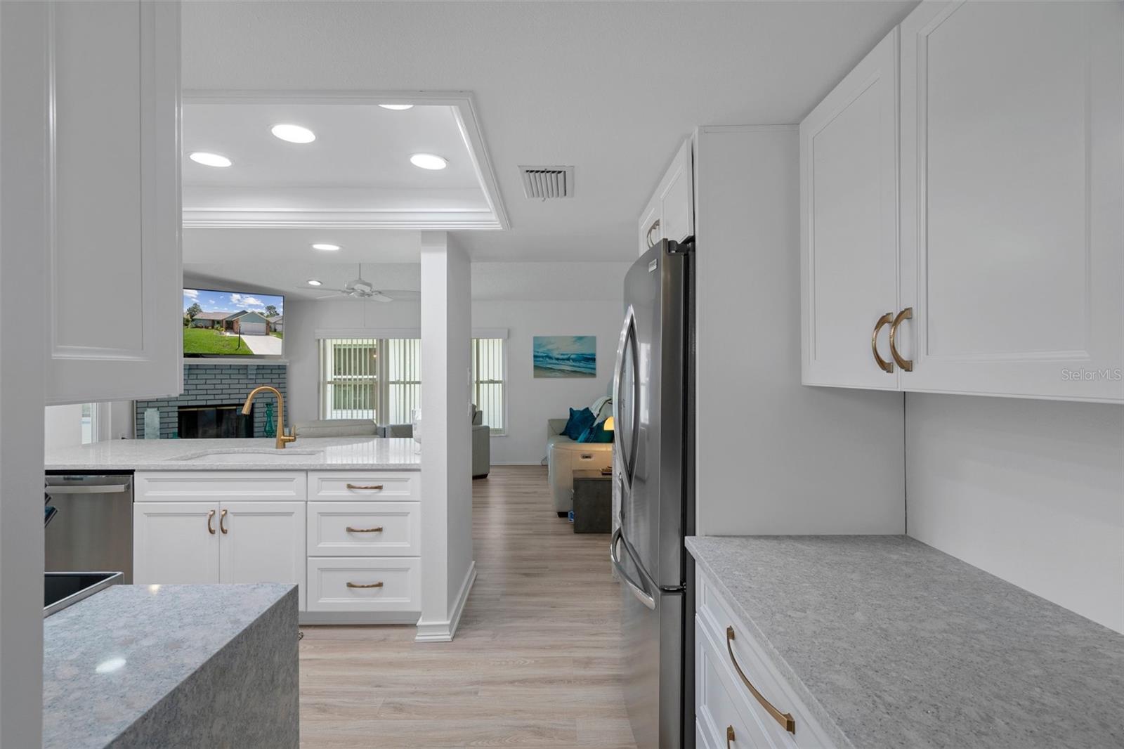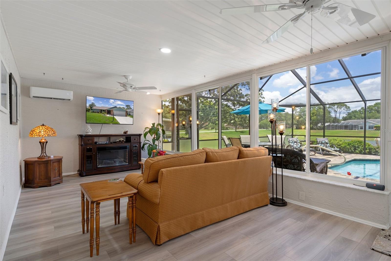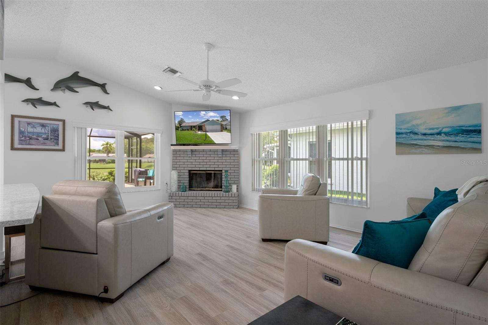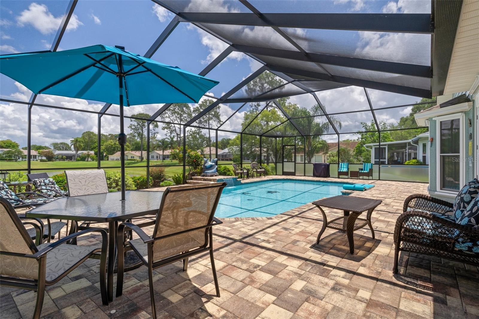 WOW, that is what you will be saying when you enter this fully professionally updated and FURNISHED POOL HOME. There are so many upgrades to this home that you must VIEW THE HOME IN PERSON. NEW SALT WATER 15X30 SWIMMING POOL/ POOL HEATER HAS A COOLING FUNCTION ALSO FOR THE SUMMER HEAT. The floor plan on this home is one of our most popular because it offers you a separate primary bedroom suite away from the second bedroom. The lanai floor was professionally raised to be level with the rest of the home and is glass enclosed and has it's own cooling and heating system. This extra living space affords you the opportunity for an office space , a family room or even extra sleeping area for the guests. The flooring is a waterproof luxury vinyl, and high grade laminate. The pool deck is oversized and provides so much room for outdoor furniture and entertaining. The rear of the home faces the east so that you will have amazing morning sunrises and cooler afternoon and evenings with no direct afternoon sun. The kitchen has been completely updated with new easy close cabinets and Cambreia countertops, with all of the lighting and newer modern appliances you will want to cook many more meals at home. While cooking you will enjoy the views of the amazing pool in your backyard. Speaking of views from your huge pool deck you will love watching nature enjoying the pond behind the home. Home upgrades include +New well pump for irrigation+upgraded sprinkler system+new new salt water pool with pool screen+New pool heater with cooling system+New oversize pool deck with child safety fence+New windows+New walter filtration system+New kitchen cabinets and countertops+New A/C and heating system for the lanai+New paint exterior and interior+New upgraded flooring+New updated primary bathroom+New updated moldings+New garage door and opener with wifi+New side garage door+New yard landscaping and lighting+New hurricane curtains for the front proch+Entire home hurricane shutters+New attic insulation+Rooof 2019+HVAC 2021 & 2024 with updated duct work+Back of lanai windows are tinted. The upgrades are endless. Make this home your forever home and enjoy Timber Pines Resort 55+ Community, which offers 4 golf courses, new pickleball courts, new multimillion dollar fitness and wellness center, 2 pro-shops, a driving range, 2 putting greens, bocce, tennis, walking trails, billiard room, wood working shop, a full time restaurant, and a performing arts center for numerous shows and entertainment. This amazing community has so much available for a low HOA of $314.00 a month that includes high speed internet and cable.