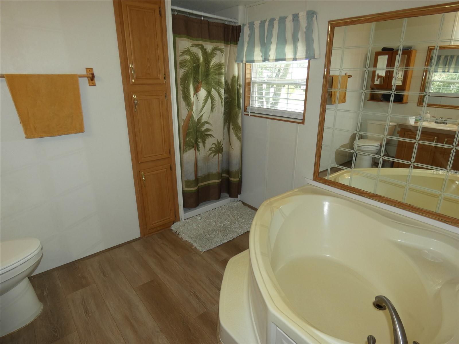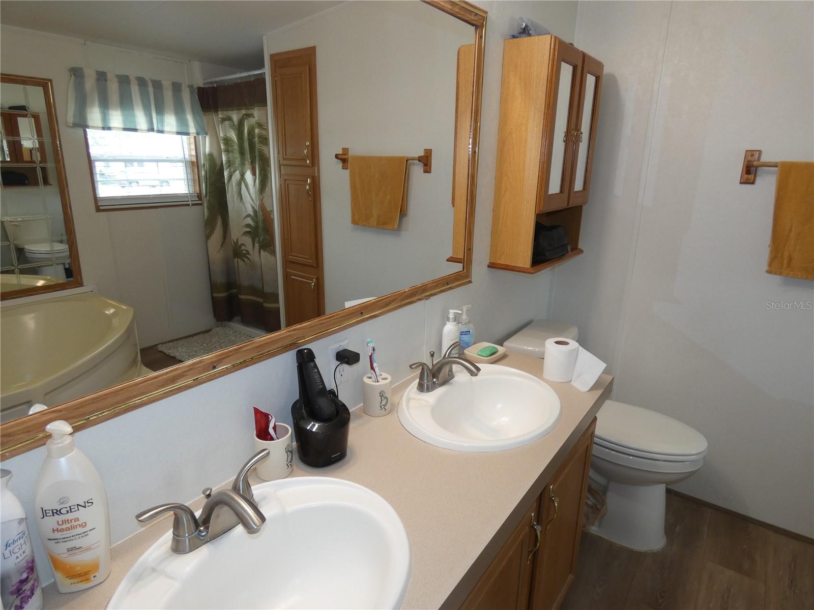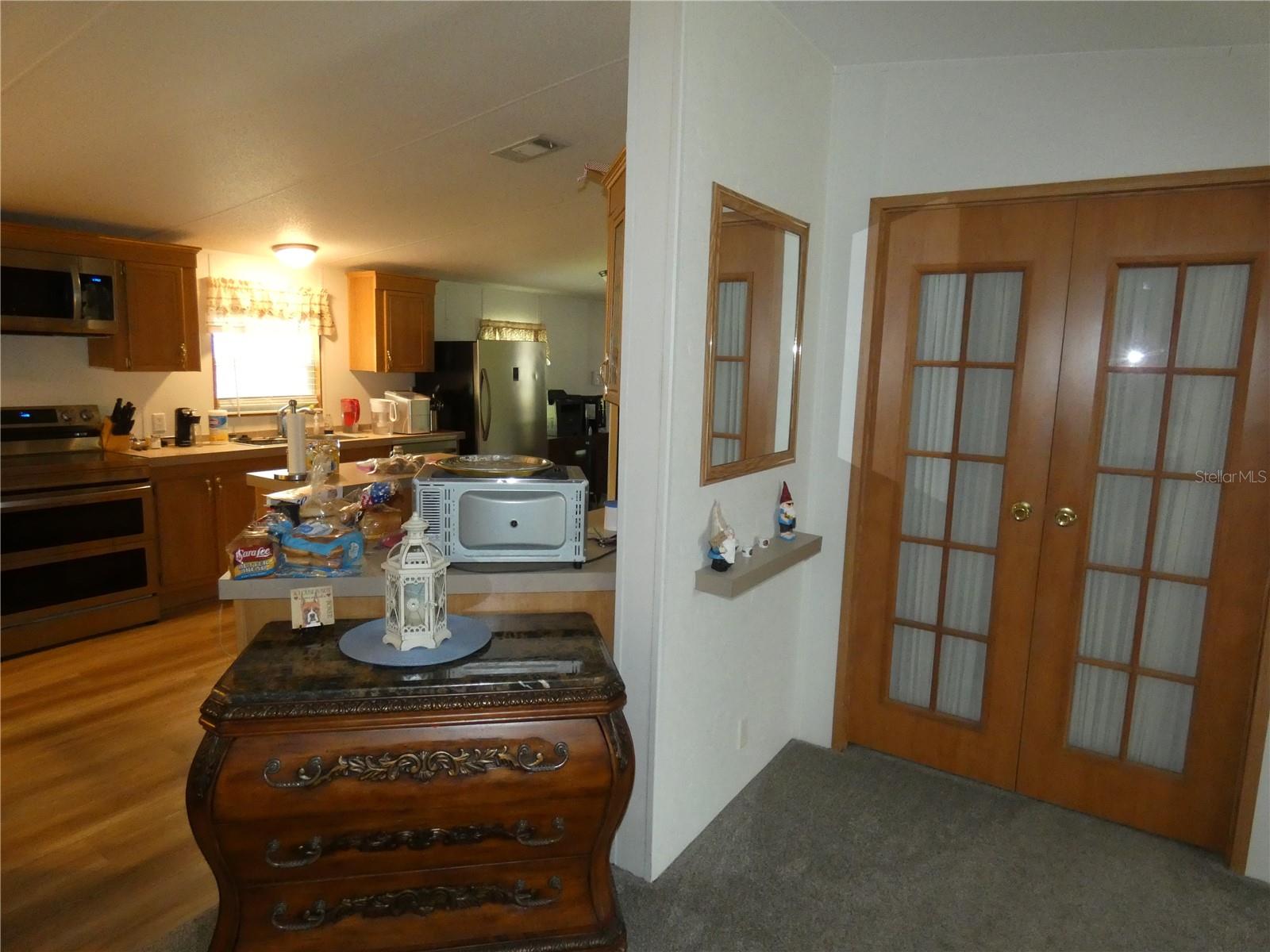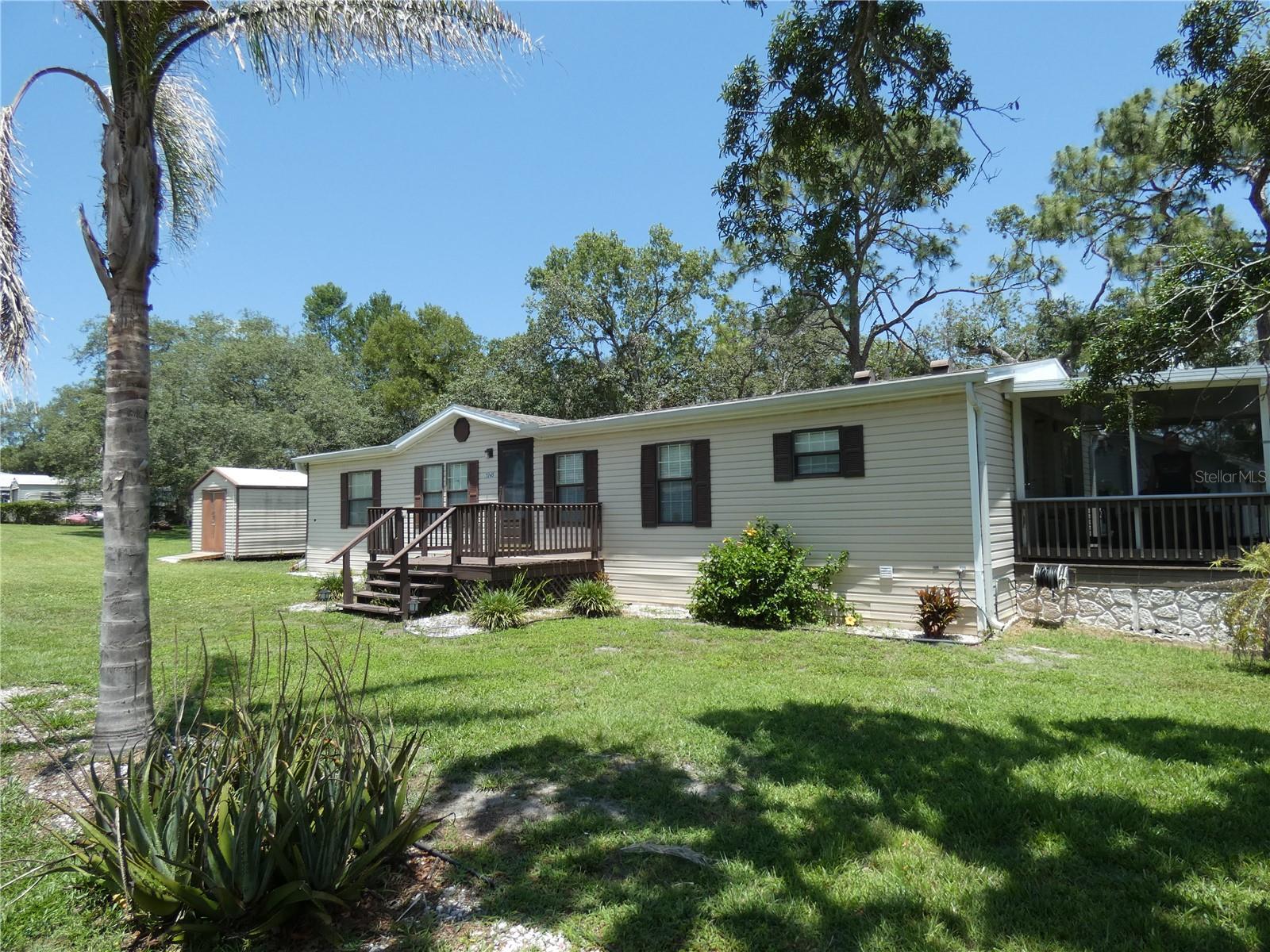 Welcome to Paradise! This beautiful well kept 2004 Manufactured home has 3 bedrooms, 2 baths and a 2 car carport. Spacious Living room /Dining room with vaulted ceilings, roomy gourmet Kitchen with island and separate Family room for relaxing in comfort. French doors lead you into primary bedroom which has large Garden tub separate shower and walk in closet. Inside Laundry area. Covered screen enclosed deck on side of house and a front porch deck too! Newer Roof 2022, HVAC 2021, Laminate floors 2023.