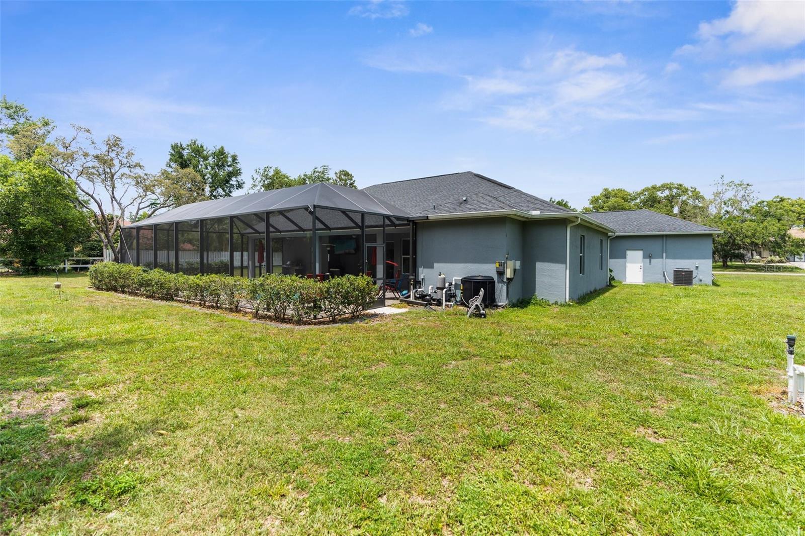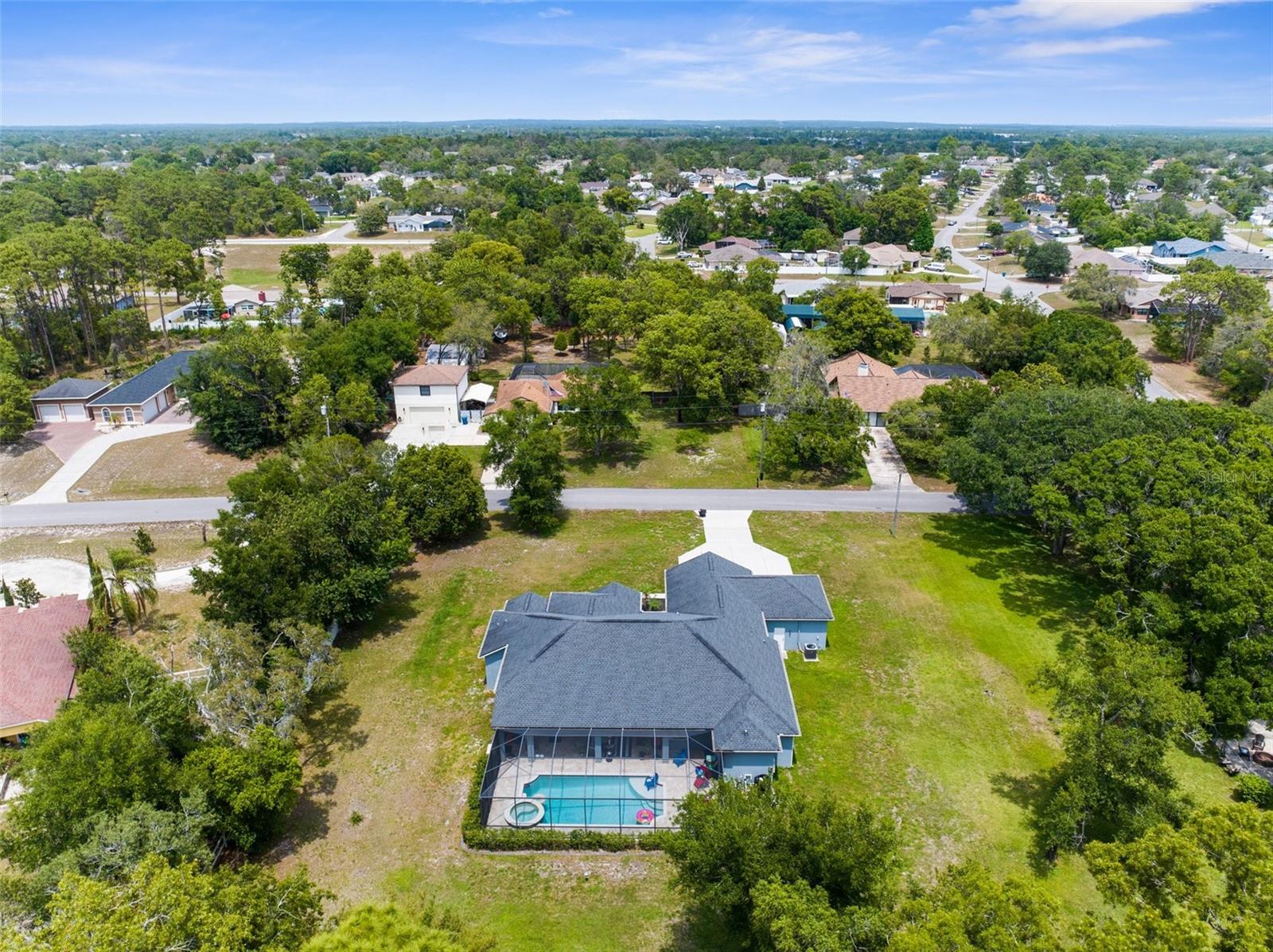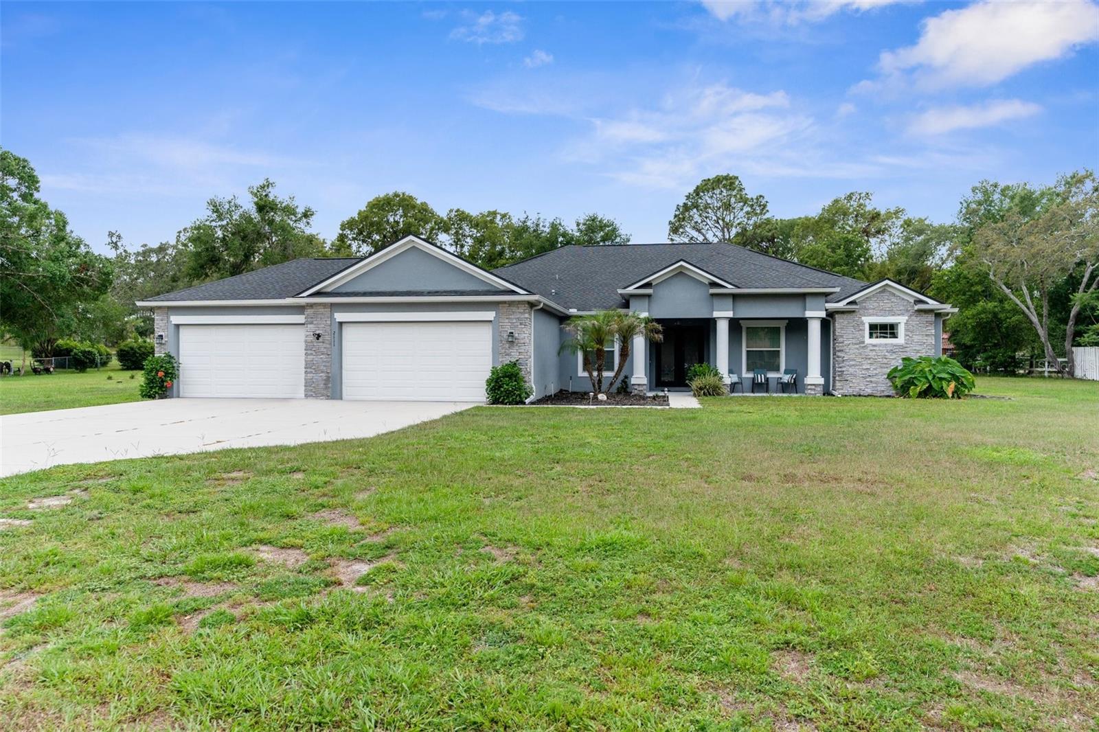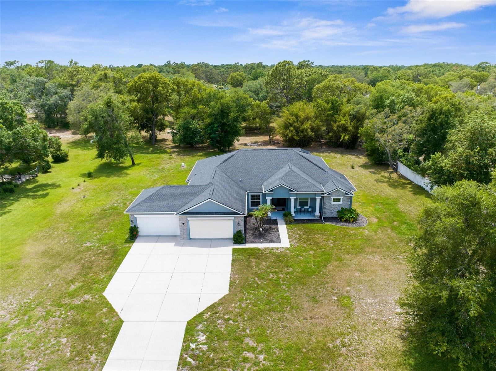 One or more photo(s) has been virtually staged. Welcome to an exceptional 4-bedroom, 3-bathroom estate in one of Spring Hill’s most sought-after areas—where luxury, privacy, and thoughtful design come together effortlessly. With no HOA and CDD, this property offers freedom and sophistication on a grand scale. Spanning 4,337 total square feet under roof, the home includes an oversized 4-car garage with 983 square feet of space and 8-foot double garage doors—ideal for oversized vehicles, a home gym, or a dream workshop setup. Step through 8-foot double front doors and into 2,739 square feet of refined living space, where 10-foot ceilings, elegant crown molding, and 5-inch baseboards define every room. The home’s main living areas feature luxury vinyl flooring for a sleek, durable finish, while the bedrooms offer plush, comfortable carpeting. In the bathrooms and laundry room, ceramic tile delivers both style and easy maintenance. At the heart of the home is a gourmet kitchen, beautifully appointed with quartz countertops, a Wi-Fi–connected wall oven, built-in microwave, cooktop with a custom hood, and a smart thermostat—a perfect blend of style, performance, and modern convenience. The cabinetry throughout the home is enhanced with modern hardware and soft-close features, adding both elegance and function. Just off the kitchen is a charming dining nook that overlooks the spacious pool deck and expansive backyard, creating a peaceful spot for morning coffee or casual meals. The primary suite is a peaceful retreat, complete with tray ceilings, an oversized fan, and a luxurious dual walk-in shower with stone flooring. The primary bath is thoughtfully designed with a centered soaking tub, creating a true spa-like experience. Every countertop throughout the home is finished in high-end quartz, creating a cohesive and refined aesthetic. A flex space within the home adds valuable versatility—perfect for use as an additional living area, home office, or playroom, depending on your needs. Outside, enjoy your private oasis on a 1.01-acre lot with well-fed irrigation to keep landscaping lush and water costs low. A custom travertine pool deck, 433 sq. ft. of covered lanai, and a heated, Wi-Fi–connected pool and spa make this the ultimate space for entertaining or unwinding. The covered lanai also features two ceiling fans, along with a cable and electric outlet—perfectly positioned for mounting a TV and creating an outdoor living room you’ll enjoy year-round. Triple sliding glass doors open fully from the living room to the lanai, offering seamless indoor-outdoor living. The expansive driveway provides ample space for guests, recreation, or large vehicles. And with the home located less than 10 minutes from shopping centers and the Suncoast Parkway, it offers unmatched convenience for both everyday errands and easy commutes. Whether you're hosting, relaxing, or working from home, this property delivers a rare blend of luxury, comfort, and smart-home innovation.