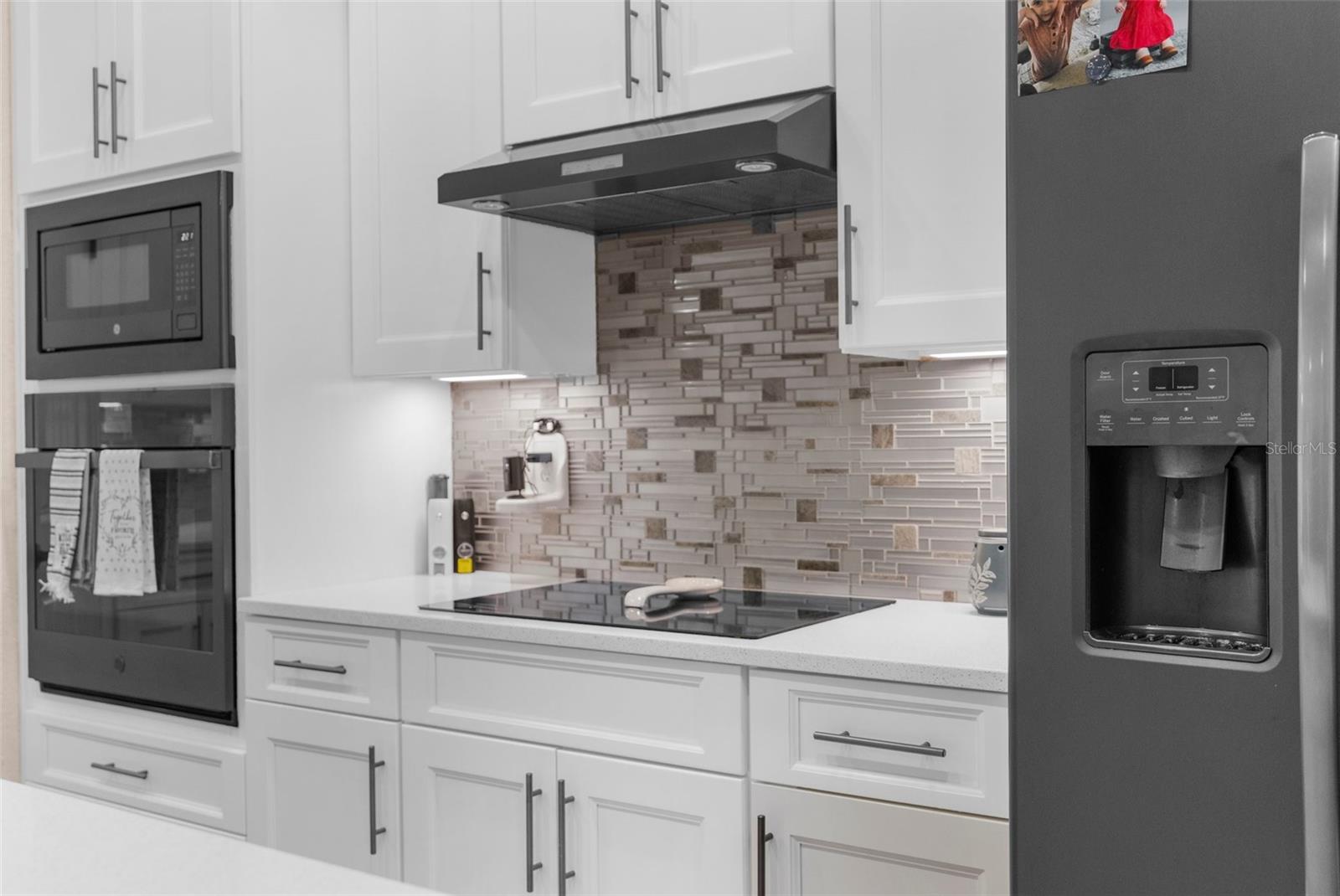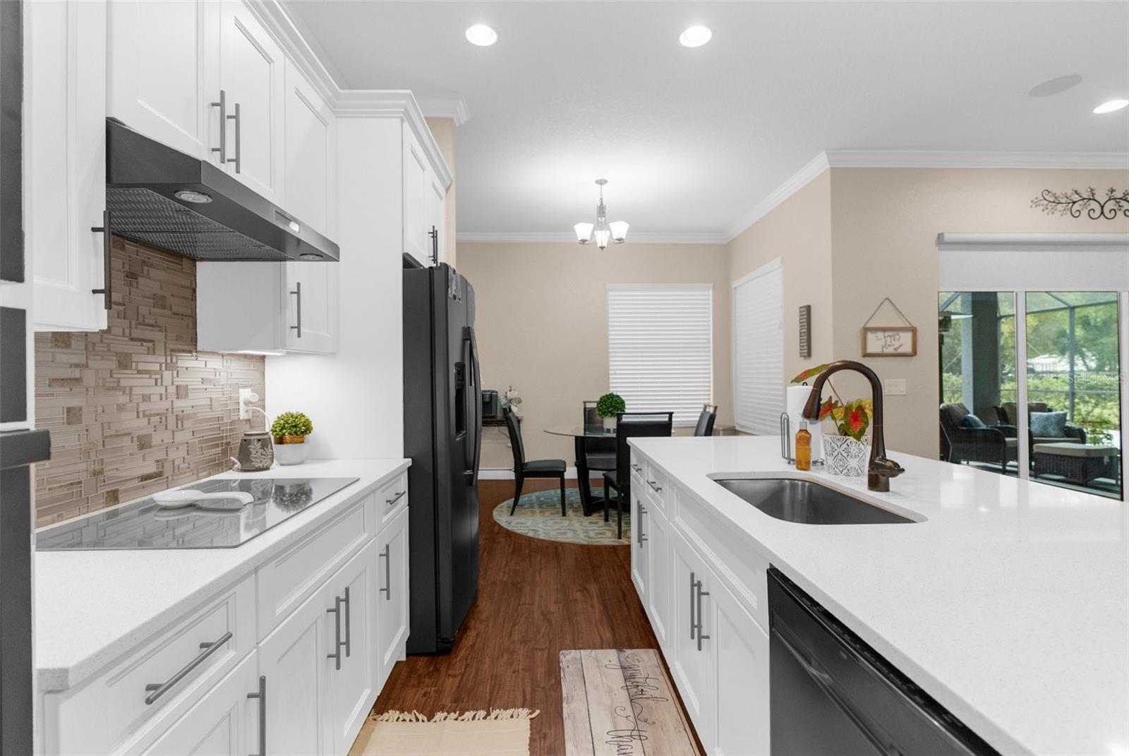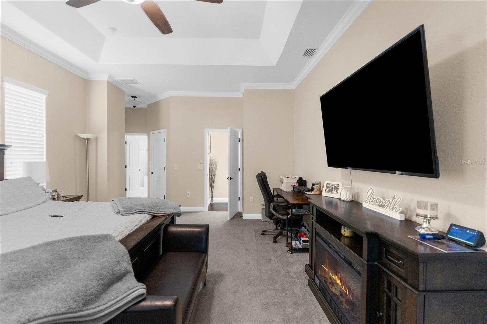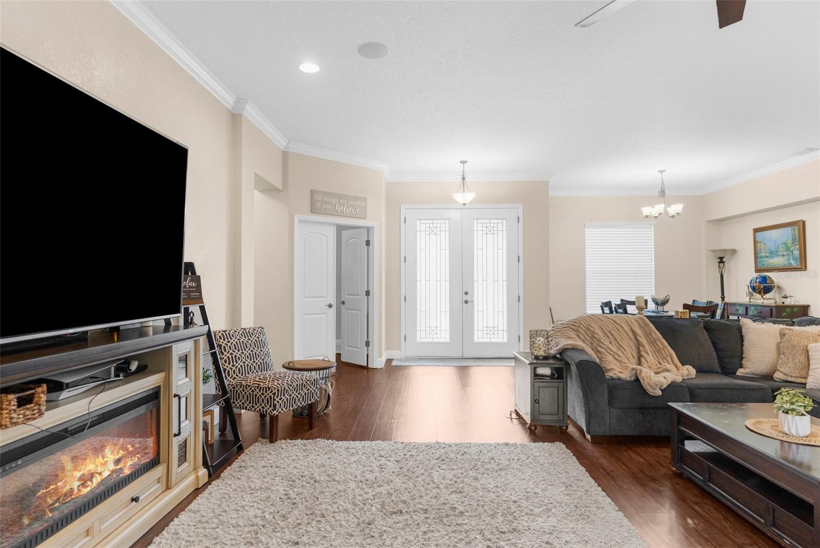 One or more photo(s) has been virtually staged. Welcome to an exceptional 4-bedroom, 3-bathroom estate in one of Spring Hill’s most sought-after areas—where luxury, privacy, and thoughtful design come together effortlessly. With no HOA and CDD, this property offers freedom and sophistication on a grand scale. Spanning 4,337 total square feet under roof, the home includes an oversized 4-car garage with 983 square feet of space and 8-foot double garage doors—ideal for oversized vehicles, a home gym, or a dream workshop setup. Step through 8-foot double front doors and into 2,739 square feet of refined living space, where 10-foot ceilings, elegant crown molding, and 5-inch baseboards define every room. The home’s main living areas feature luxury vinyl flooring for a sleek, durable finish, while the bedrooms offer plush, comfortable carpeting. In the bathrooms and laundry room, ceramic tile delivers both style and easy maintenance. At the heart of the home is a gourmet kitchen, beautifully appointed with quartz countertops, a Wi-Fi–connected wall oven, built-in microwave, cooktop with a custom hood, and a smart thermostat—a perfect blend of style, performance, and modern convenience. The cabinetry throughout the home is enhanced with modern hardware and soft-close features, adding both elegance and function. Just off the kitchen is a charming dining nook that overlooks the spacious pool deck and expansive backyard, creating a peaceful spot for morning coffee or casual meals. The primary suite is a peaceful retreat, complete with tray ceilings, an oversized fan, and a luxurious dual walk-in shower with stone flooring. The primary bath is thoughtfully designed with a centered soaking tub, creating a true spa-like experience. Every countertop throughout the home is finished in high-end quartz, creating a cohesive and refined aesthetic. A flex space within the home adds valuable versatility—perfect for use as an additional living area, home office, or playroom, depending on your needs. Outside, enjoy your private oasis on a 1.01-acre lot with well-fed irrigation to keep landscaping lush and water costs low. A custom travertine pool deck, 433 sq. ft. of covered lanai, and a heated, Wi-Fi–connected pool and spa make this the ultimate space for entertaining or unwinding. The covered lanai also features two ceiling fans, along with a cable and electric outlet—perfectly positioned for mounting a TV and creating an outdoor living room you’ll enjoy year-round. Triple sliding glass doors open fully from the living room to the lanai, offering seamless indoor-outdoor living. The expansive driveway provides ample space for guests, recreation, or large vehicles. And with the home located less than 10 minutes from shopping centers and the Suncoast Parkway, it offers unmatched convenience for both everyday errands and easy commutes. Whether you're hosting, relaxing, or working from home, this property delivers a rare blend of luxury, comfort, and smart-home innovation.
