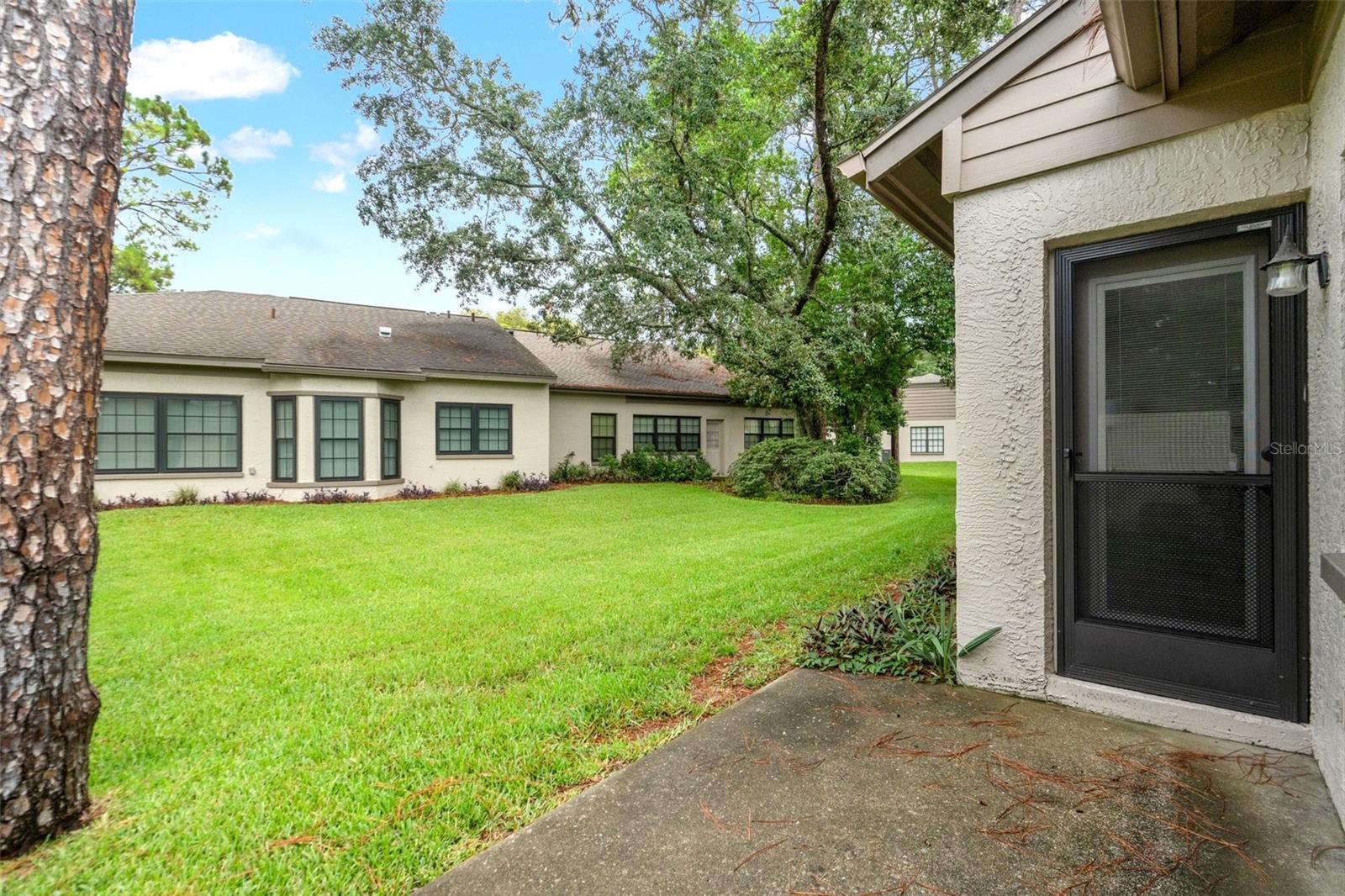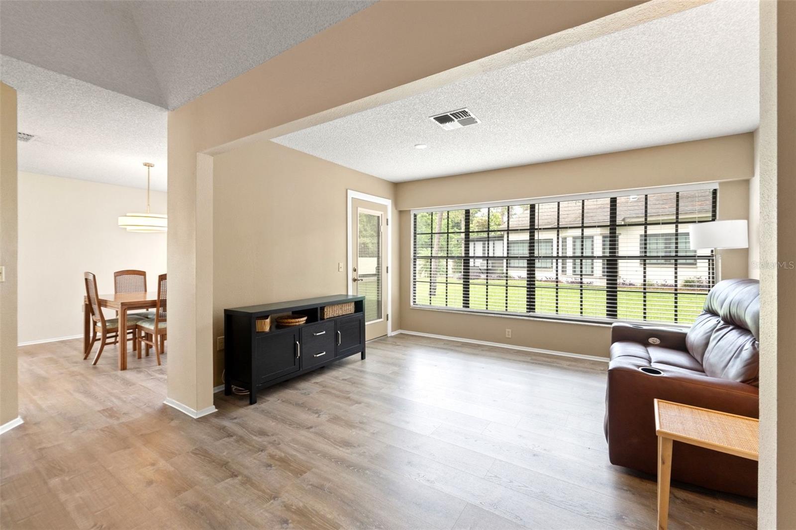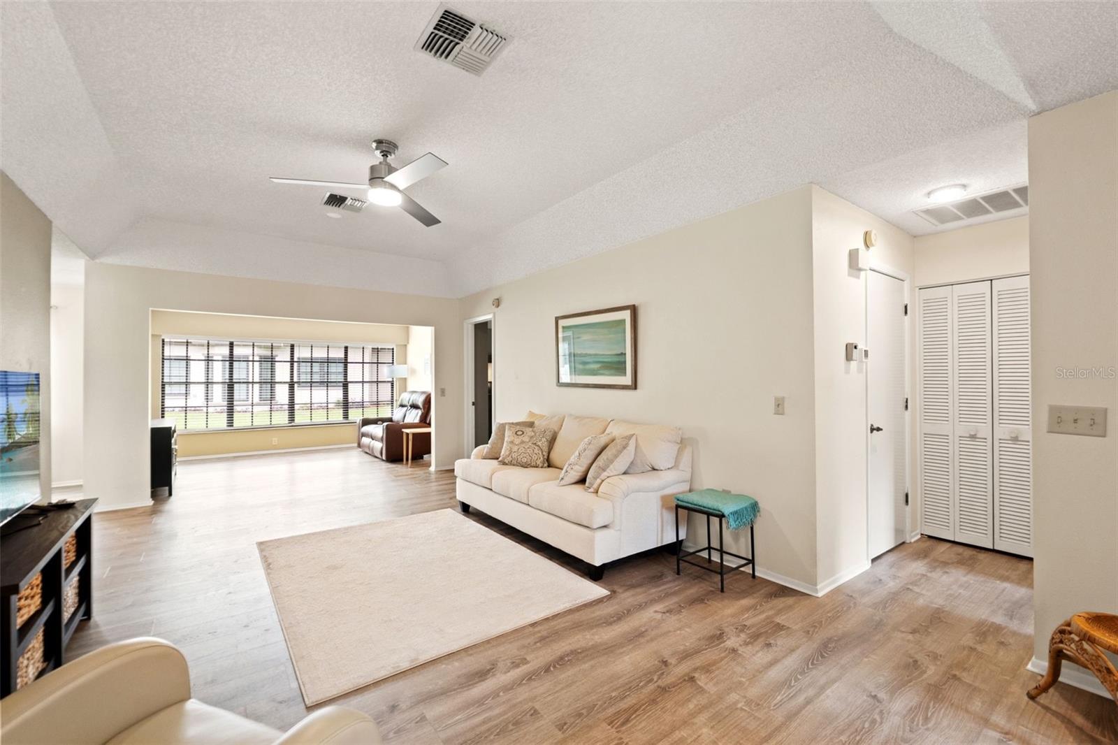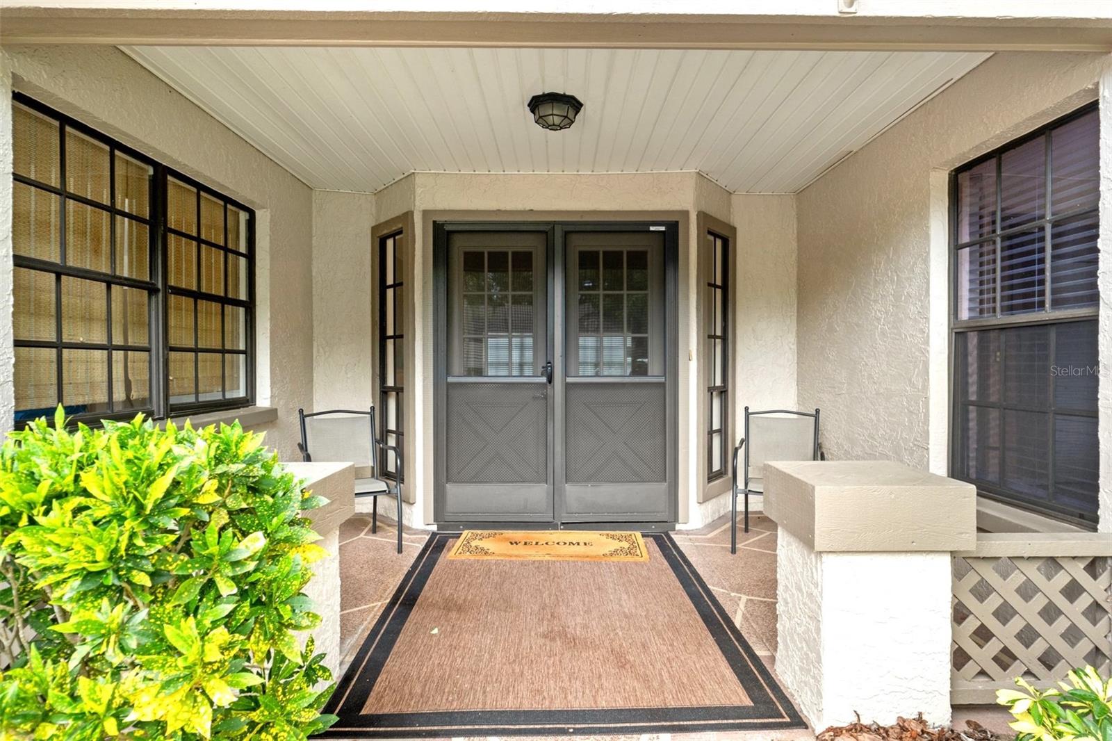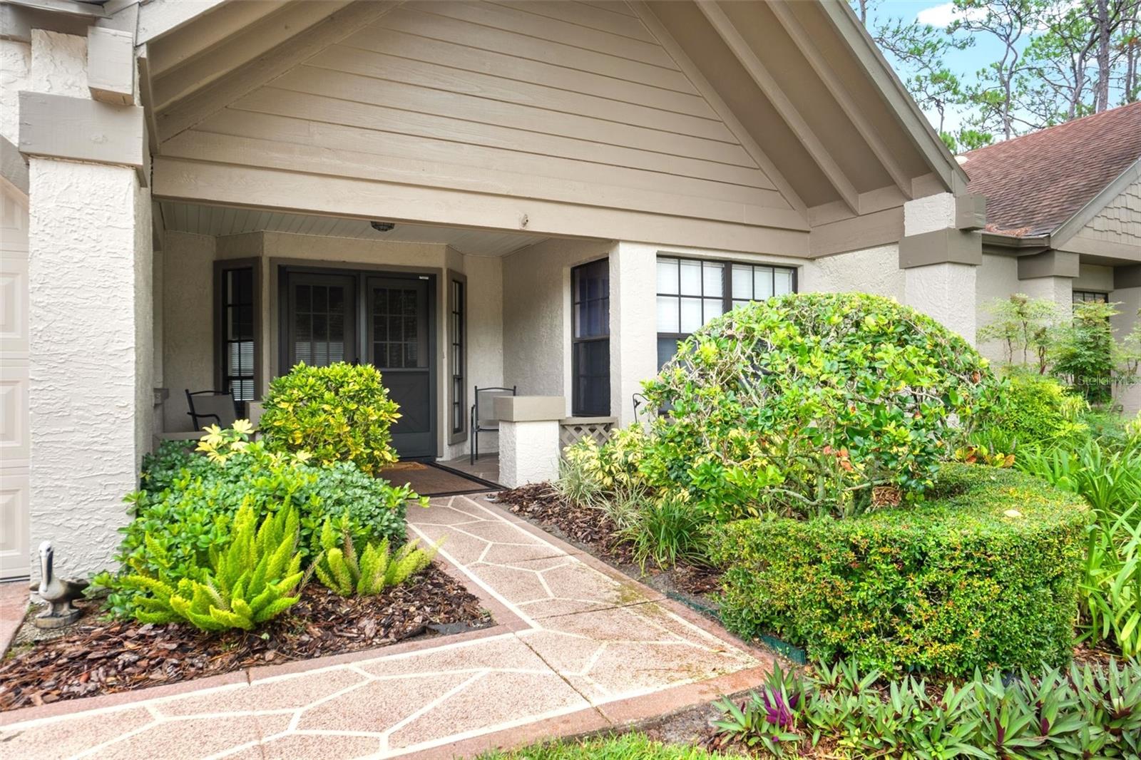 UPDATED END UNIT VILLA - FURNISHED & TURNKEY - LOCATED IN DESIRABLE TIMBER PINES Welcome to this beautifully updated end-unit villa tucked away on a quiet cul-de-sac in the highly sought-after 55+ gated golf community of Timber Pines. Being sold furnished and turnkey, this villa is move-in ready—ideal for full-time living or a seasonal retreat. Enjoy the inviting front porch, then enter through elegant double leaded glass doors into a bright and airy interior featuring luxury vinyl plank flooring throughout, cove ceilings, and new fans and light fixtures. The living room opens to a private lanai with new blinds, offering a serene, private view. The kitchen has been opened to the living area and boasts granite countertops and newer appliances, ideal for entertaining. The primary suite includes a large walk-in closet and an en-suite bath with a tub/shower combo. The guest bedroom features a spacious walk-in closet, with an adjacent guest bath offering a raised shower floor and comfort-height commode. The oversized garage features a newly painted floor and a bump-out for golf cart storage. HVAC - 2019 Roof - 2012 This home is located in a very active village within Timber Pines, which includes its own private pool for village residents. Enjoy the award-winning Timber Pines lifestyle: 4 pristine golf courses, pickleball, tennis, 2 geothermal pools, performing arts center, clubhouse and restaurant, state-of-the-art fitness and wellness center, billiards, woodshop, arts & crafts center, Paws Park, Billiards, SO MUCH MORE! and over 100 clubs and activities. Monthly maintenance fee: $112.00 Golf cart available for purchase outside of contract. CALL TODAY!