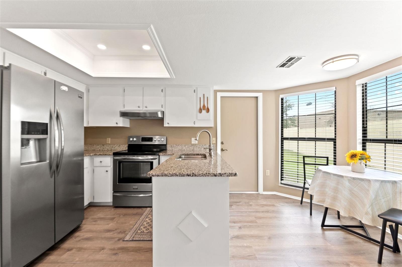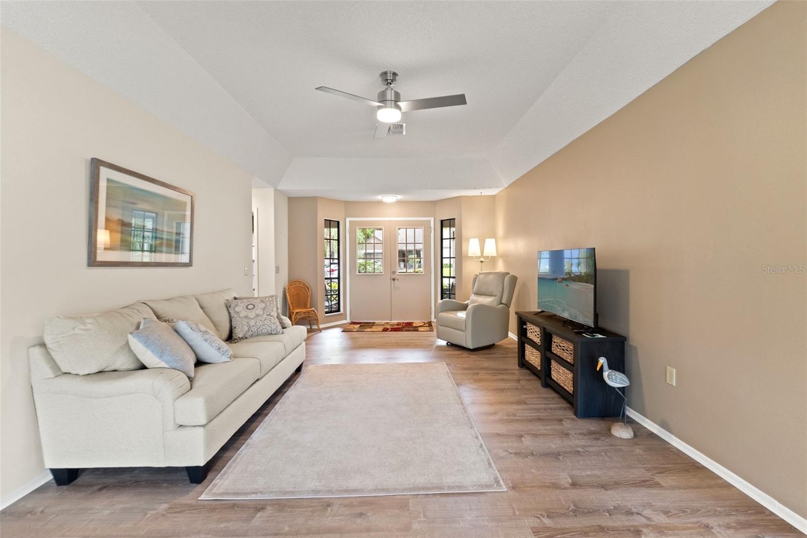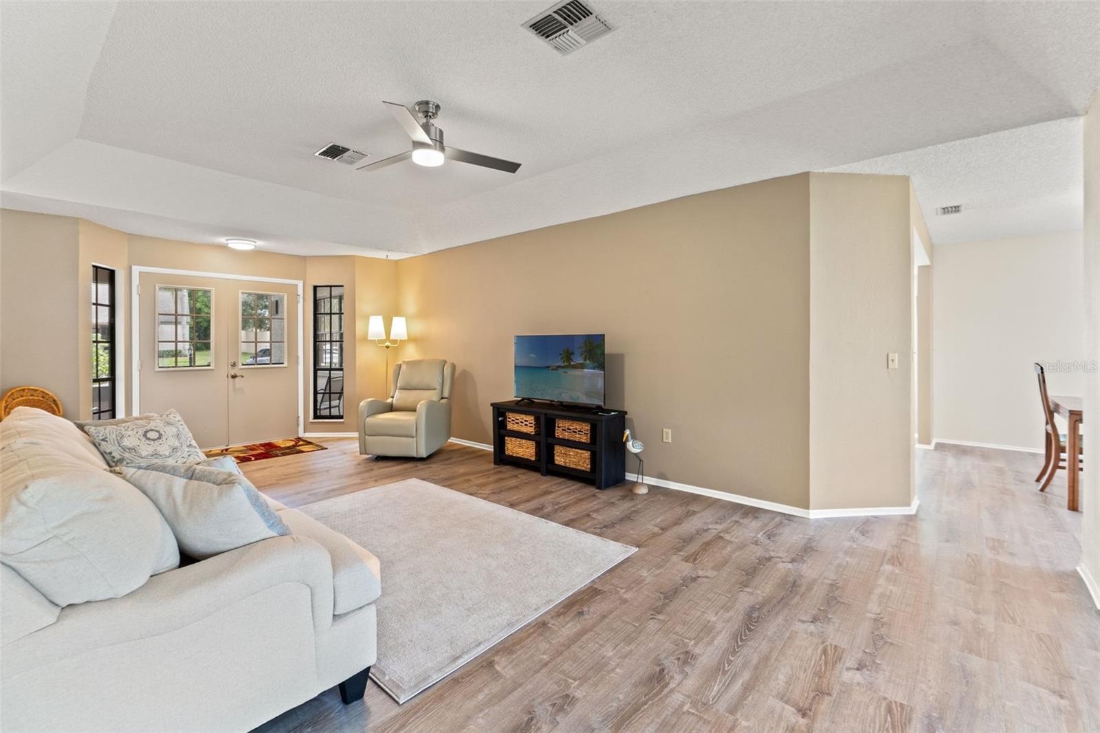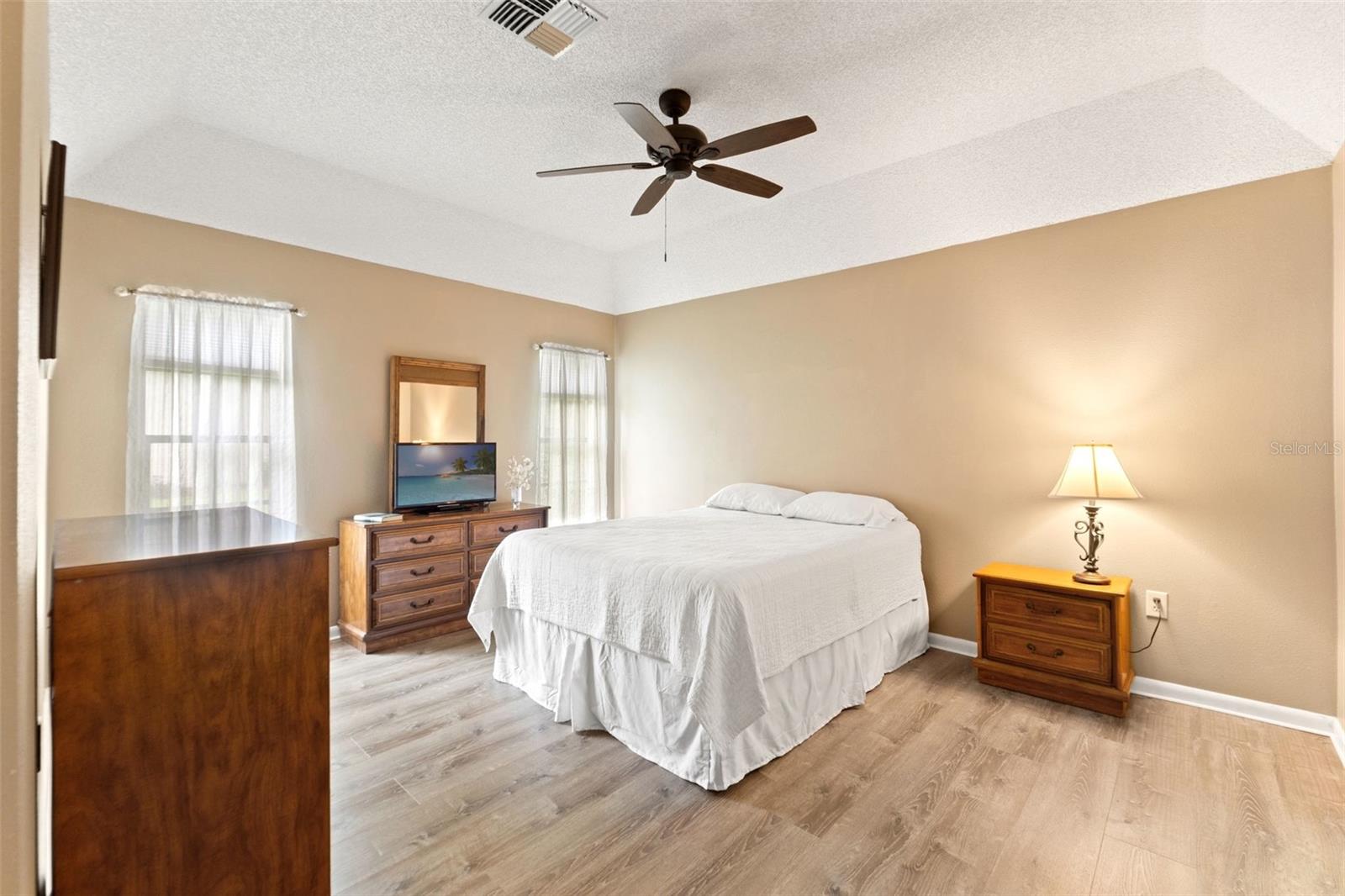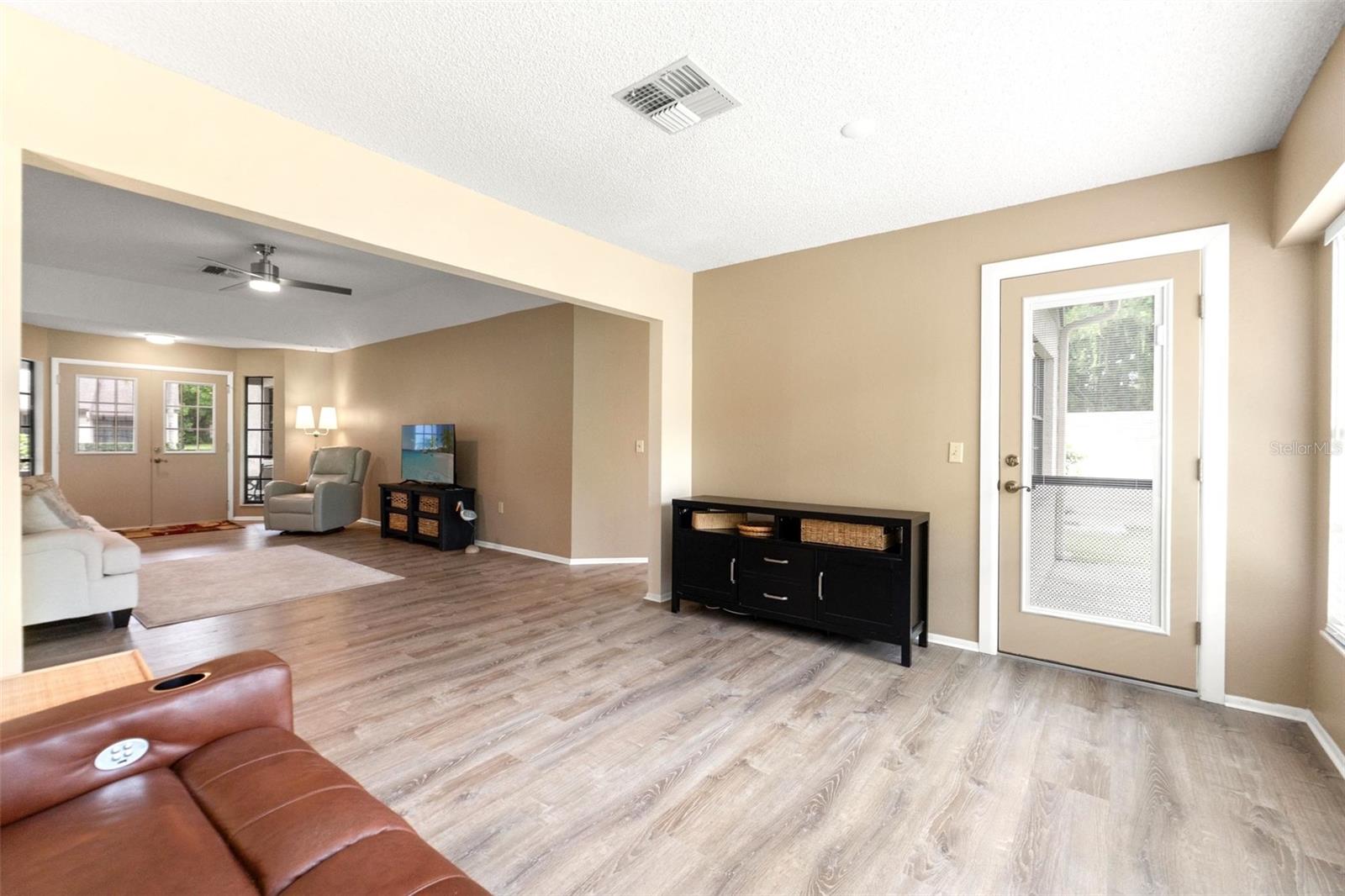 UPDATED END UNIT VILLA - FURNISHED & TURNKEY - LOCATED IN DESIRABLE TIMBER PINES Welcome to this beautifully updated end-unit villa tucked away on a quiet cul-de-sac in the highly sought-after 55+ gated golf community of Timber Pines. Being sold furnished and turnkey, this villa is move-in ready—ideal for full-time living or a seasonal retreat. Enjoy the inviting front porch, then enter through elegant double leaded glass doors into a bright and airy interior featuring luxury vinyl plank flooring throughout, cove ceilings, and new fans and light fixtures. The living room opens to a private lanai with new blinds, offering a serene, private view. The kitchen has been opened to the living area and boasts granite countertops and newer appliances, ideal for entertaining. The primary suite includes a large walk-in closet and an en-suite bath with a tub/shower combo. The guest bedroom features a spacious walk-in closet, with an adjacent guest bath offering a raised shower floor and comfort-height commode. The oversized garage features a newly painted floor and a bump-out for golf cart storage. HVAC - 2019 Roof - 2012 This home is located in a very active village within Timber Pines, which includes its own private pool for village residents. Enjoy the award-winning Timber Pines lifestyle: 4 pristine golf courses, pickleball, tennis, 2 geothermal pools, performing arts center, clubhouse and restaurant, state-of-the-art fitness and wellness center, billiards, woodshop, arts & crafts center, Paws Park, Billiards, SO MUCH MORE! and over 100 clubs and activities. Monthly maintenance fee: $112.00 Golf cart available for purchase outside of contract. CALL TODAY!