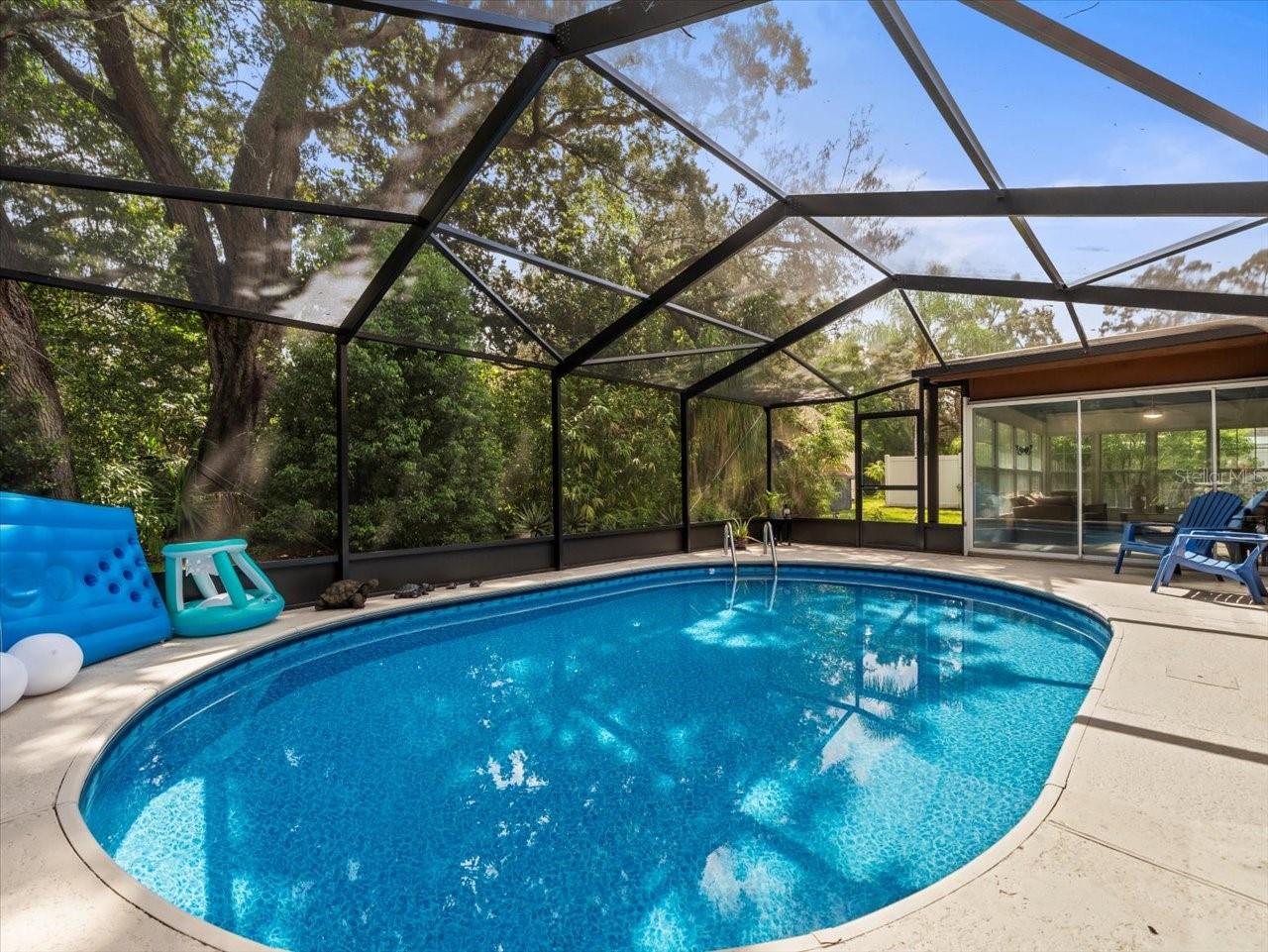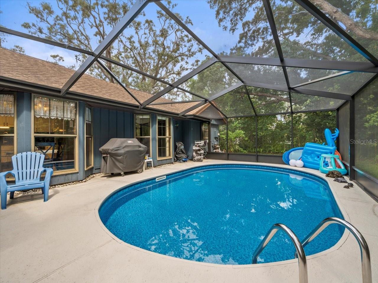 Welcome to Your Own Slice of Florida Paradise! Nestled in the serene community of Spring Hill, FL, this charming ranch-style home offers the perfect blend of comfort, style, and laid-back Florida living. Step inside and feel instantly at home. Enjoy a refreshing dip in your screened-in pool, unwind in the sunny Florida room with beautiful backyard views, or host family and friends in the spacious living and dining area designed for gatherings and everyday living. The thoughtfully designed floor plan features bedrooms on opposite sides for added privacy. Your primary suite includes a generous walk-in closet and private en-suite bathroom — ideal for peaceful mornings and restful nights. The updated kitchen boasts an inviting eat-in space overlooking the pool, seamlessly connecting to a cozy family room highlighted by a wood-burning fireplace — perfect for cooler evenings. Step outside to the lush backyard complete with a handy shed, offering plenty of space for gardening, hobbies, or simply relaxing outdoors. Plus, the house and shed recently had the siding replaced, adding fresh curb appeal and extra peace of mind. Located in a friendly, quiet neighborhood, this home offers the tranquility of suburban life with easy access to Spring Hill's shopping, dining, and entertainment. Picture starting your day to the sound of birdsong and ending it with stunning sunsets just minutes away on the Gulf Coast beaches. Notable upgrades and features: Roof replaced in 2014 HVAC system updated in 2019 Repaired sinkhole home — fully insurable with engineers' completion report Recently replaced siding on both the house and shed Whether you're searching for a peaceful retreat or a welcoming space to entertain, this home truly has it all. Don't miss the chance to make it yours — come see it today and experience why this is more than just a house… it’s home.