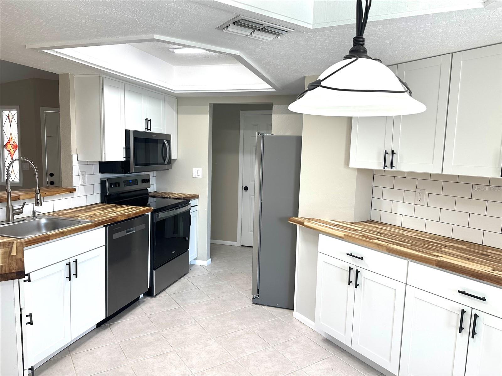 Location, Location, Location! Welcome to this charming and completely updated 3 bedroom, 2.5 bath, 2 Car Garage home. Enter through the beautifully landscaped walkway to the front entry and a welcoming floor plan that flows from the light-filled living areas. The spacious master bedroom has a walk-in closet and an en-suite featuring a shower. This split plan has two additional bedrooms with one set up as an in-law suite with a private entrance, a laundry room, and a kitchenette. This flex space would also make a great game room! The fenced backyard is an open canvas with a storage shed. Location is amazing and convenient with easy access to our pristine Nature Coast amenities, Weeki Wachee River for kayaking, Gulf of Mexico for award winning boating, easy commute to Tampa or St. Pete, airports via Suncoast Parkway, all retail stores and restaurants. New interior and Exterior paint, appliances, fixtures, windows, cabinets, and new carpet. The drain field, hot water heater, condenser, and garage door are newer also. MOVE-IN READY. Bring the family. Call TODAY for a showing. This one will not last long!