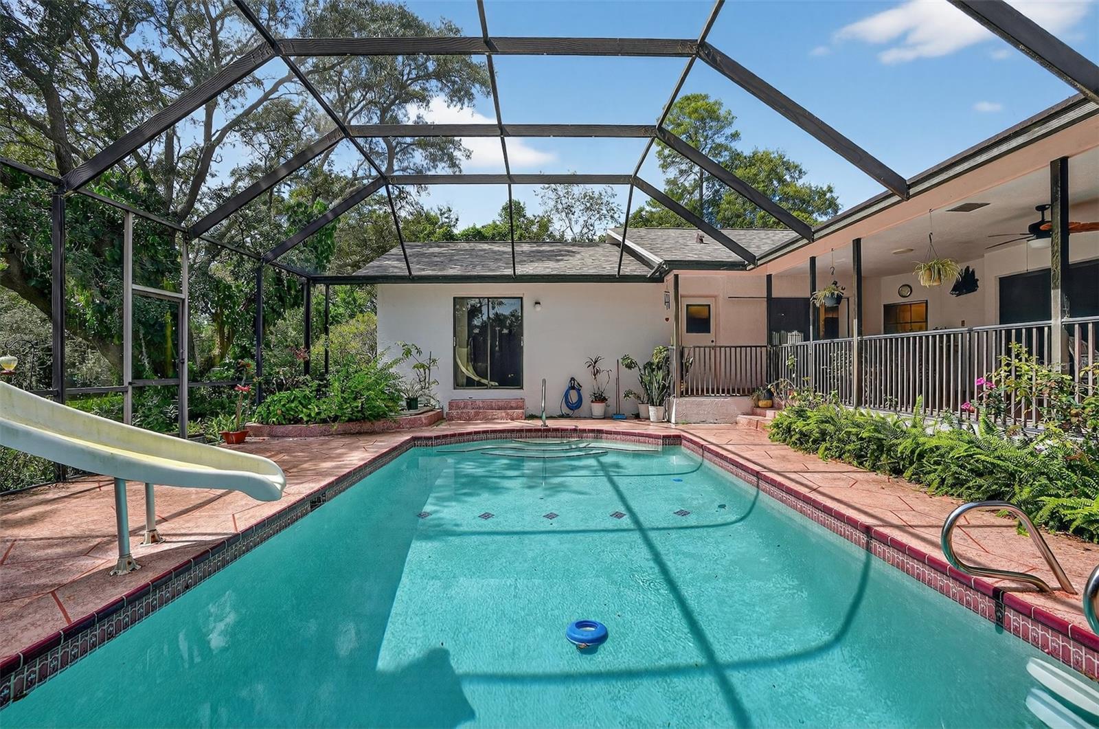Brand-new roof installed May 2025, A/C 2018 for added peace of mind. This retreat is on .70 acres for added privacy and serenity outdoors. This hidden gem features a 4-bedroom retreat with pool in an affluent gated community, just minutes from the Weeki Wachee Springs State Park, home of the famous mermaids. Enjoy paddle boarding, kayaking or just floating, while swimming with the manatees. All just minutes from your doorstep. Low HOA fees and no added CDD (Community Development District) expense. Welcome to this inviting one-story home, tucked at the end of a quiet cul-de-sac. Surrounded by mature landscaping and a lovingly cared-for garden, this property offers peaceful living with plenty of space both inside and out. Step inside to find a neutral palette and freshly painted living room, kitchen, family room, and bathrooms, creating a bright, clean, and move-in ready atmosphere. The elegant floor plan features 4 oversized bedrooms, with the primary suite privately located on the opposite side of the home for added comfort and privacy. A spacious primary bath with its own solarium, shower and separate tub, that offers instant stress relief at the end of your day. The large screened-in lanai is perfect for year-round enjoyment and is accessible from the primary bedroom, formal living room, dining area, and a bathroom—creating a natural flow for indoor/outdoor living. Vaulted ceilings throughout the home add an airy elegance, while the sunken family room area and cozy fireplace sets the stage for warmth and ambiance during cooler evenings or holiday gatherings. Sliding glass pocket doors expand the space, from the primary bedroom, formal living, and breakfast area, with seamlessly unobstructed views of the expansive pool area and backyard. This private outdoor oasis provides plenty of room for family gatherings, gardening, or simply relaxing in the Florida sunshine. The oversized garage provides plenty of room for your workshop, storage, or recreational toys like a golf cart or jet ski, and leads directly into a large, well-appointed laundry room with its own half bath—a perfect blend of convenience and functionality. Whether you’re looking to add modern touches or personalize the space further, this home presents limitless possibilities. Ideal for a growing family or anyone seeking a peaceful retreat with room to spread out and make memories. Located just minutes from local attractions, shopping, restaurants, medical and more. Schedule your showing today and make this amazing home yours!
