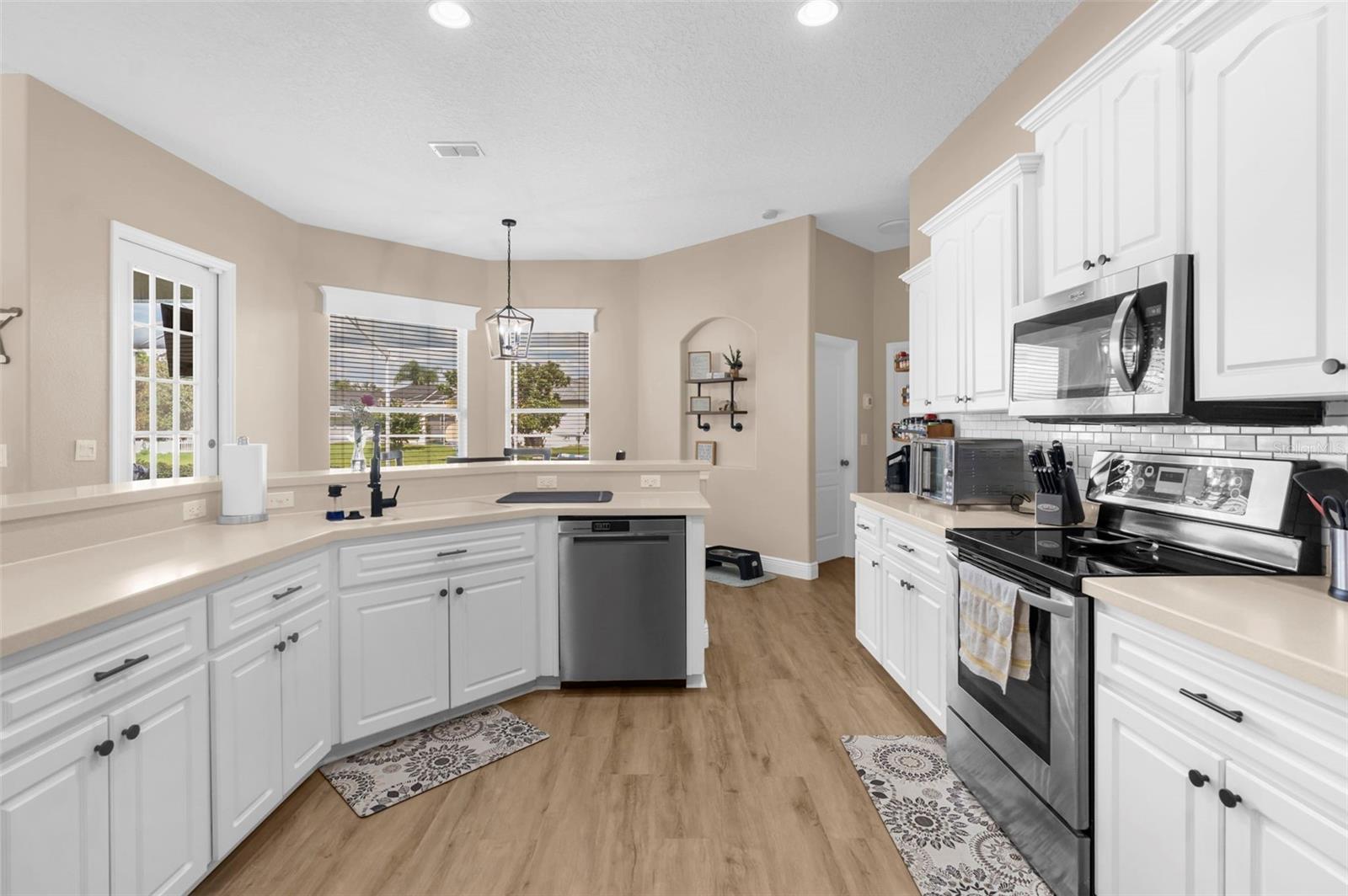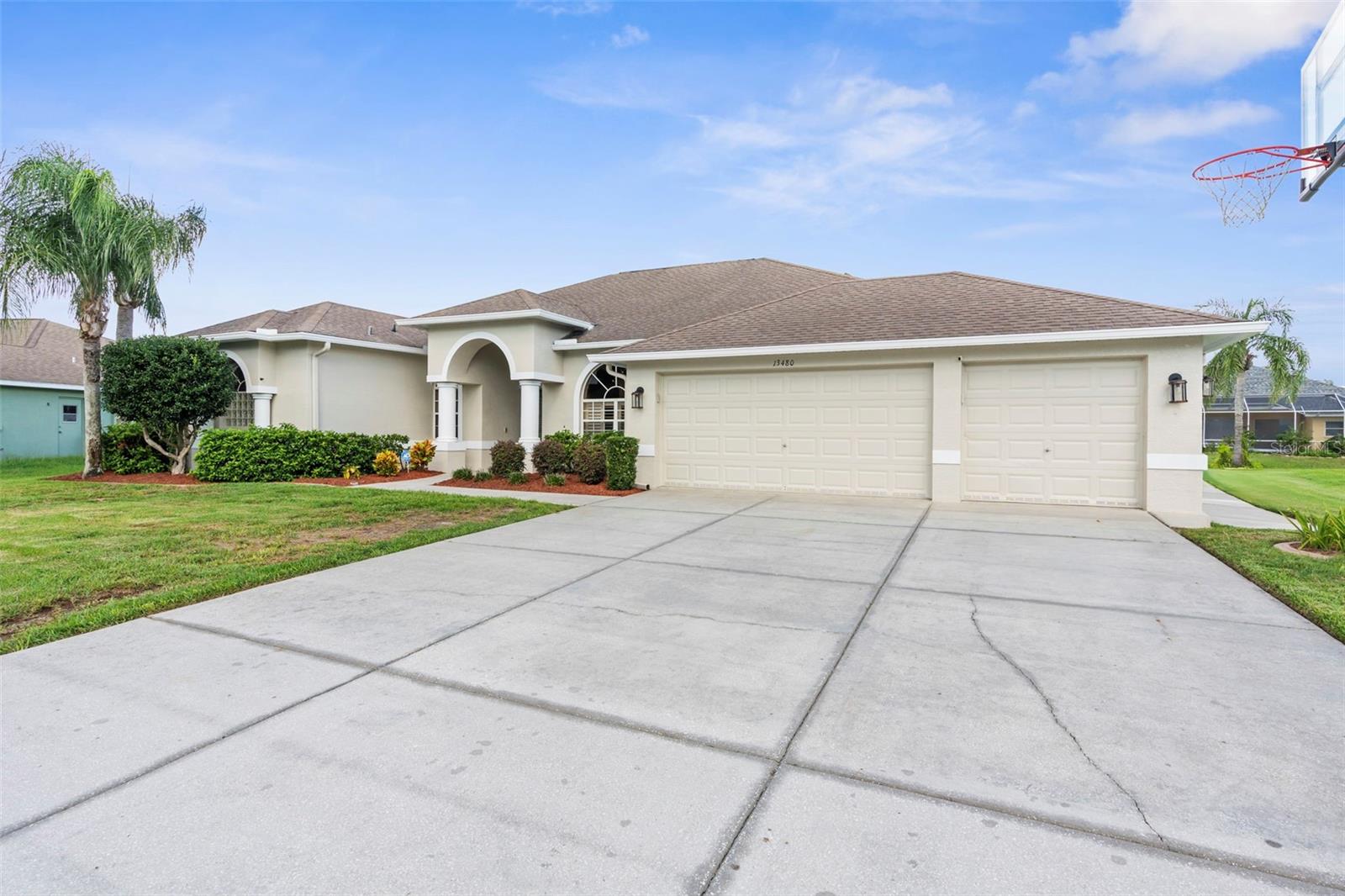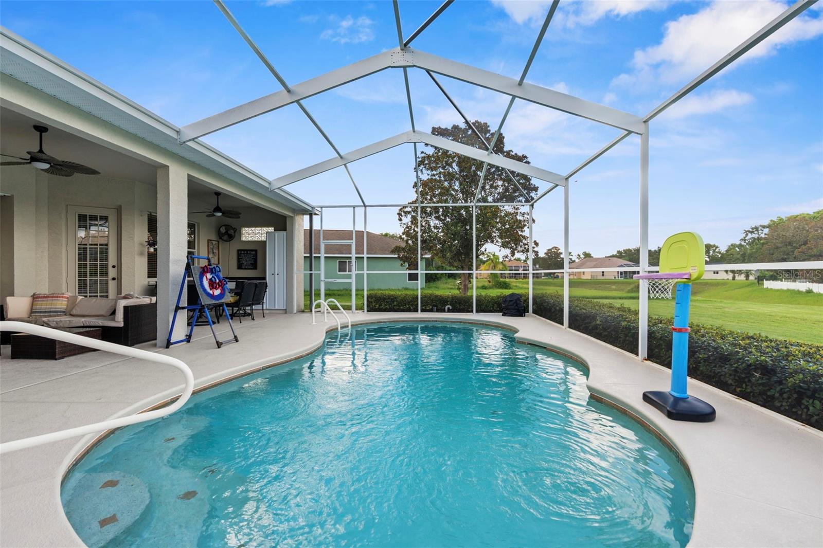 One or more photo(s) has been virtually staged. BACK ON MARKET DUE TO BUYER'S CIRCUMSTANCES; NO FAULT OF THE SELLERS! MOTIVATED SELLER!! HUGE PRICE IMPROVEMENT!! Welcome to this beautifully maintained MOVE-IN READY, 3-bedroom + den, 2-bathroom pool home situated on an expansive 0.40-acre lot in the desirable gated community of Pristine Place. With a bright open floor plan, this home is perfect for both everyday living and entertaining. This home offers a spacious split floor plan designed for both comfort and privacy. Step inside to find new luxury vinyl plank (LVP) flooring throughout the main living areas, and master bedroom, and a remodeled master bathroom that brings spa-like luxury to your everyday routine. The guest bathroom has also been tastefully updated and includes direct access to the pool, perfect for seamless indoor-outdoor living. Enjoy sunny Florida days in the screened-in pool area, ideal for entertaining or relaxing in your private backyard oasis, complete with a solar heating system so you can enjoy year-round swimming while keeping energy costs down. Additional features include a large indoor laundry room and a 3-car garage, providing plenty of storage and workspace. Fresh interior and exterior paint for a clean, modern look. Don't miss your opportunity to live in one of the area's most sought-after neighborhoods with low HOA fees, community amenities, and convenient access to shopping, dining, and the Suncoast Parkway.