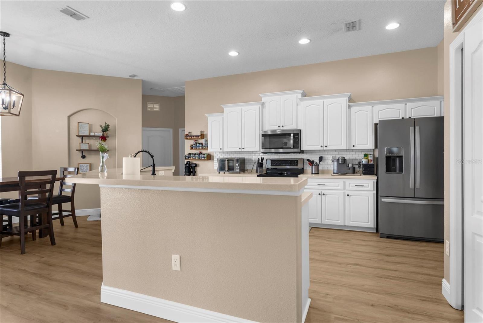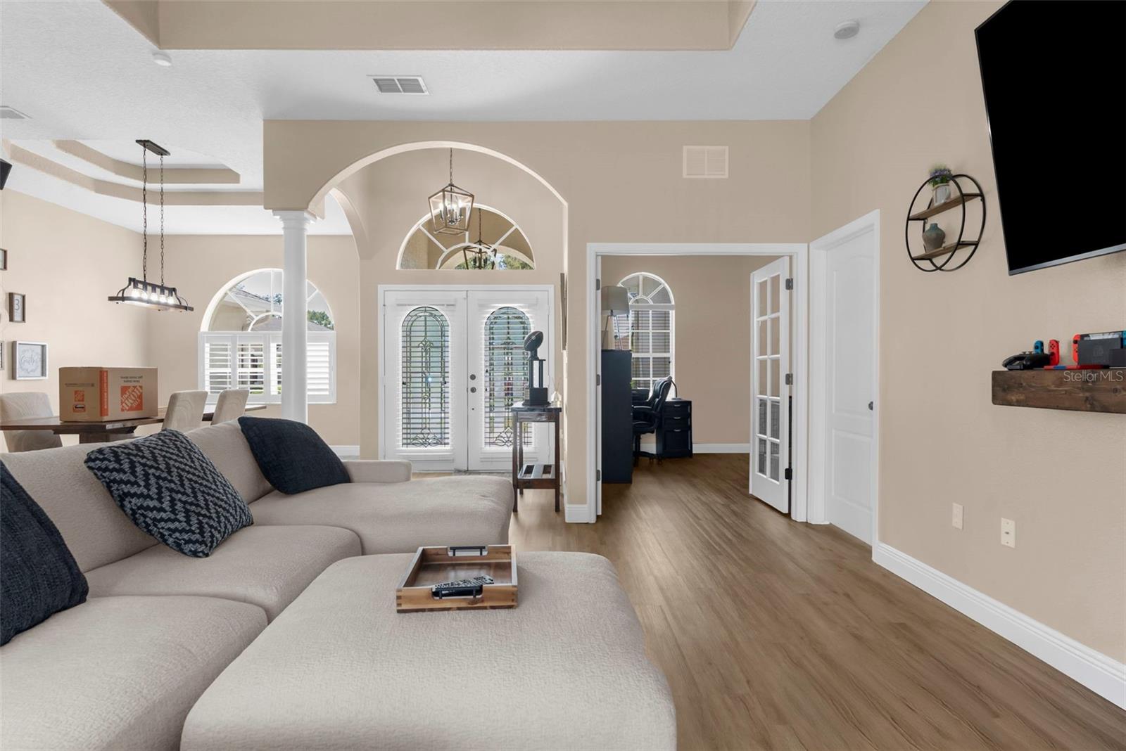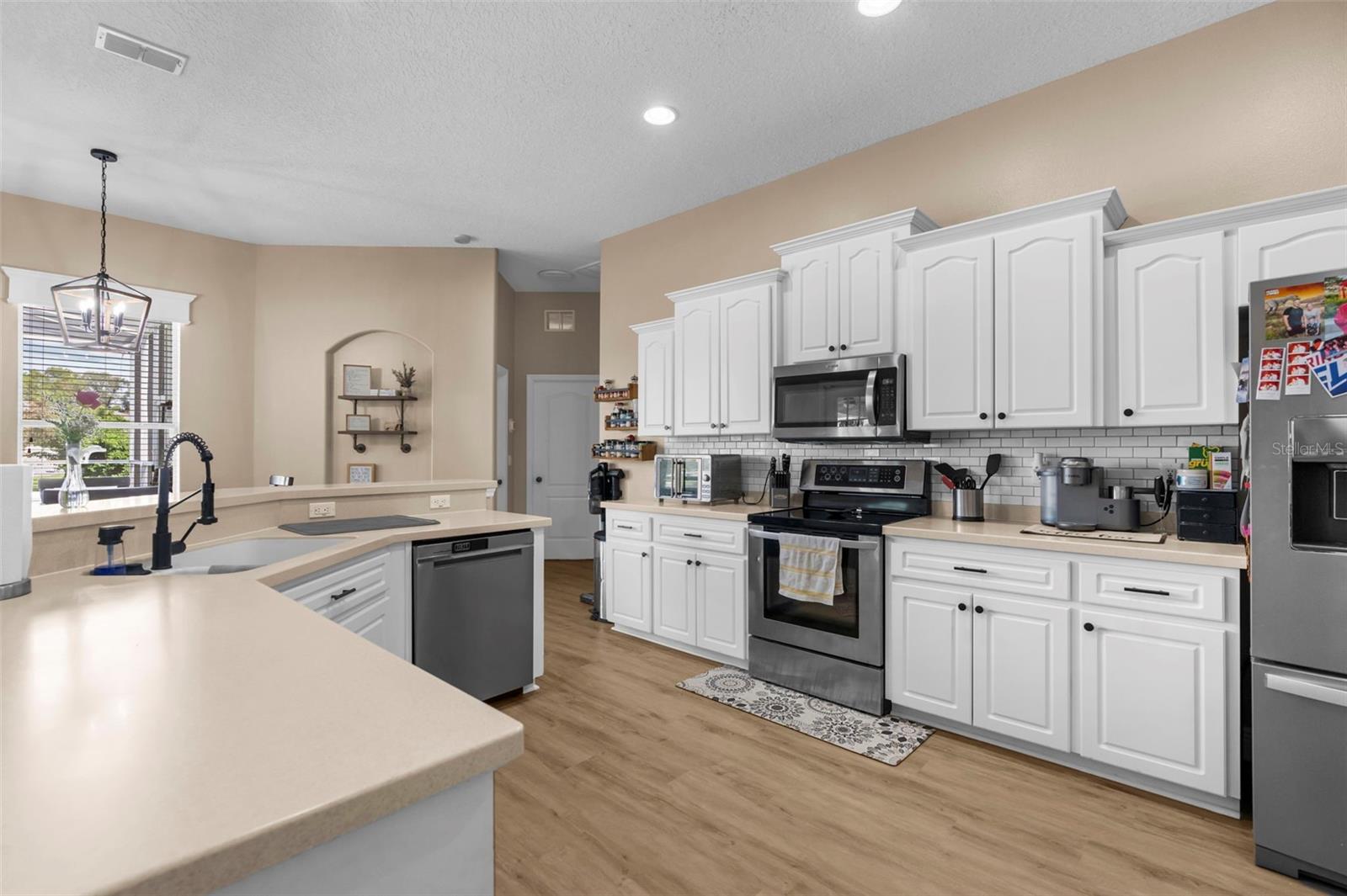 One or more photo(s) has been virtually staged. BACK ON MARKET DUE TO BUYER'S CIRCUMSTANCES; NO FAULT OF THE SELLERS! MOTIVATED SELLER!! HUGE PRICE IMPROVEMENT!! Welcome to this beautifully maintained MOVE-IN READY, 3-bedroom + den, 2-bathroom pool home situated on an expansive 0.40-acre lot in the desirable gated community of Pristine Place. With a bright open floor plan, this home is perfect for both everyday living and entertaining. This home offers a spacious split floor plan designed for both comfort and privacy. Step inside to find new luxury vinyl plank (LVP) flooring throughout the main living areas, and master bedroom, and a remodeled master bathroom that brings spa-like luxury to your everyday routine. The guest bathroom has also been tastefully updated and includes direct access to the pool, perfect for seamless indoor-outdoor living. Enjoy sunny Florida days in the screened-in pool area, ideal for entertaining or relaxing in your private backyard oasis, complete with a solar heating system so you can enjoy year-round swimming while keeping energy costs down. Additional features include a large indoor laundry room and a 3-car garage, providing plenty of storage and workspace. Fresh interior and exterior paint for a clean, modern look. Don't miss your opportunity to live in one of the area's most sought-after neighborhoods with low HOA fees, community amenities, and convenient access to shopping, dining, and the Suncoast Parkway.