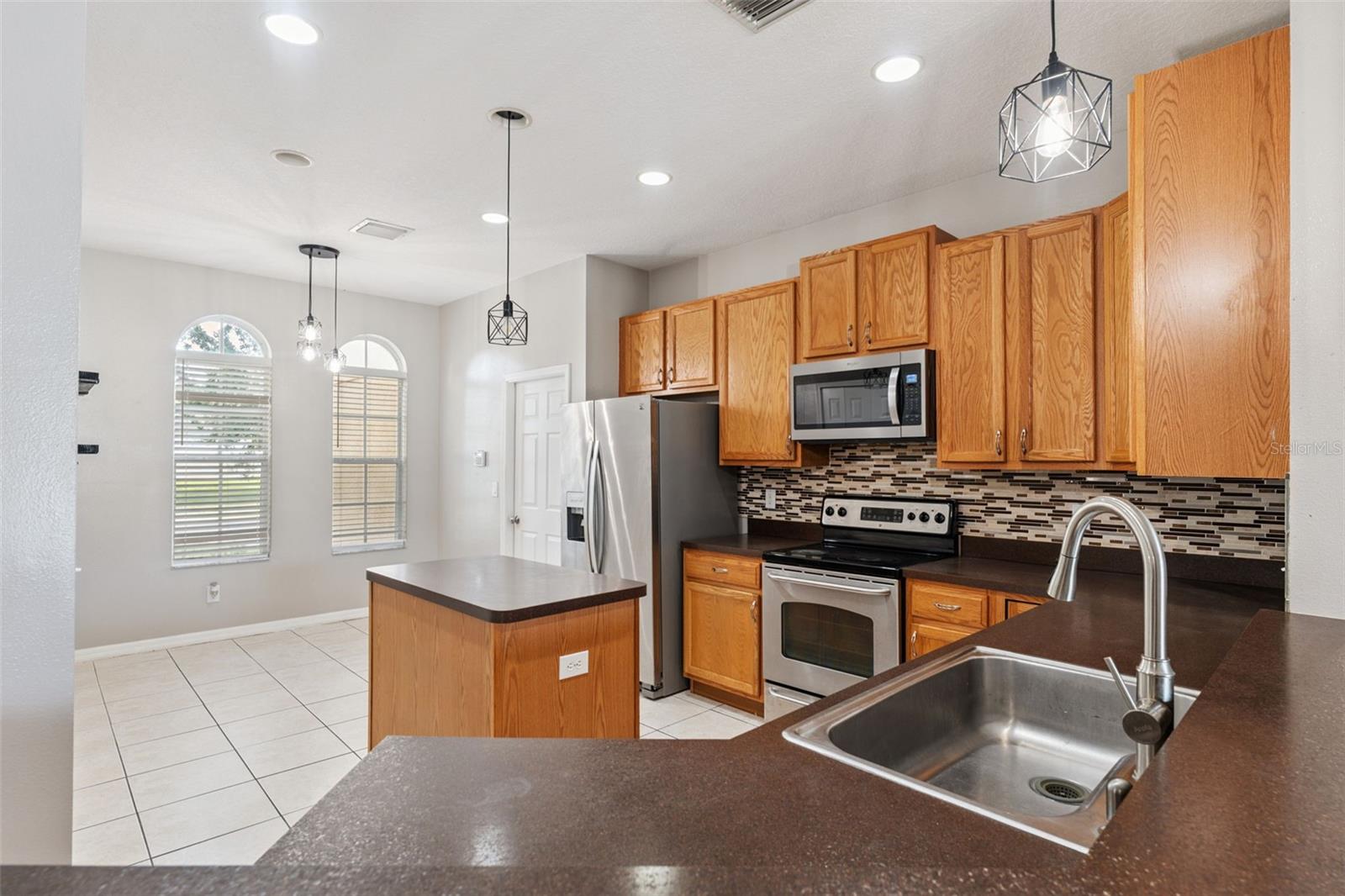 One or more photo(s) has been virtually staged. Step inside this beautifully maintained five-bedroom, three-bathroom home, where thoughtful design meets everyday comfort. The inviting exterior showcases timeless charm with arched windows, a neutral-toned facade, and a covered front porch set beneath the shade of a mature tree. As you enter, natural light floods the foyer through sidelights and a transom window, highlighting the high ceilings and rich dark wood flooring. The seamless flow into the open family room reveals tiled flooring, arched transitions, and oversized sliding doors that frame views of the covered patio and fully fenced backyard. The kitchen is both functional and stylish with wood cabinetry, stainless steel appliances, stone countertops, a central island with pendant lighting, and ample dining space perfect for gatherings. The primary suite serves as a private retreat with warm wood floors, direct patio access, and a spa-like bathroom featuring a glass-enclosed shower, soaking tub, and dual vanities. Each additional bedroom is thoughtfully designed with modern finishes, natural light, and ample storage, offering flexibility for guests, family, or workspace. The additional bathrooms are tastefully appointed, with one conveniently opening to the backyard—ideal for outdoor entertaining or future pool plans. The fully enclosed backyard with vinyl fencing, a brick fire pit, patio seating, and mature landscaping creates the perfect outdoor sanctuary. A well-organized laundry room and spacious two-car garage add to the home's practical appeal. Located just 5.5 miles from Weeki Wachee Springs State Park, enjoy kayaking, nature trails, and the famous mermaid show, while Buccaneer Bay water park provides a fun, family-friendly destination. Veterans Memorial Park is only 6.3 miles away and features sports courts, picnic areas, and walking trails. For shopping and dining, The Shoppes at Avalon are less than 3 miles away. Plus, with the Suncoast Expressway just 7 miles from your doorstep, commuting to Tampa and surrounding areas is a breeze, offering quick access to city amenities while enjoying the tranquility of suburban living. This home invites you to settle in, unwind, and make it your own.