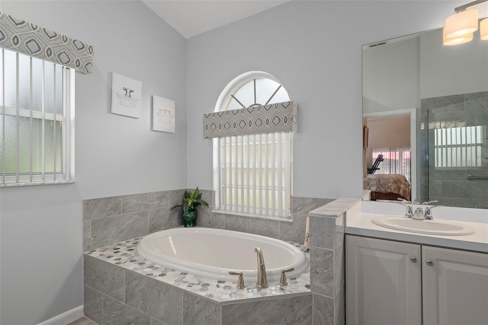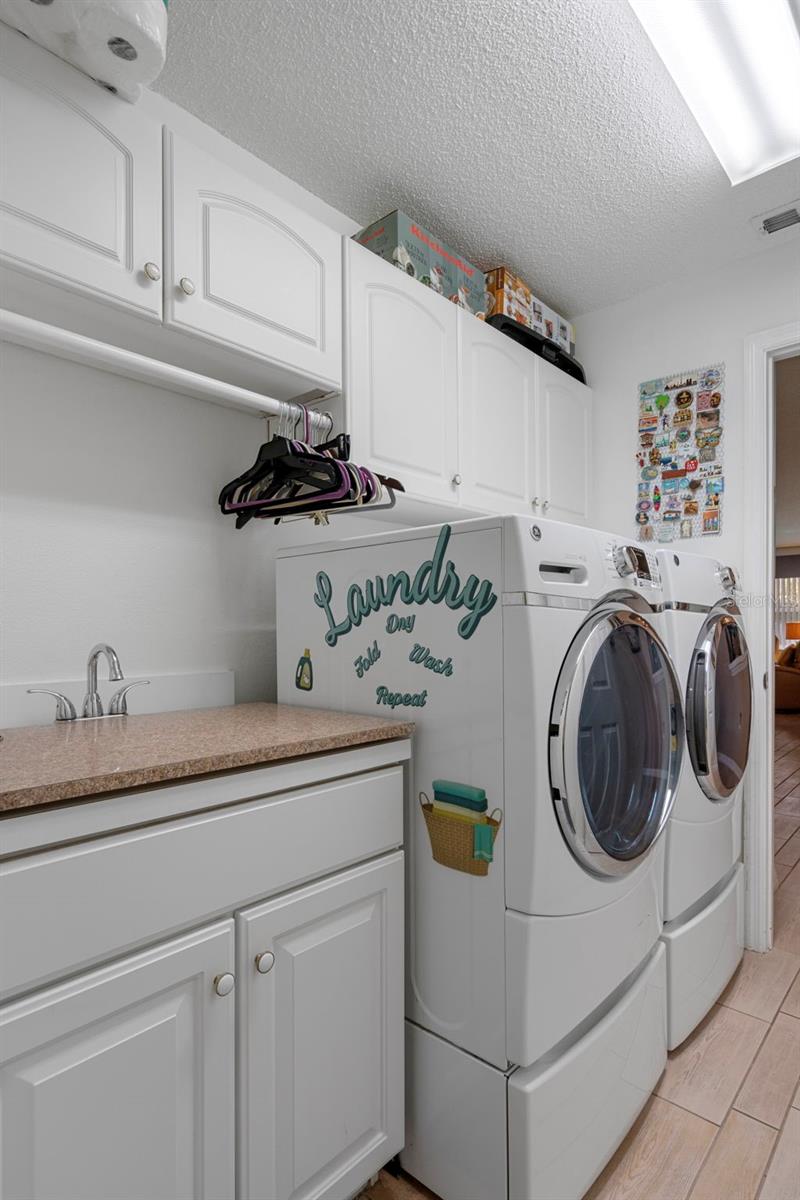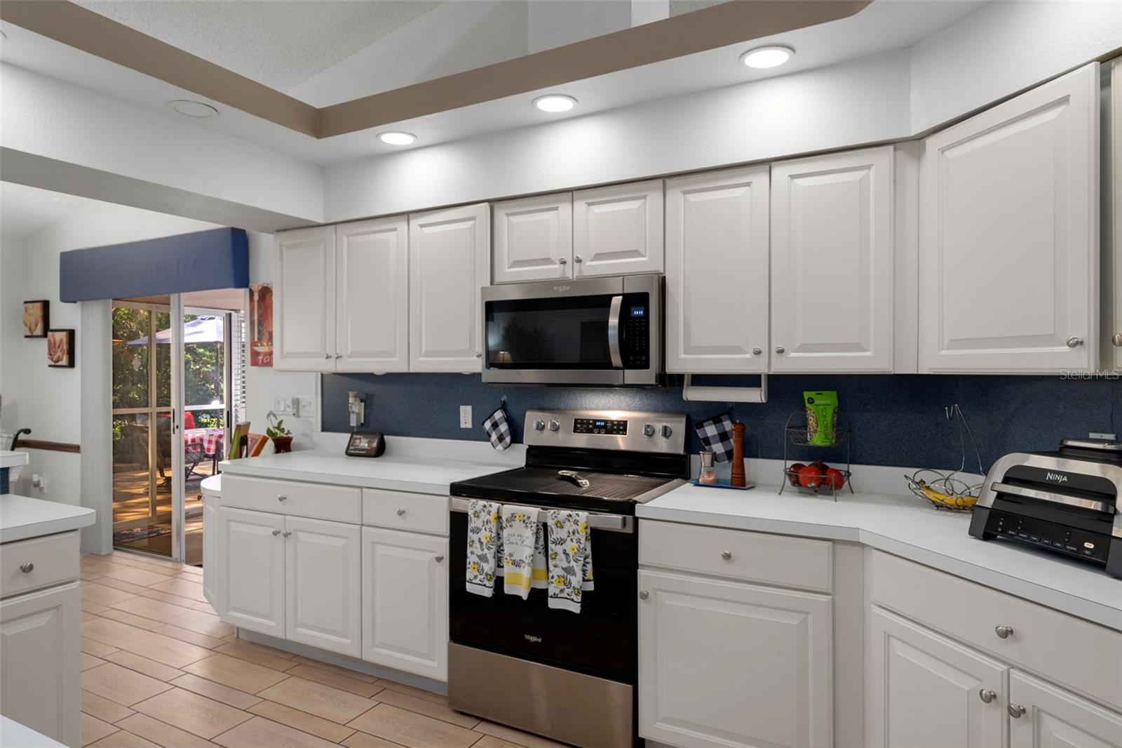 Huge Price Reduction !! NOW only $324,900 for this beautifully updated and meticulously maintained single-family home located in the desirable Wellington 55+ Community. Pride of ownership is evident throughout this residence. As you approach, you’re welcomed by lush, beautiful landscaping and an elegant double-door entry. Inside, bright windows flood the formal living room with natural light, highlighting elegant wood-look tile that flows throughout the home. This area features triple sliding glass doors that lead to the lanai. The formal dining room, adorned with a modern chandelier, matches the entry light and complements the inviting atmosphere. Recently painted in designer colors, the interior also boasts a newer roof (2015), newer upgraded water filtration system for the entire home (2022), newer AC (2022), and brand-new gutters (2024). The kitchen is a chef’s dream with a gorgeous tray ceiling, recessed lighting, an abundance of beautiful cabinets, a breakfast bar with beautiful custom moldings, under-cabinet lighting, a large pantry, and stainless steel appliances that are just two years old. The bright family room, which opens to the kitchen, is perfect for entertaining and features sliding glass doors that lead to a large enclosed lanai with newer glass windows (2022) and upgraded blinds. A standout feature is the custom-built wooden deck that includes decorative railings and wide steps added in 2023, offering a serene spot to enjoy morning coffee while overlooking a meticulously manicured backyard. The luxurious Master Suite includes newer waterproof vinyl plank flooring, sliding glass doors to the lanai, and a 2 spacious walk-in closet both with California closet systems. The Master Bathroom is Gorgeous and features dual sinks with new faucets, updated fixtures, a gorgeous custom-tiled garden tub, and a beautifully tiled step-in shower with custom made glass doors and a glass enclosure. The spacious guest bedroom currently serves as an office with custom cabinetry, including a beautiful custom made desk. The guest bathroom has a newer toilet, elegant vanity including a sink with a newer faucet, and custom-tiled gorgeous step-in shower with custom made glass enclosure and glass shower doors. A spacious third bedroom is perfect for guests with a new fan/light and a large closet with a California closet system. Additionally, the spacious inside laundry room comes equipped with newer ( two years old ) front-loading washer and dryer that are included in the sale, an abundance of beautiful cabinets and a large sink. Ideally located just a short stroll from the community clubhouse and pool, this home offers comfort, convenience, and elegant Florida living at its finest. Located in the Wellington, an amazing 55+ community featuring a 24-hour guarded gate ensuring security & peace of mind for residents. There are 6 pickleball courts, tennis courts, bocce, billiards, Olympic-sized swimming pool & spa, yoga, line dancing, shuffleboard & horseshoes. Social & community spaces include a clubhouse, Wellington's Bar & Grill Restaurant, a fitness center, library, business center with computer stations, arts & crafts studio, ballroom & meeting rooms. The Wellingtons HOA fee includes high-speed fiber optic internet connection with Wi-Fi and Spectrum TV & access to the full recreational amenities. The Wellington is located close to the Suncoast Parkway, Shopping, Dining, Doctors and Hospitals. Priced to sell quickly for only $319,900 !!