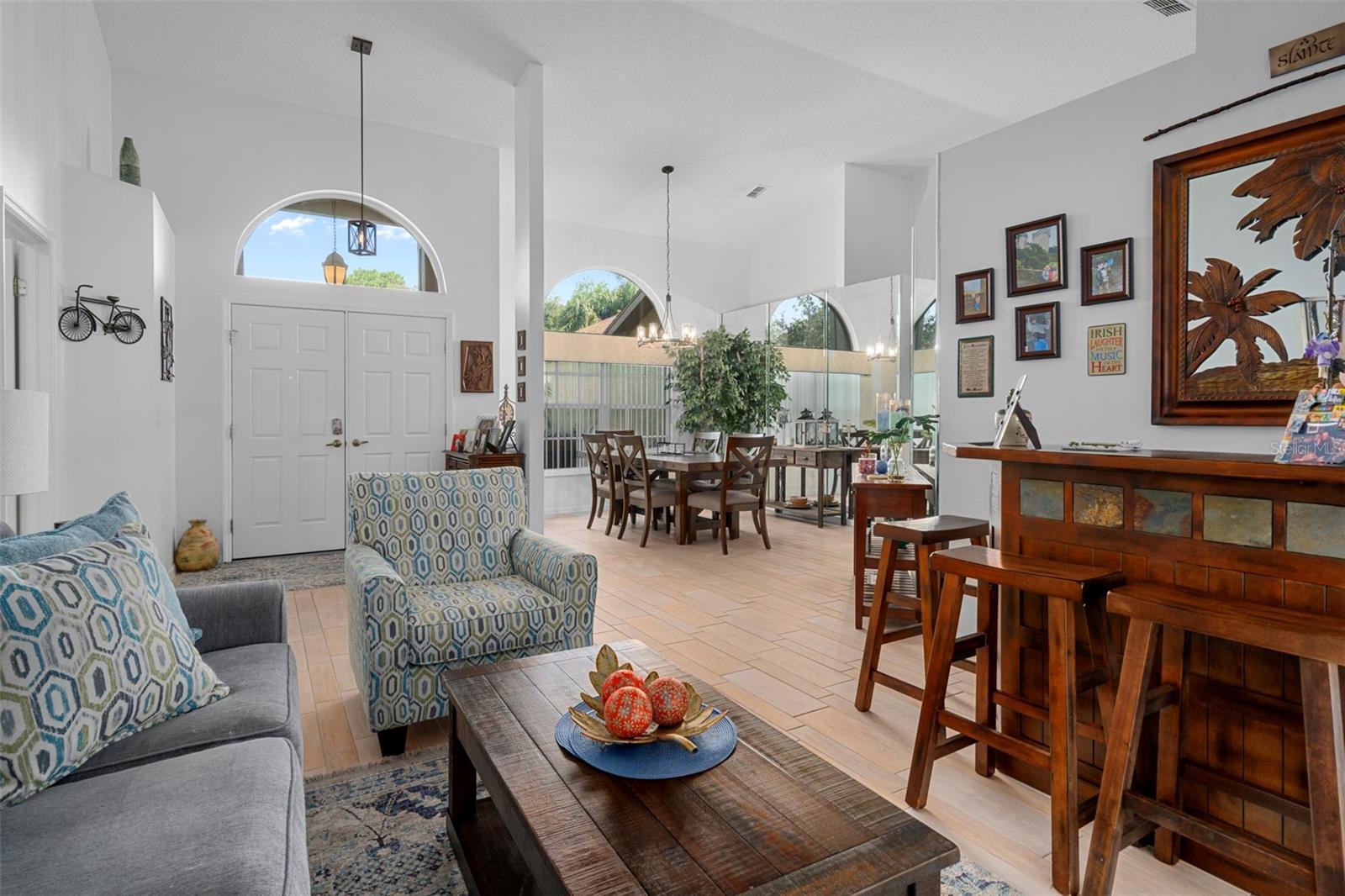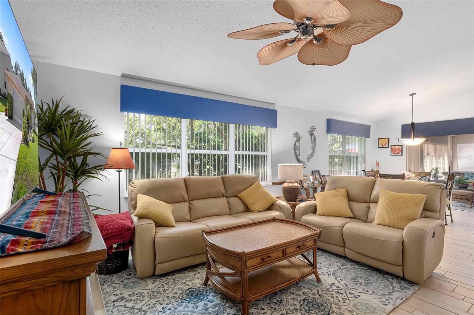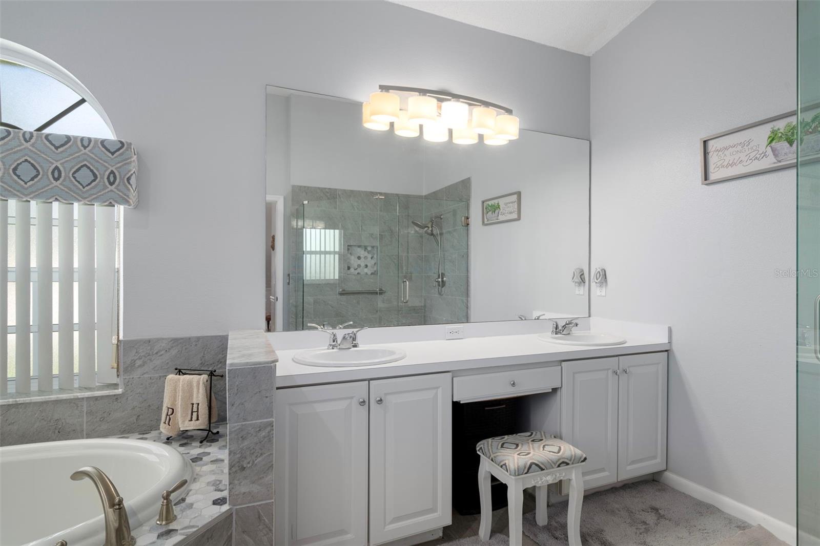 Huge Price Reduction !! NOW only $324,900 for this beautifully updated and meticulously maintained single-family home located in the desirable Wellington 55+ Community. Pride of ownership is evident throughout this residence. As you approach, you’re welcomed by lush, beautiful landscaping and an elegant double-door entry. Inside, bright windows flood the formal living room with natural light, highlighting elegant wood-look tile that flows throughout the home. This area features triple sliding glass doors that lead to the lanai. The formal dining room, adorned with a modern chandelier, matches the entry light and complements the inviting atmosphere. Recently painted in designer colors, the interior also boasts a newer roof (2015), newer upgraded water filtration system for the entire home (2022), newer AC (2022), and brand-new gutters (2024). The kitchen is a chef’s dream with a gorgeous tray ceiling, recessed lighting, an abundance of beautiful cabinets, a breakfast bar with beautiful custom moldings, under-cabinet lighting, a large pantry, and stainless steel appliances that are just two years old. The bright family room, which opens to the kitchen, is perfect for entertaining and features sliding glass doors that lead to a large enclosed lanai with newer glass windows (2022) and upgraded blinds. A standout feature is the custom-built wooden deck that includes decorative railings and wide steps added in 2023, offering a serene spot to enjoy morning coffee while overlooking a meticulously manicured backyard. The luxurious Master Suite includes newer waterproof vinyl plank flooring, sliding glass doors to the lanai, and a 2 spacious walk-in closet both with California closet systems. The Master Bathroom is Gorgeous and features dual sinks with new faucets, updated fixtures, a gorgeous custom-tiled garden tub, and a beautifully tiled step-in shower with custom made glass doors and a glass enclosure. The spacious guest bedroom currently serves as an office with custom cabinetry, including a beautiful custom made desk. The guest bathroom has a newer toilet, elegant vanity including a sink with a newer faucet, and custom-tiled gorgeous step-in shower with custom made glass enclosure and glass shower doors. A spacious third bedroom is perfect for guests with a new fan/light and a large closet with a California closet system. Additionally, the spacious inside laundry room comes equipped with newer ( two years old ) front-loading washer and dryer that are included in the sale, an abundance of beautiful cabinets and a large sink. Ideally located just a short stroll from the community clubhouse and pool, this home offers comfort, convenience, and elegant Florida living at its finest. Located in the Wellington, an amazing 55+ community featuring a 24-hour guarded gate ensuring security & peace of mind for residents. There are 6 pickleball courts, tennis courts, bocce, billiards, Olympic-sized swimming pool & spa, yoga, line dancing, shuffleboard & horseshoes. Social & community spaces include a clubhouse, Wellington's Bar & Grill Restaurant, a fitness center, library, business center with computer stations, arts & crafts studio, ballroom & meeting rooms. The Wellingtons HOA fee includes high-speed fiber optic internet connection with Wi-Fi and Spectrum TV & access to the full recreational amenities. The Wellington is located close to the Suncoast Parkway, Shopping, Dining, Doctors and Hospitals. Priced to sell quickly for only $319,900 !!