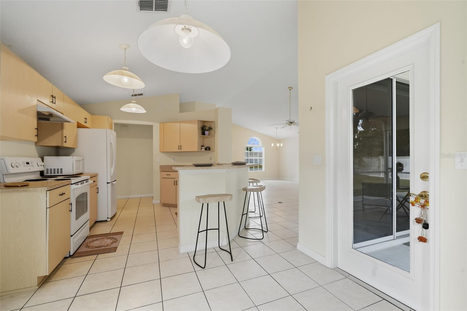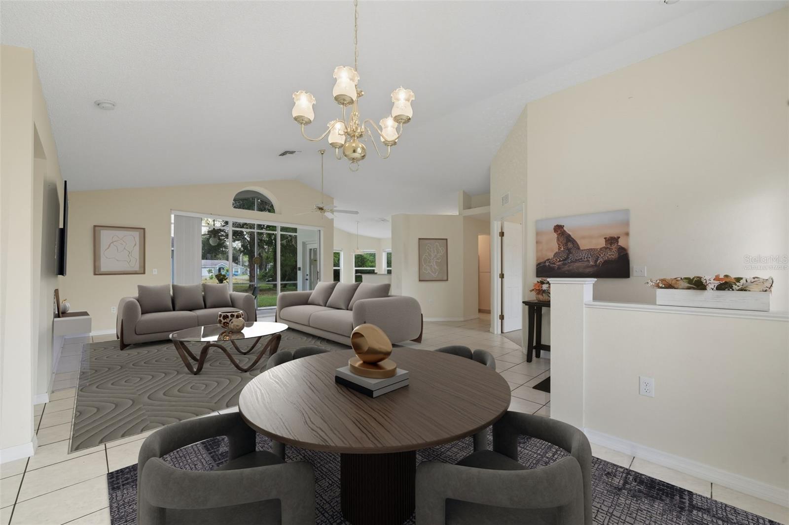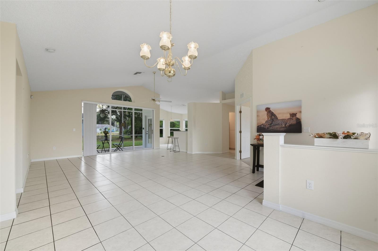 One or more photo(s) has been virtually staged. This stunning 3-bedroom, 2-bathroom, 2-car garage residence offers the perfect blend of comfort, space, and style. From the moment you arrive, you’ll be captivated by the beautiful curb appeal, illuminated entryway, and expansive driveway.Step inside to discover an open-concept layout with soaring vaulted ceilings and natural light pouring through large windows, creating an inviting, airy atmosphere. The spacious living and dining areas are perfect for entertaining or cozy family nights in, while the thoughtfully designed floor plan keeps the primary suite private from the secondary bedrooms.Your oversized primary retreat is a true escape, featuring a massive walk-in closet and a luxurious ensuite bath with a soaking tub, walk-in shower, and dual vanities. The additional bedrooms are generously sized and versatile—ideal for a home office, guest room, or gym.The chef’s kitchen is ready for your culinary creations, with abundant counter space and a breakfast nook overlooking the backyard. Step through sliding doors to the screened lanai, the perfect place for morning coffee, summer barbecues, or simply relaxing while enjoying views of the spacious yard with room for a pool.With an accepted offer, the seller has agreed to pay for a BRAND NEW ROOF—buyers even get to pick the color!Additional highlights include: indoor laundry room, ample storage throughout, oversized backyard, easy access to shopping, dining, the Suncoast Parkway & all that Spring Hill has to offer.Don’t miss the chance to make this beautiful property yours—schedule a private showing today!