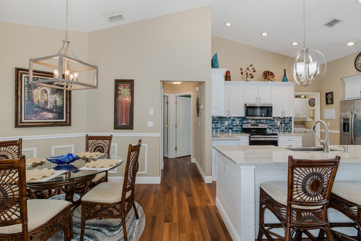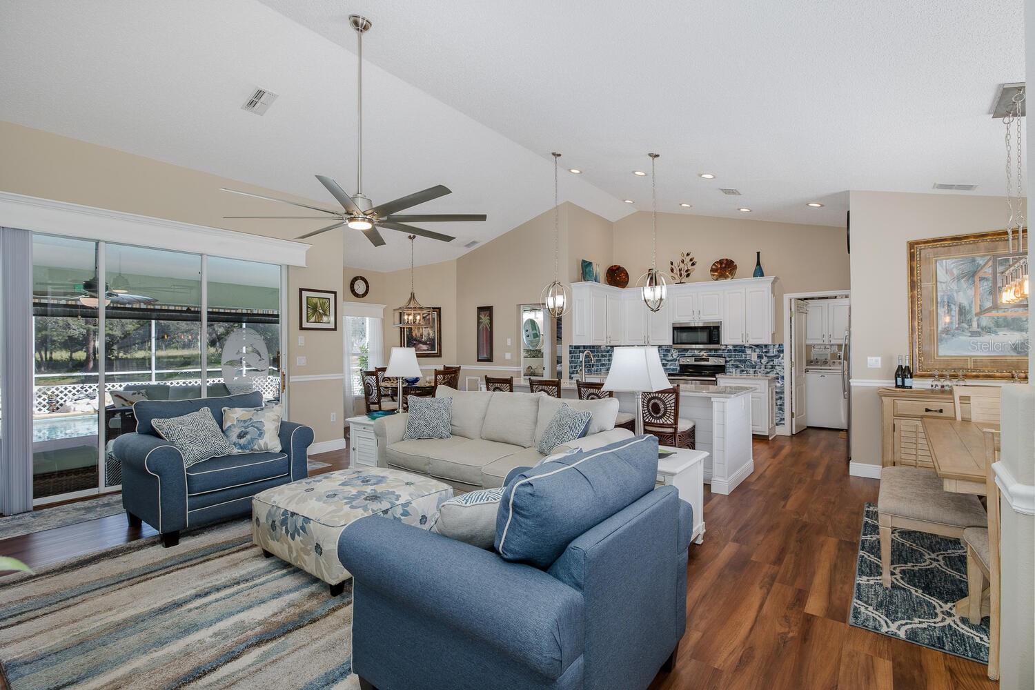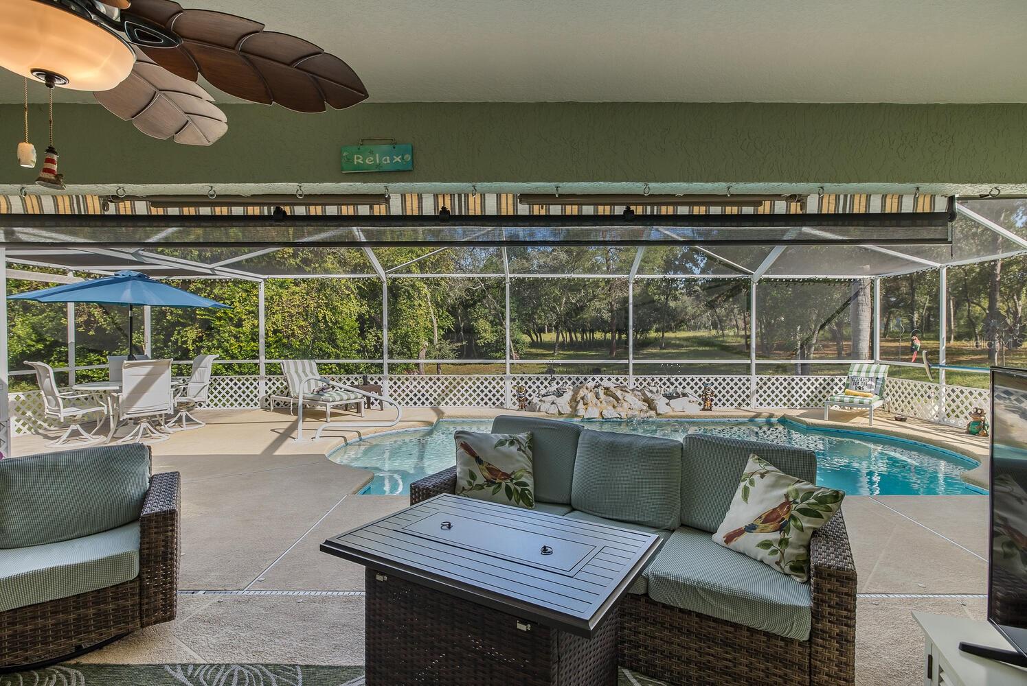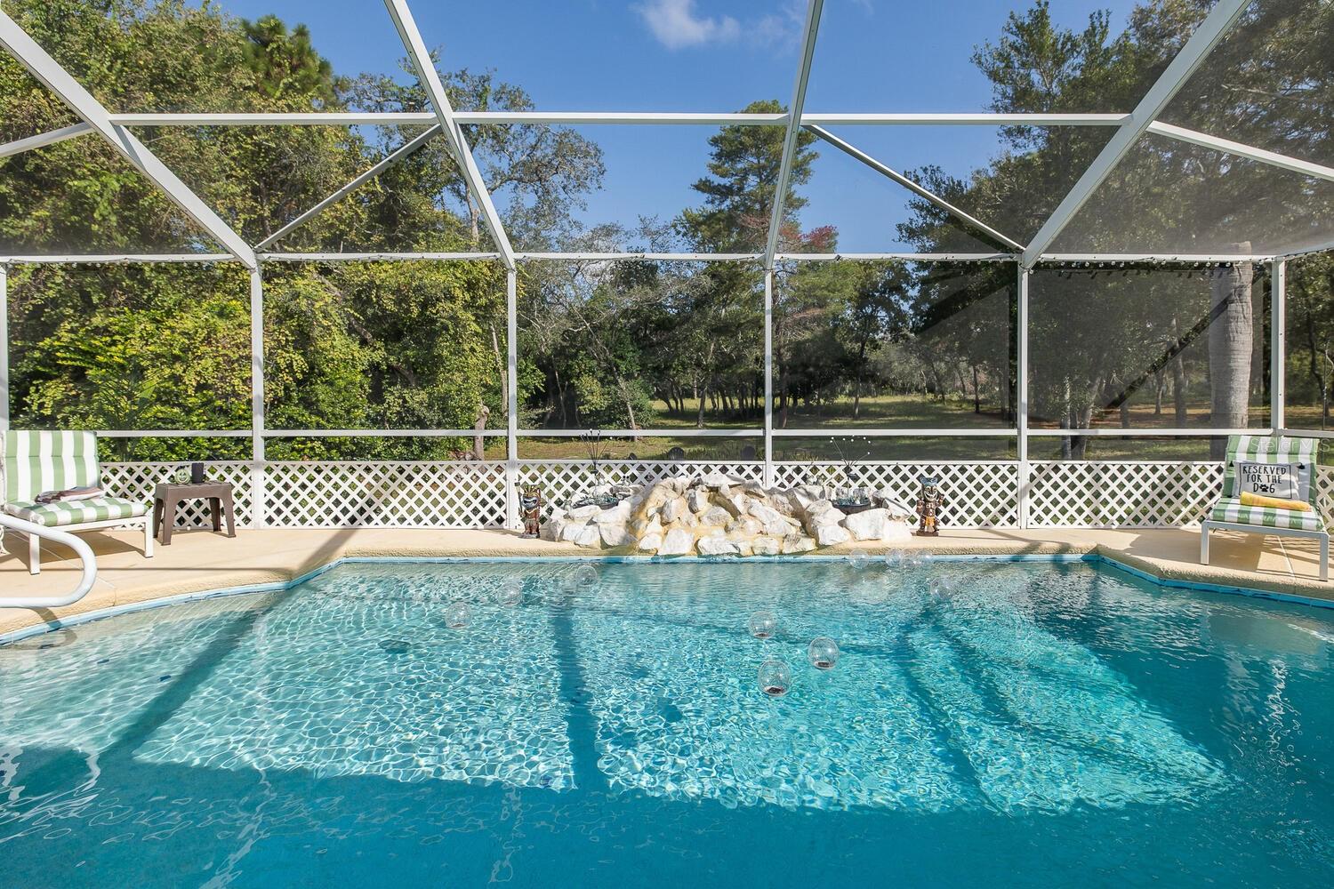 Undeniable Craftmanship Offered Here in this Stunning 3 Bedroom, 2 Full Bath Heated Pool Home with Over $100,000.00 in Recent Improvements and Upgrades, Located in the Very Desirable Links at Seven Hills Subdivision and This Home is Being Offered Fully Furnished! Features and Upgrades Include, The Double Door Entry Leads to the Ever Popular Open Living Kitchen to Dining Room to Family Room Styled Floorplan Which Offers High End Wide Plank Wood Laminate Flooring and 5" Custom Baseboards Through Out ( No Carpet or Tile ). Chair Rails Through Out the Open Living Area and Additional Accented Features in the Eat In Kitchen Area. High Vaulted Ceilings and Upgraded Ceiling Fans and Light Fixtures. The Gorgeous Custom Designed Kitchen Features a Huge Kitchen Isle with Ship Lap Exterior Design and Offers Lots of Additional Storage, Electrical Outlets, Larger Country Styled Sink, and Lots of Additional Counter Top Workspace on a Gorgeous Slab of Quartz. 42" Upper Cabinetry and Lowers Features Pull Outs for Easy Access. Beautiful Custom Subway Tiled Backsplash, Custom Designed Pantry Refrigerator Storage, Recessed Lighting and a Top of the Line Stainless Steel Appliance Package. Large Dining Room Area Features Chair Railing and the Custom Built Box Window Trimming, Also Available Through Out This Beautiful Home. The Impressive Primary and En-Suite Boasts Trayed Ceilings, Custom Designer Paint, The Extended Wood Plank Flooring, His and Hers Walk In Closets with Custom Shoe Rack and a Beautiful Custom Made Barn Door Feature with Frosted Glass Inserts that Offer Additional Bathroom Privacy. Beautifully Designed Primary En-Suite Features His and Hers Double Vanity Sinks, Custom Vanity Storage, Mirrors and Lighting. Larger Soaking Tub and a Beautifully Custom Glassed Door and Travertine Tiled Walk In Shower. Well Appointed 2nd and 3rd Bedrooms Feature the Extended Laminate Flooring and Baseboards, Built In Closets, Window Trim, New Ceiling Fans and Both Offer Easy Access to the Custom Designed Full Sized Pool Bath Which Offers Custom Travertine and Glass Tiled Walls and Shower, Granite Counter Tops Vanity Storage, Mirror and Light Fixtures, Frosted Sliding Shower Door and Custom Accents Trough Out. Family Room Triple Sliding Glass Doors, Pool Bath and 2nd Bedroom Offer Easy Access to the Expansive Screened in Lanai and Pool Area Which Features a Generous Under Roof Lanai Seating Area, Electric and Cable Access, Out Door Shower, Pool Cage Lighting, Cool Decking and a Larger Heated Diamond Brite Pool Finish that Features the Pop Up Pool Automatic Cleaning System. Waterfall Feature, Spacious Areas for Seating and Perfect for Family BBQ's and Perfect for Entertaining. Larger Private Backyard Area with Paved Fire Pit. Extremely Well Maintained Low Maintenance Front and Backyards, Full Automatic Sprinkler System with an Irrigation Well to Water it All. All Furnishings are Available For Sale! Best School District in All of Hernando With Access to Spring Hill's Top Magnet Schools. Close to Shopping, Banking, Restaurants and in Close Proximity to the Tampa General Hospital and Medical Centers and an Easy Drive to the Expansive YMCA Which Offers a Heated Olympic Style Swimming Pool, Well Equipped Full Sized Gym and Lots of Family and Adult Classes and Clubs. Low HOA of Only 229.00 a Year and No CDD's! Trust Me This Home Has it All!