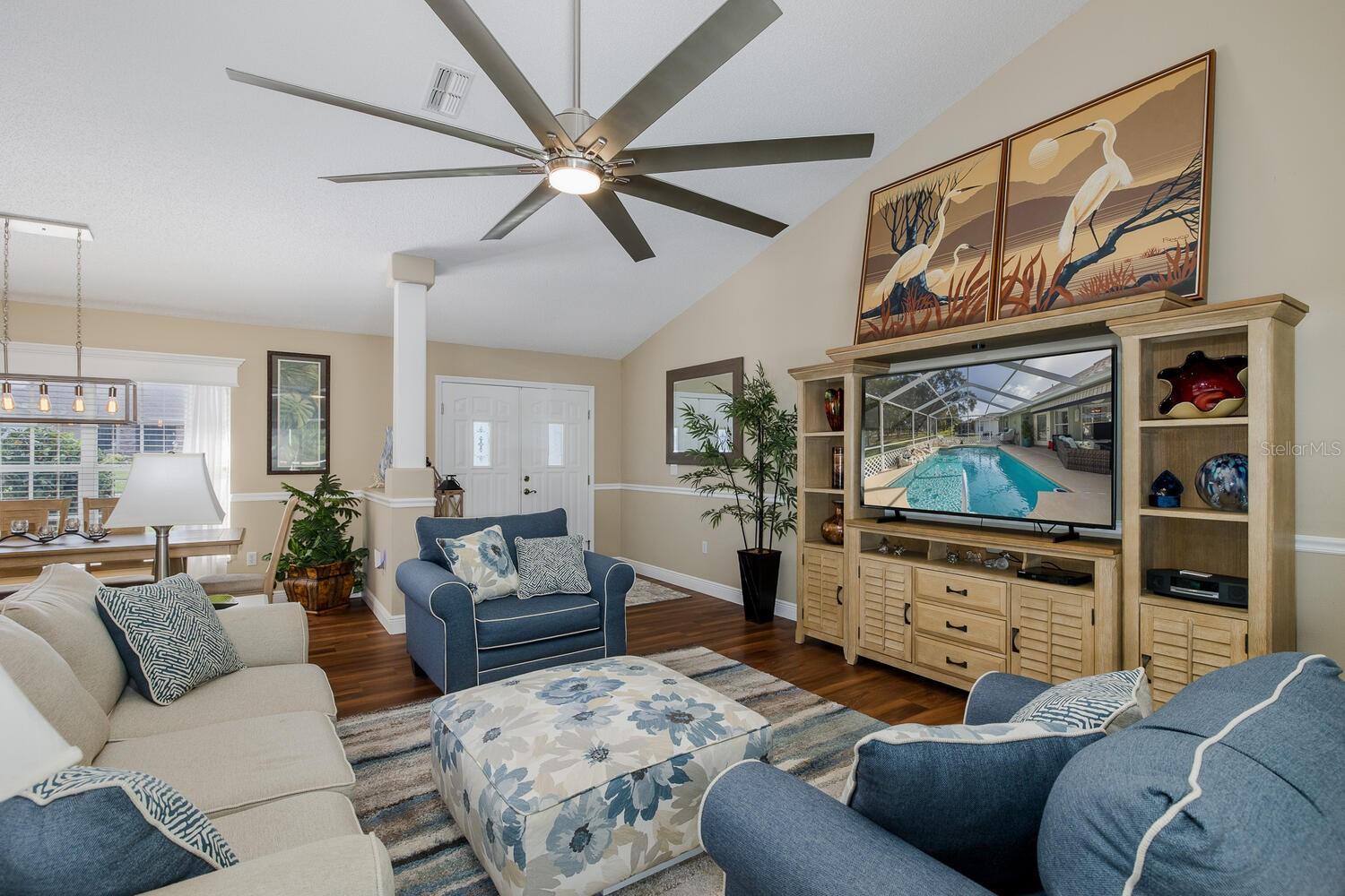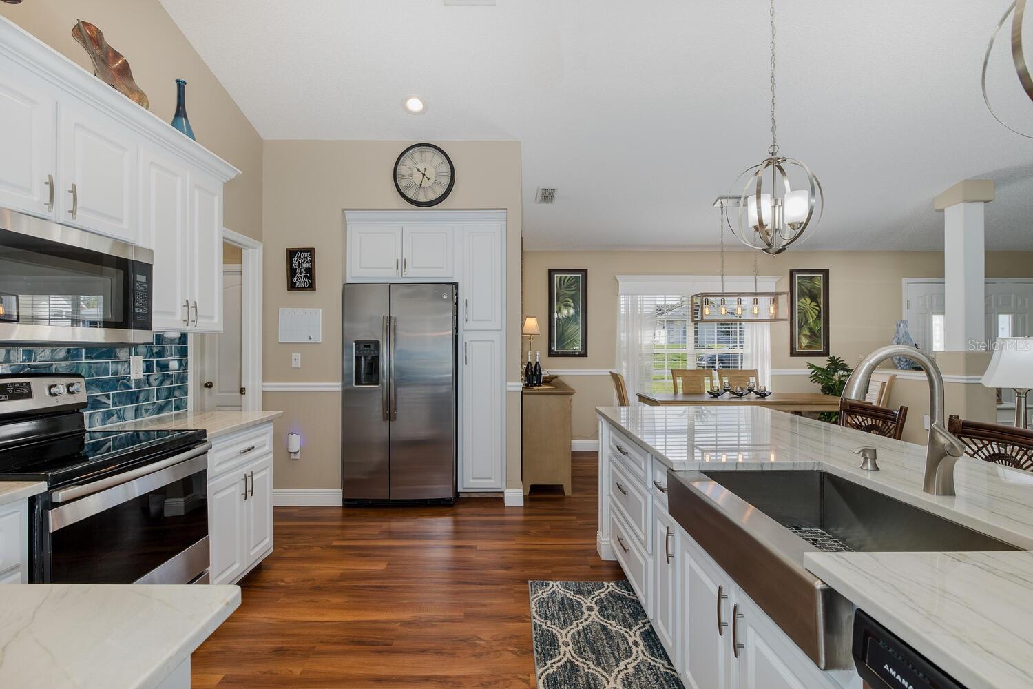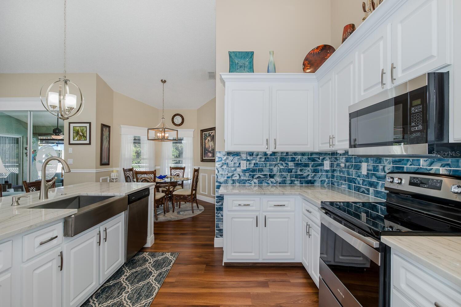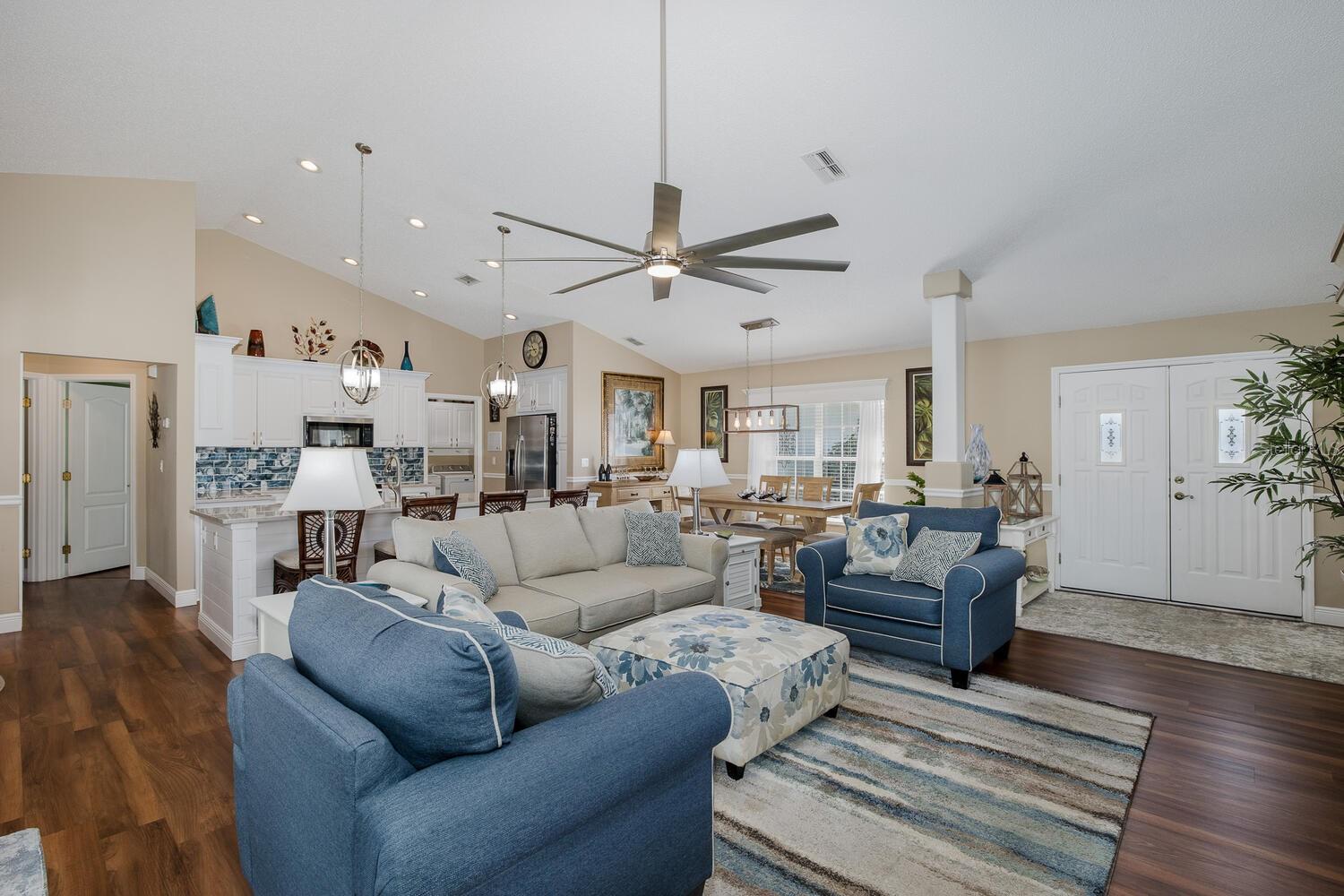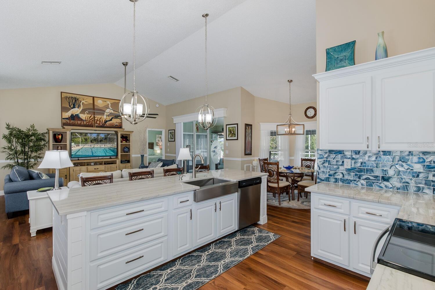 Undeniable Craftmanship Offered Here in this Stunning 3 Bedroom, 2 Full Bath Heated Pool Home with Over $100,000.00 in Recent Improvements and Upgrades, Located in the Very Desirable Links at Seven Hills Subdivision and This Home is Being Offered Fully Furnished! Features and Upgrades Include, The Double Door Entry Leads to the Ever Popular Open Living Kitchen to Dining Room to Family Room Styled Floorplan Which Offers High End Wide Plank Wood Laminate Flooring and 5" Custom Baseboards Through Out ( No Carpet or Tile ). Chair Rails Through Out the Open Living Area and Additional Accented Features in the Eat In Kitchen Area. High Vaulted Ceilings and Upgraded Ceiling Fans and Light Fixtures. The Gorgeous Custom Designed Kitchen Features a Huge Kitchen Isle with Ship Lap Exterior Design and Offers Lots of Additional Storage, Electrical Outlets, Larger Country Styled Sink, and Lots of Additional Counter Top Workspace on a Gorgeous Slab of Quartz. 42" Upper Cabinetry and Lowers Features Pull Outs for Easy Access. Beautiful Custom Subway Tiled Backsplash, Custom Designed Pantry Refrigerator Storage, Recessed Lighting and a Top of the Line Stainless Steel Appliance Package. Large Dining Room Area Features Chair Railing and the Custom Built Box Window Trimming, Also Available Through Out This Beautiful Home. The Impressive Primary and En-Suite Boasts Trayed Ceilings, Custom Designer Paint, The Extended Wood Plank Flooring, His and Hers Walk In Closets with Custom Shoe Rack and a Beautiful Custom Made Barn Door Feature with Frosted Glass Inserts that Offer Additional Bathroom Privacy. Beautifully Designed Primary En-Suite Features His and Hers Double Vanity Sinks, Custom Vanity Storage, Mirrors and Lighting. Larger Soaking Tub and a Beautifully Custom Glassed Door and Travertine Tiled Walk In Shower. Well Appointed 2nd and 3rd Bedrooms Feature the Extended Laminate Flooring and Baseboards, Built In Closets, Window Trim, New Ceiling Fans and Both Offer Easy Access to the Custom Designed Full Sized Pool Bath Which Offers Custom Travertine and Glass Tiled Walls and Shower, Granite Counter Tops Vanity Storage, Mirror and Light Fixtures, Frosted Sliding Shower Door and Custom Accents Trough Out. Family Room Triple Sliding Glass Doors, Pool Bath and 2nd Bedroom Offer Easy Access to the Expansive Screened in Lanai and Pool Area Which Features a Generous Under Roof Lanai Seating Area, Electric and Cable Access, Out Door Shower, Pool Cage Lighting, Cool Decking and a Larger Heated Diamond Brite Pool Finish that Features the Pop Up Pool Automatic Cleaning System. Waterfall Feature, Spacious Areas for Seating and Perfect for Family BBQ's and Perfect for Entertaining. Larger Private Backyard Area with Paved Fire Pit. Extremely Well Maintained Low Maintenance Front and Backyards, Full Automatic Sprinkler System with an Irrigation Well to Water it All. All Furnishings are Available For Sale! Best School District in All of Hernando With Access to Spring Hill's Top Magnet Schools. Close to Shopping, Banking, Restaurants and in Close Proximity to the Tampa General Hospital and Medical Centers and an Easy Drive to the Expansive YMCA Which Offers a Heated Olympic Style Swimming Pool, Well Equipped Full Sized Gym and Lots of Family and Adult Classes and Clubs. Low HOA of Only 229.00 a Year and No CDD's! Trust Me This Home Has it All!
